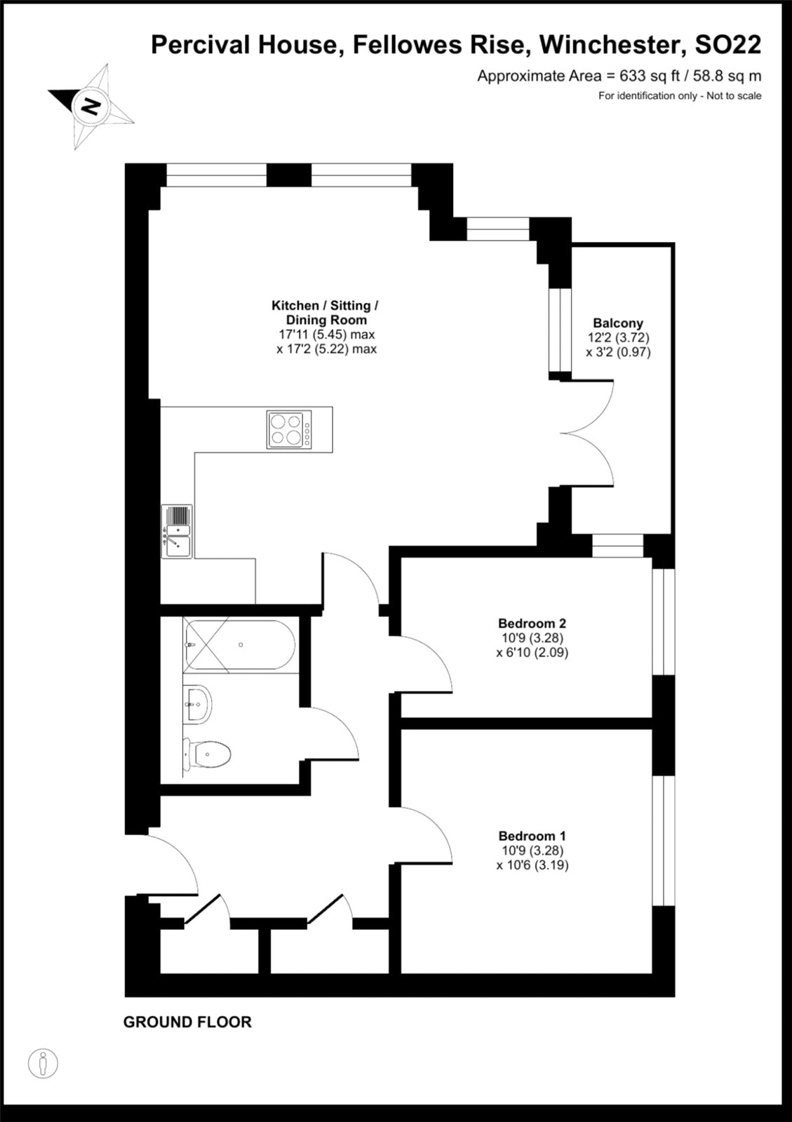 This well-presented ground floor apartment is situated within the sought-after Percival House development in Fellowes Rise, Winchester, offering a balanced combination of modern living and a convenient location. Designed with practicality and comfort in mind, the property benefits from a thoughtful layout that maximises natural light and everyday usability. The accommodation centres around an open-plan kitchen, sitting and dining area, creating an inviting space suitable for both daily living and entertaining. The kitchen is neatly integrated, providing a contemporary and functional environment without compromising the flow of the living area. Double doors lead directly from this space to a private balcony, extending the living accommodation outdoors and offering an ideal spot for morning coffee or evening relaxation.