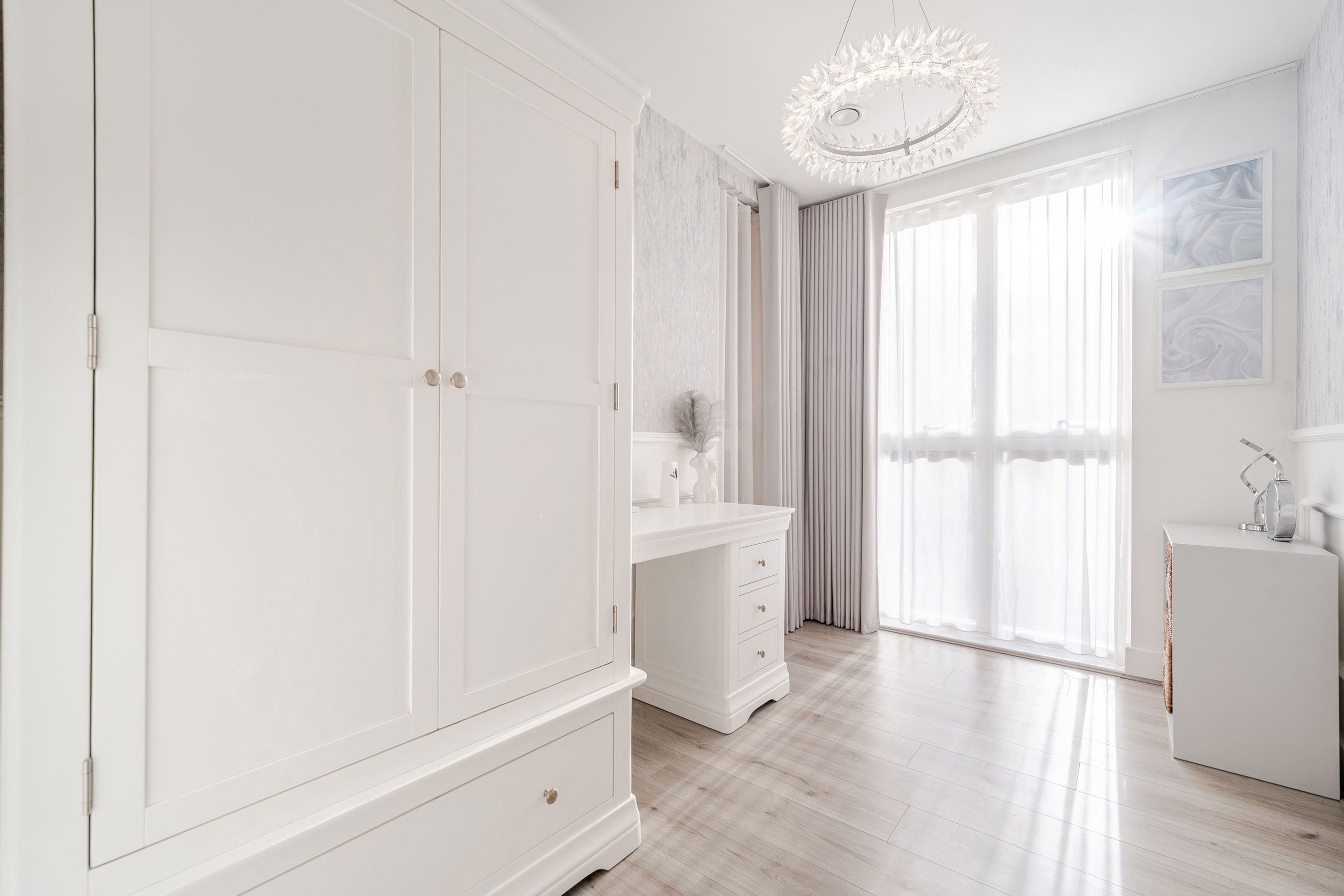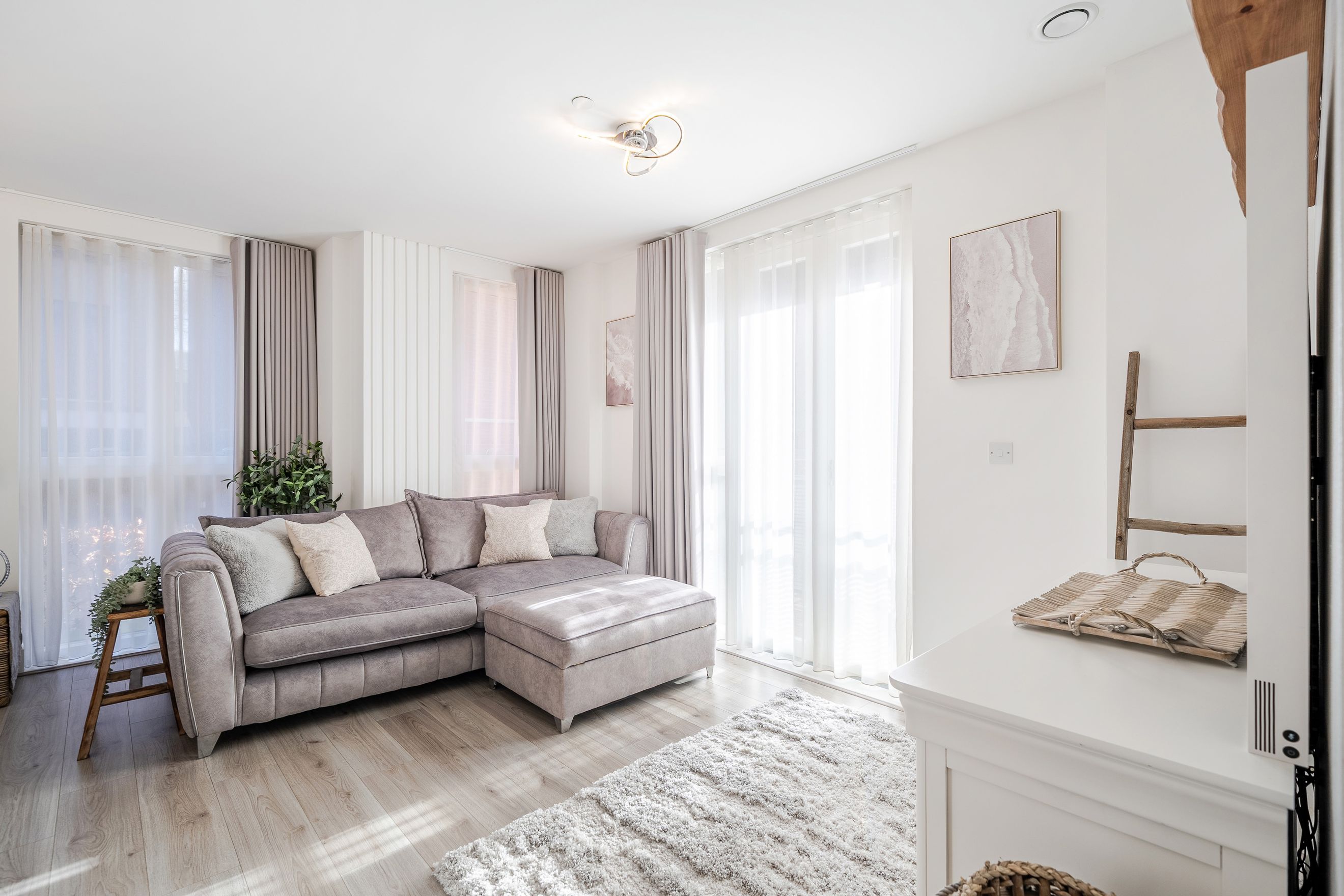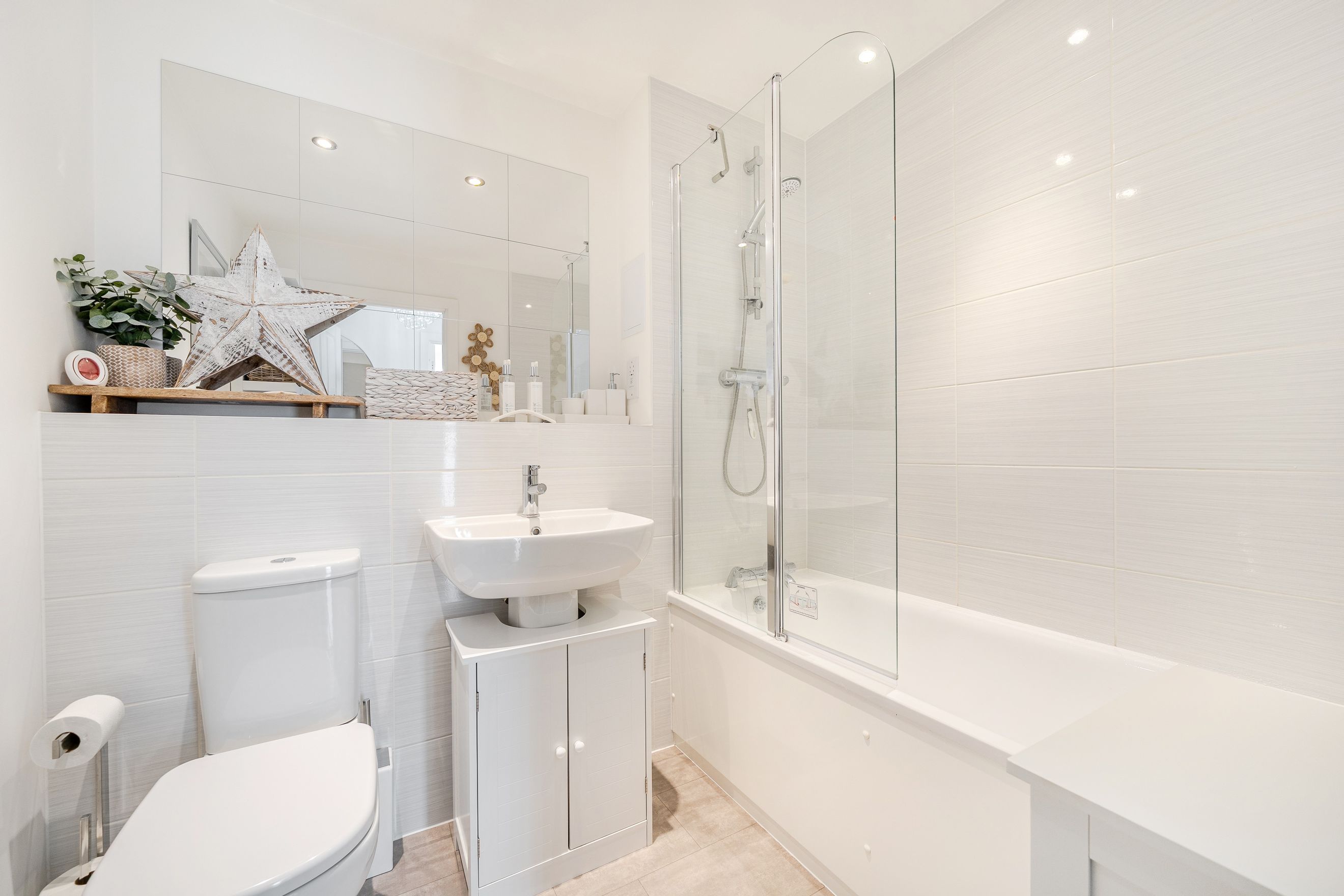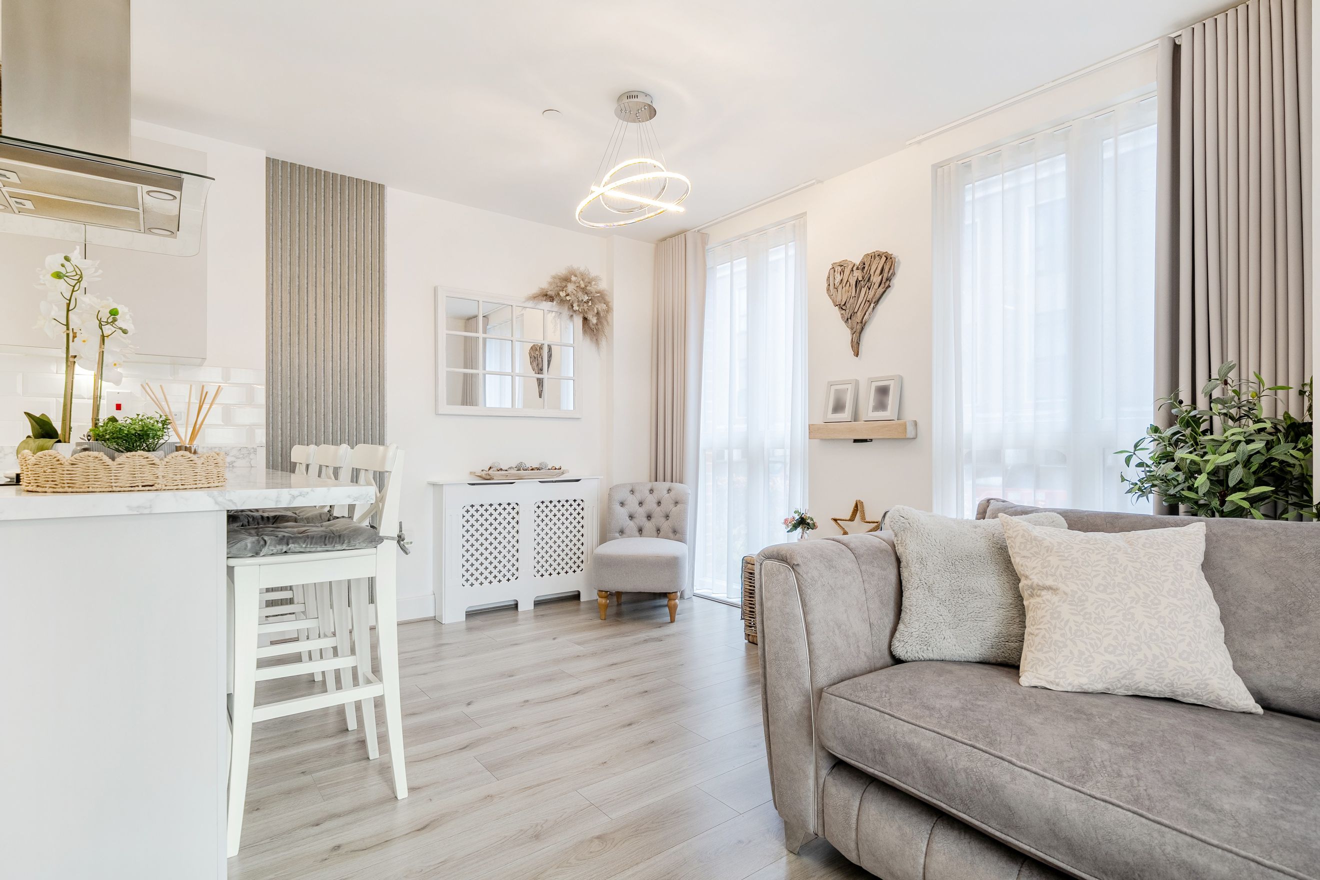 The apartment features two well-proportioned bedrooms, each offering flexibility for a range of needs, whether as sleeping accommodation, a home office, or guest space. A modern family bathroom serves the property, finished to a clean and neutral standard.