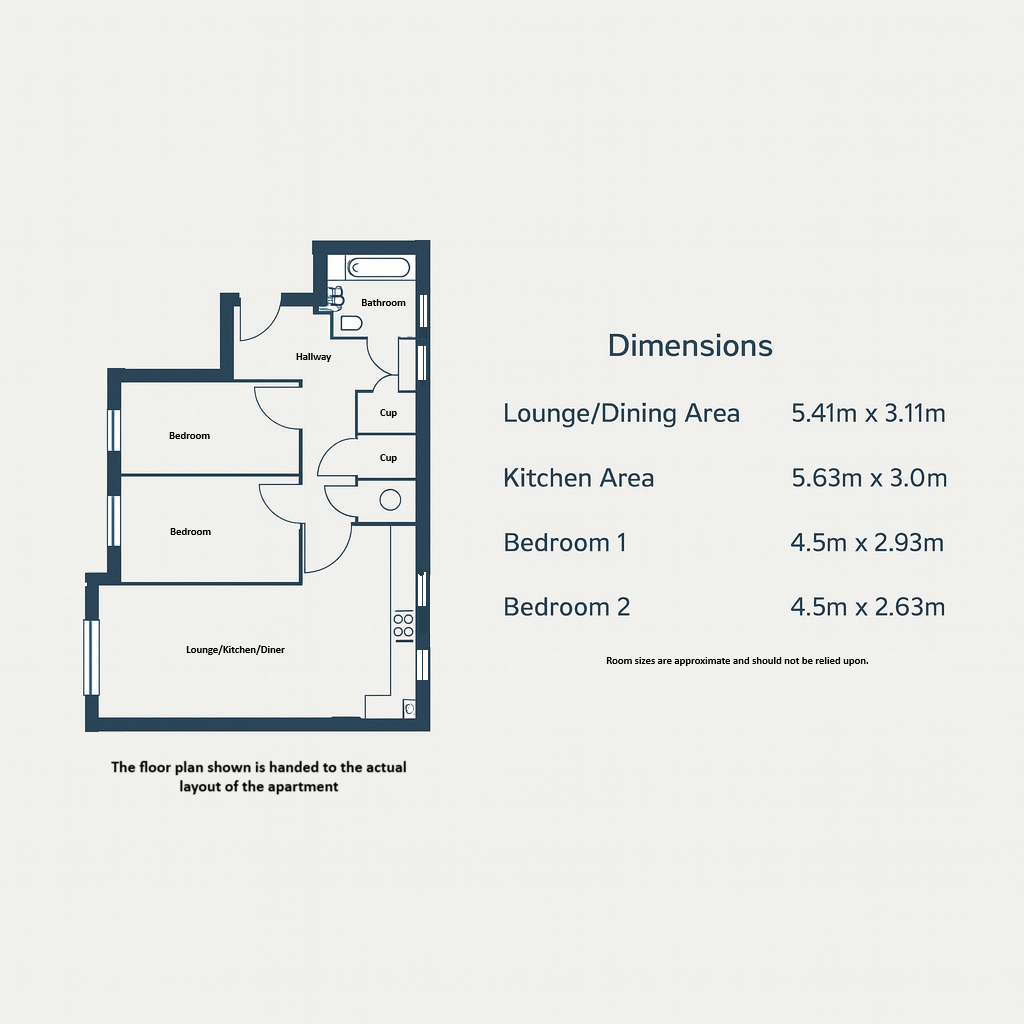 The apartment opens into a welcoming hallway which provides access to all rooms. The spacious lounge/dining area is a comfortable and versatile living space and flows naturally into the fitted kitchen area, which offers ample worktop and cupboard space for everyday cooking needs. Two double bedrooms provide flexible accommodation and a modern bathroom completes the interior layout.