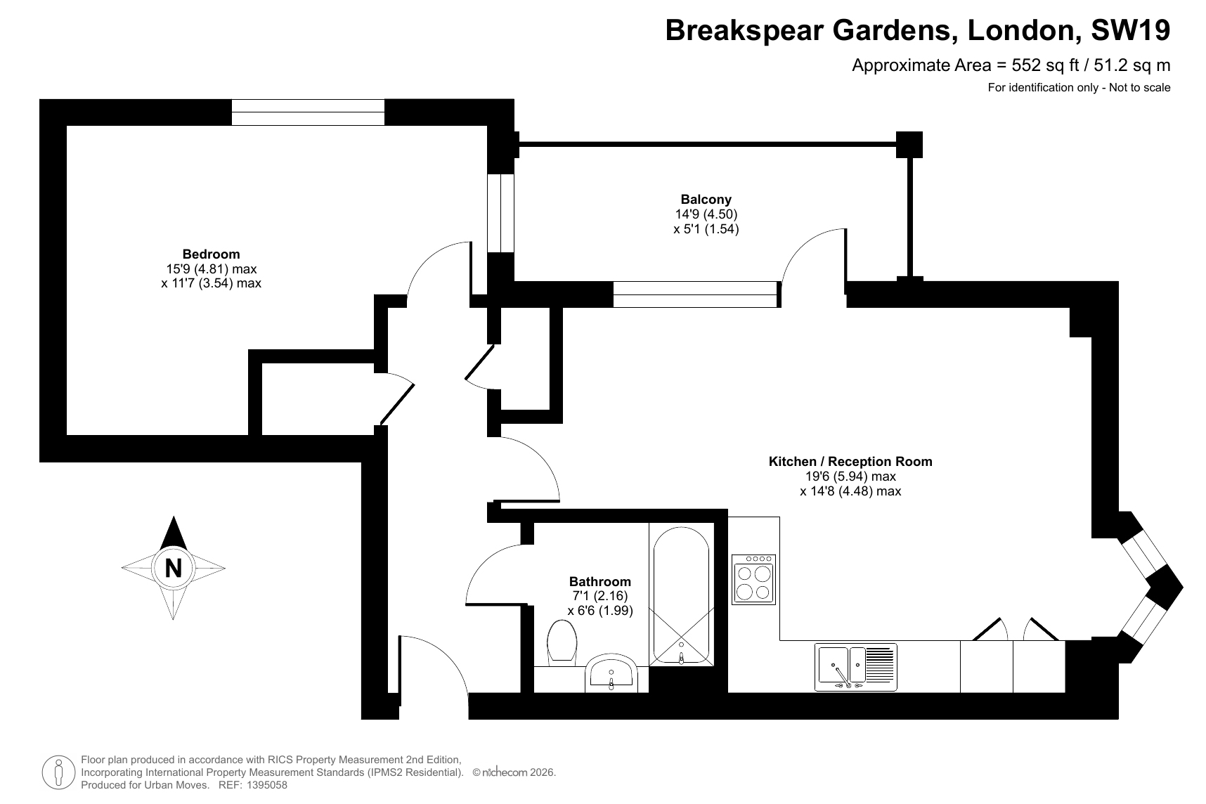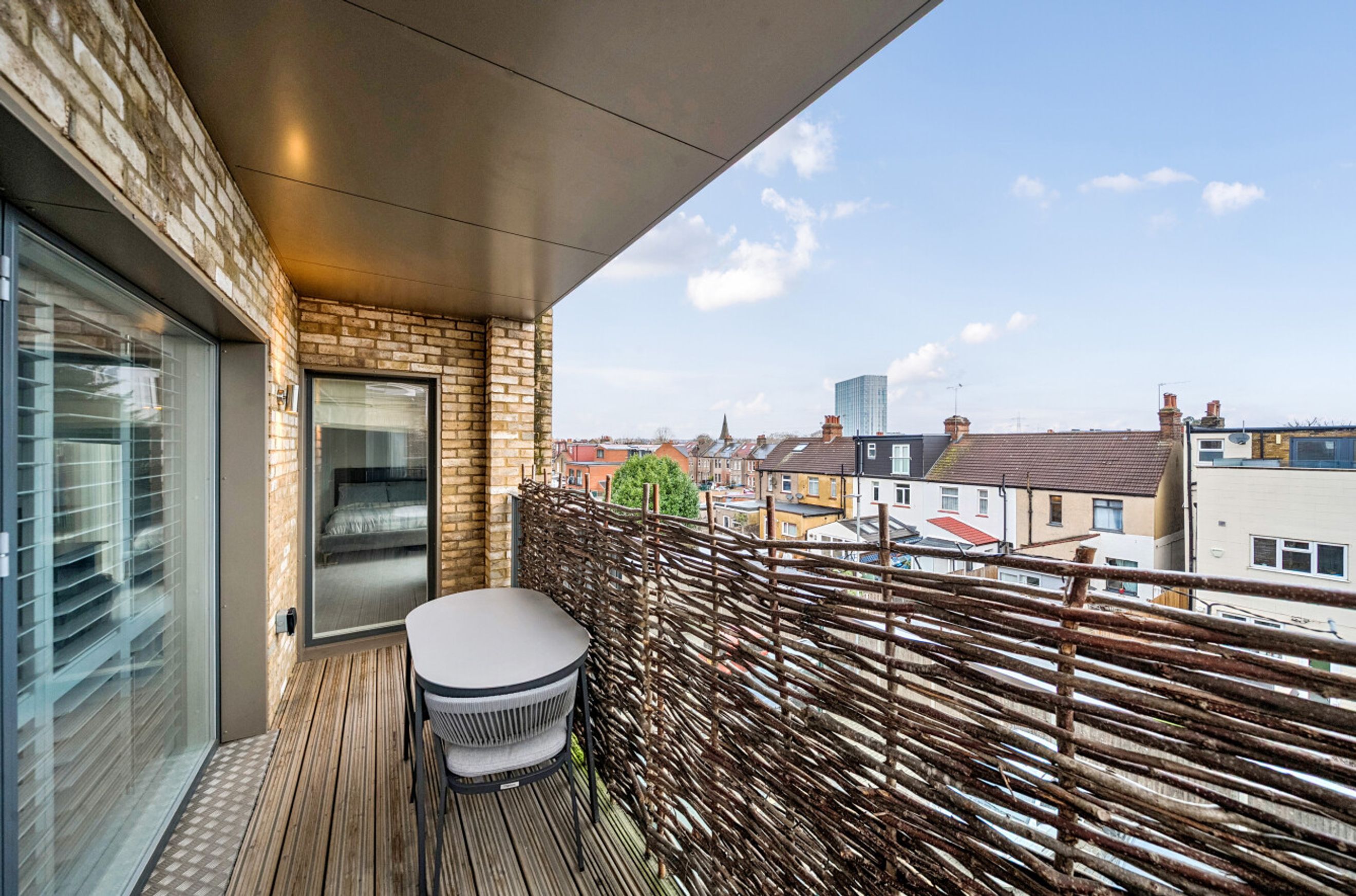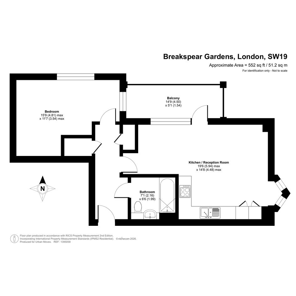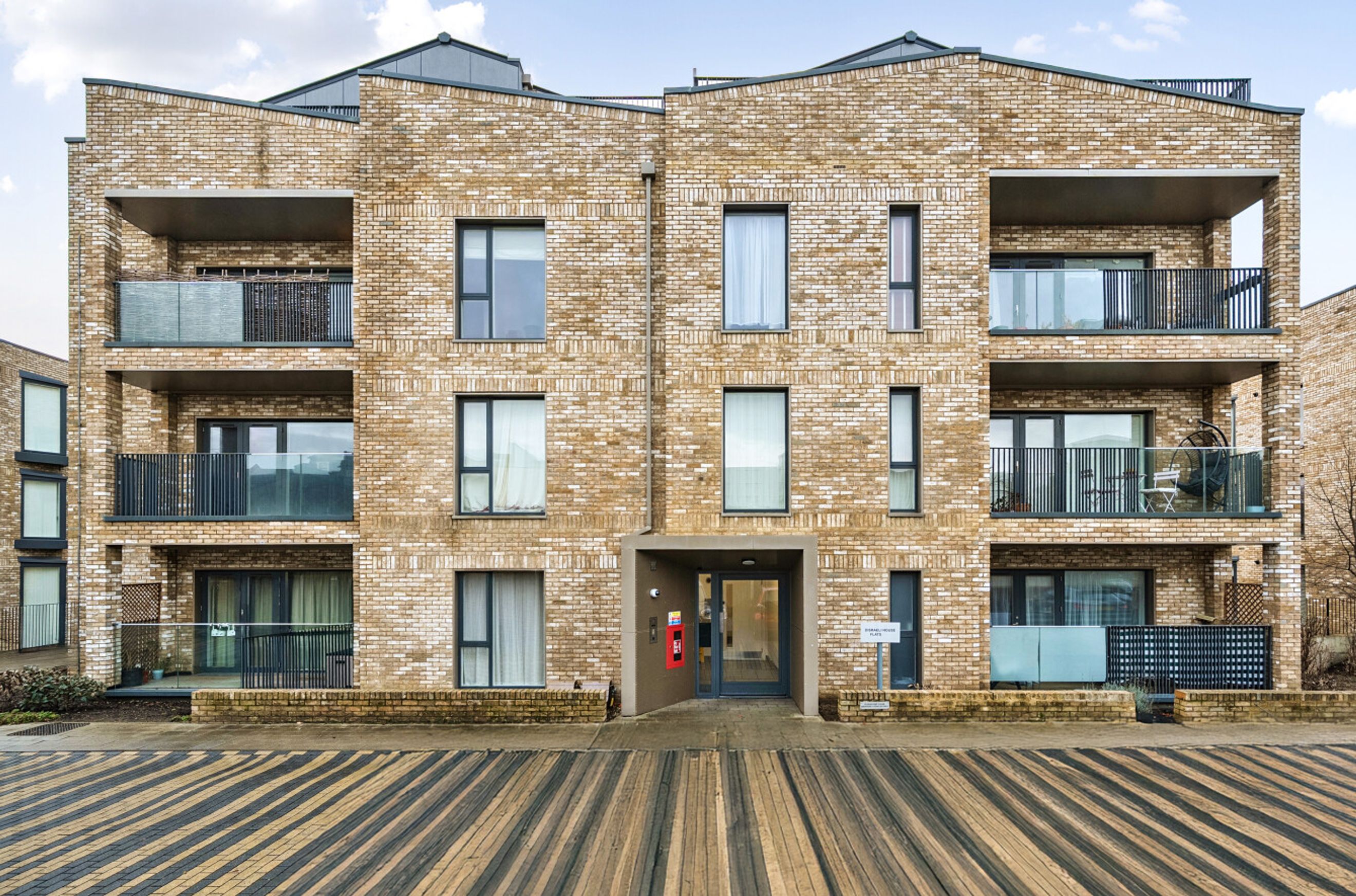 A smartly-presented flat on the second floor of this recently-constructed building. The property has a nineteen-foot, dual-aspect reception room with attractive flooring and an open-plan kitchen area featuring sleek, white units and integrated appliances. A door leads out onto a good-sized balcony. The spacious bedroom also has windows on two sides, the bathroom is pristine and fully-tiled and a pair of storage/utility cupboards have been provided in the entrance hallway. Well insulated walls, high performance glazing and a modern gas central heating system make for a very good energy-efficiency rating. Disraeli House is part of a gated development that borders a small nature reserve just off Fortescue Road. Colliers Wood Station, for access to the Northern Line, is just a short walk away. There are shops nearby and Wandle Park offers green, open space to enjoy.