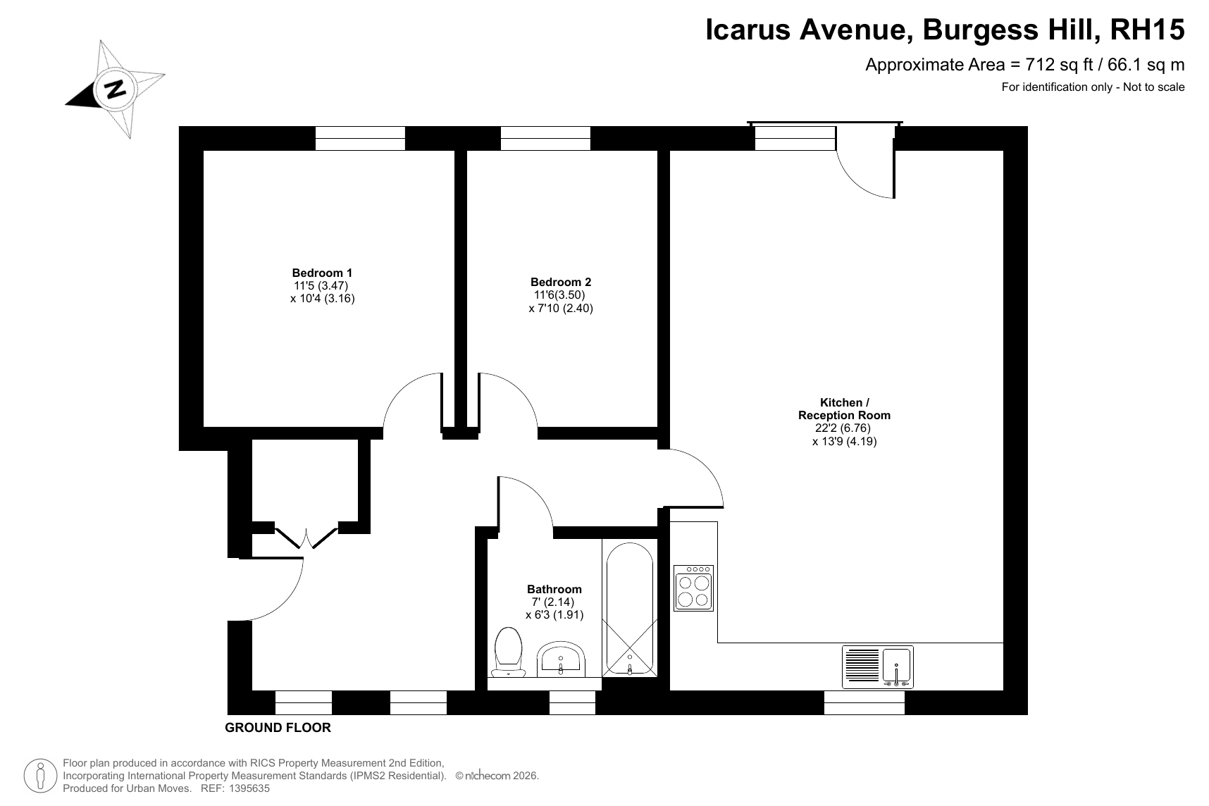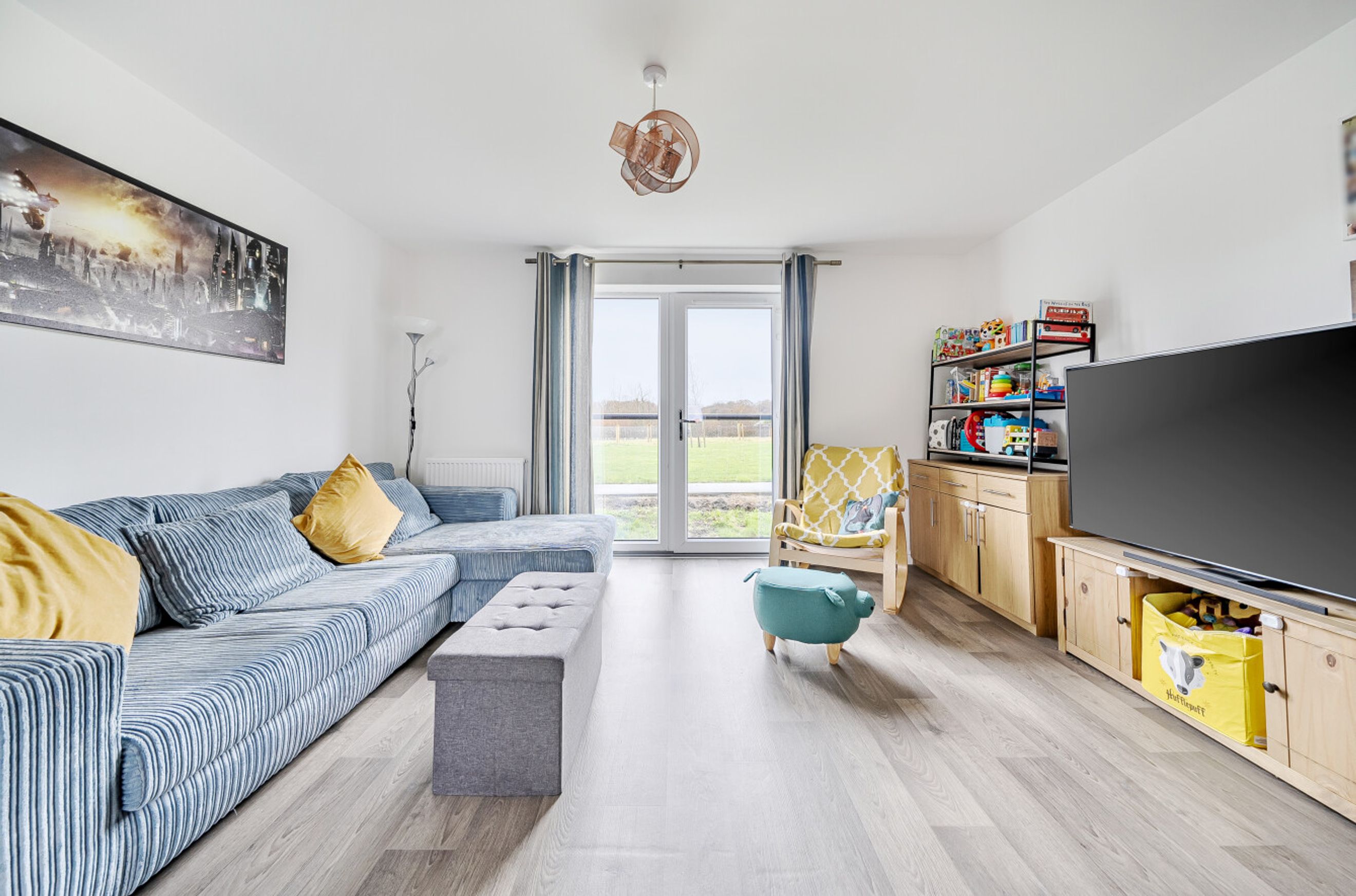 This recently-constructed development is on the semi-rural outskirts of Burgess Hill while still being within easy reach of the railway station, shops and other amenities that the town centre has to offer. The flat available is on the ground floor and has a spacious, naturally-lit entrance hall with built-in storage/utility cupboard. There is a twenty-two-foot reception room with open-plan kitchen and an east/south-east-facing Juliette balcony which looks onto an area of communal lawn. Both bedrooms are comfortable doubles and the bathroom is stylish and modern. Well insulated walls and floor, high performance glazing and gas central heating all contribute towards a very good energy-efficiency rating. The property comes with use of an allocated parking space and the local primary school and secondary school are both Ofsted-rated' Good'. The Croft Park is immediately south of the development and nearby Ditchling Common Country Park offers 180 acres of outside space to explore.