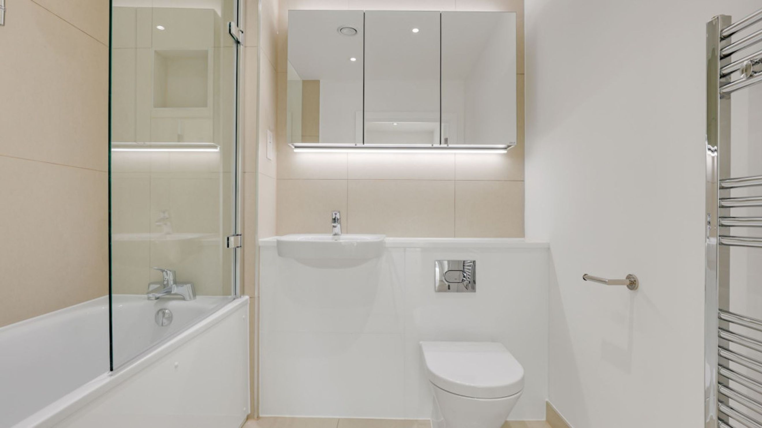 The double bedroom is a real highlight, enjoying stunning views towards The Shard, providing a striking London backdrop both day and night. The apartment also benefits from a stylish, fully tiled bathroom and ample storage.