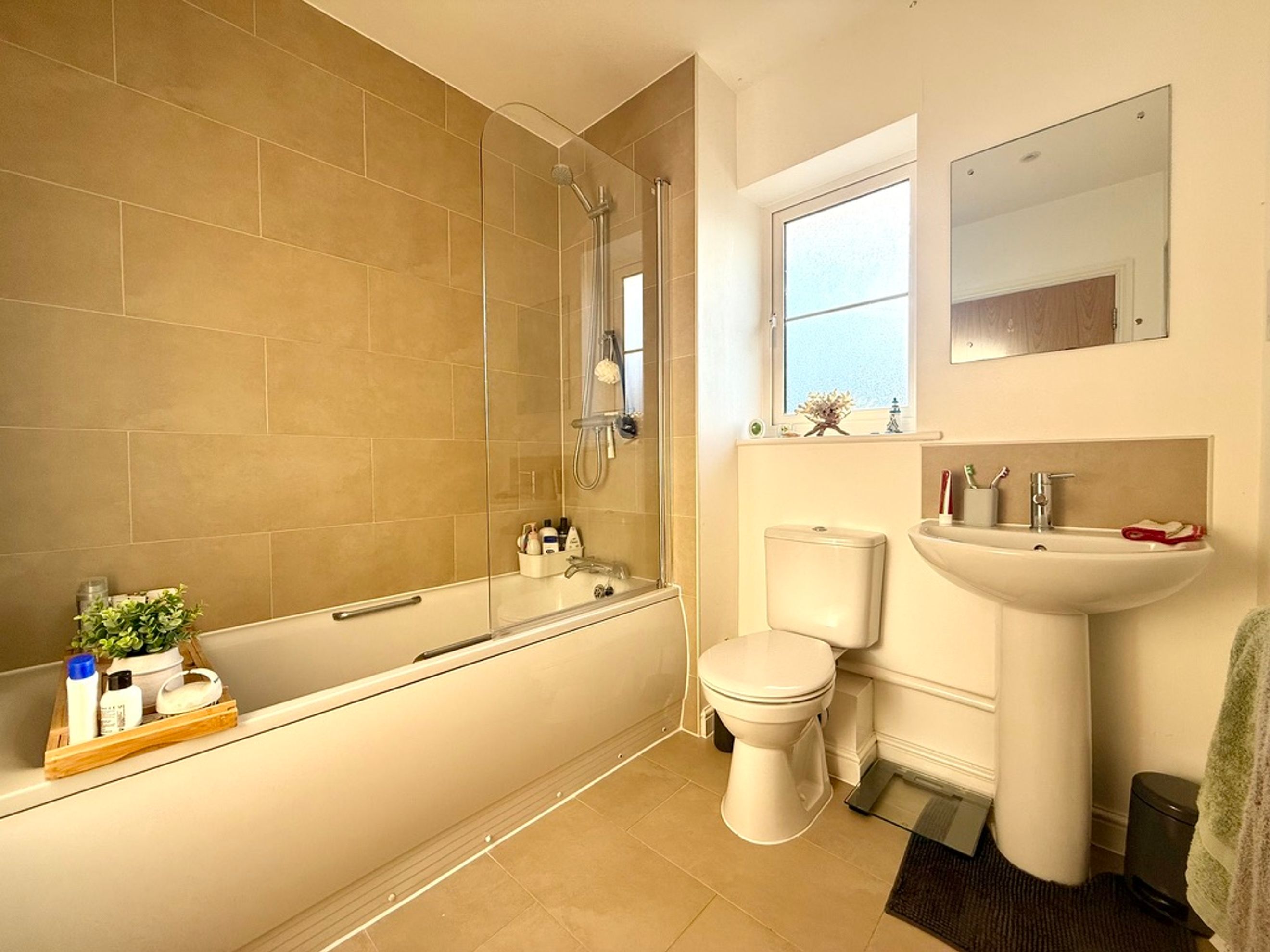 Upstairs, the landing provides access to the loft and an additional storage cupboard. There are two generously sized double bedrooms, both offering flexibility for growing families, guests, or home working. The family bathroom is well appointed and includes a bath with shower over, WC and wash basin.