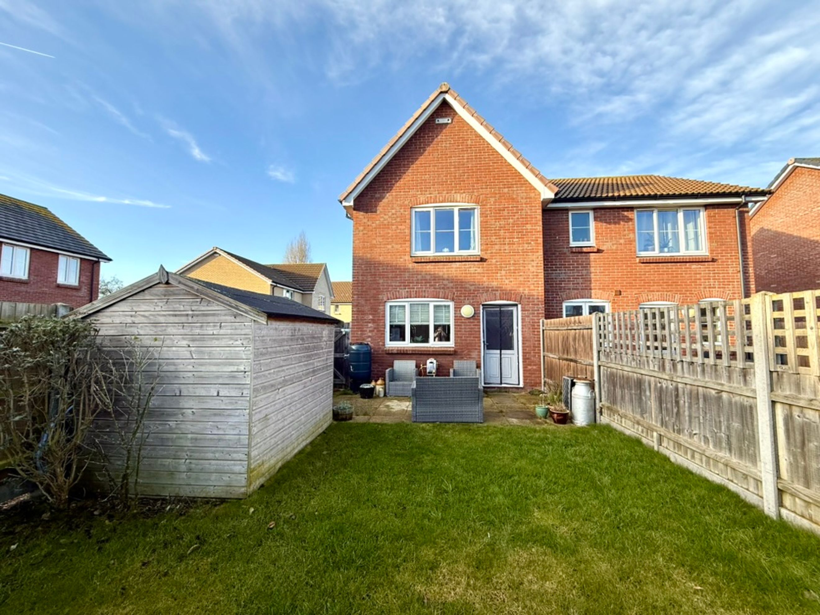 Outside, the property benefits from parking for two cars positioned to the side of the house. Gated side access leads to the rear garden, which is mainly laid to lawn with a paved patio area — a lovely space for children to play, hosting friends, or simply enjoying some quiet time outdoors.
