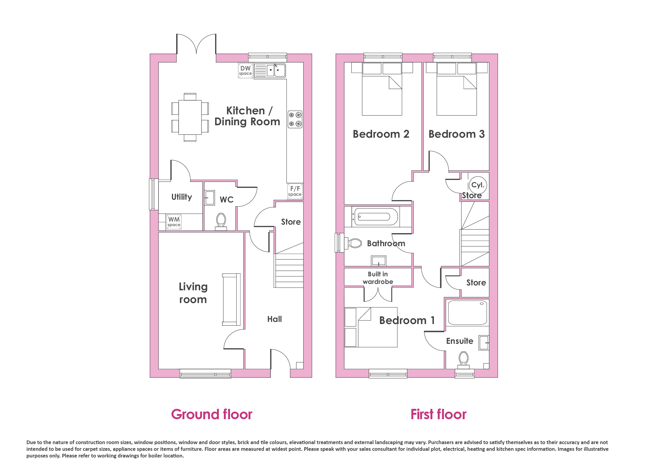 Step into the welcoming hallway and enter the lounge, a warm and inviting space ideal for relaxing with the family. The open-plan kitchen, with ample room for dining, features French doors to a turfed rear garden, creating the perfect setting for entertaining family and friends. For added convenience, you'll find, a separate utility room, a guest cloakroom and a handy under-stair storage cupboard.