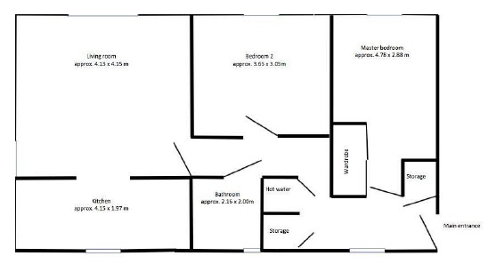 This modern first floor apartment benefits from a long lease and allocated parking. The accommodation is arranged around a central hallway and comprises a spacious living room with ample space for both seating and dining, creating an inviting area for everyday living and entertaining. The separate kitchen is thoughtfully laid out, providing good worktop and storage space and benefiting from a practical, functional design. There are two bedrooms, including a generous master bedroom featuring built-in wardrobe space, and a second bedroom that is well suited for use as a guest room, home office, or nursery. The bathroom is centrally positioned and complemented by additional storage cupboards within the apartment, enhancing day-to-day practicality.