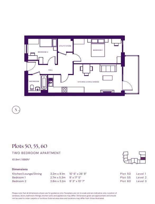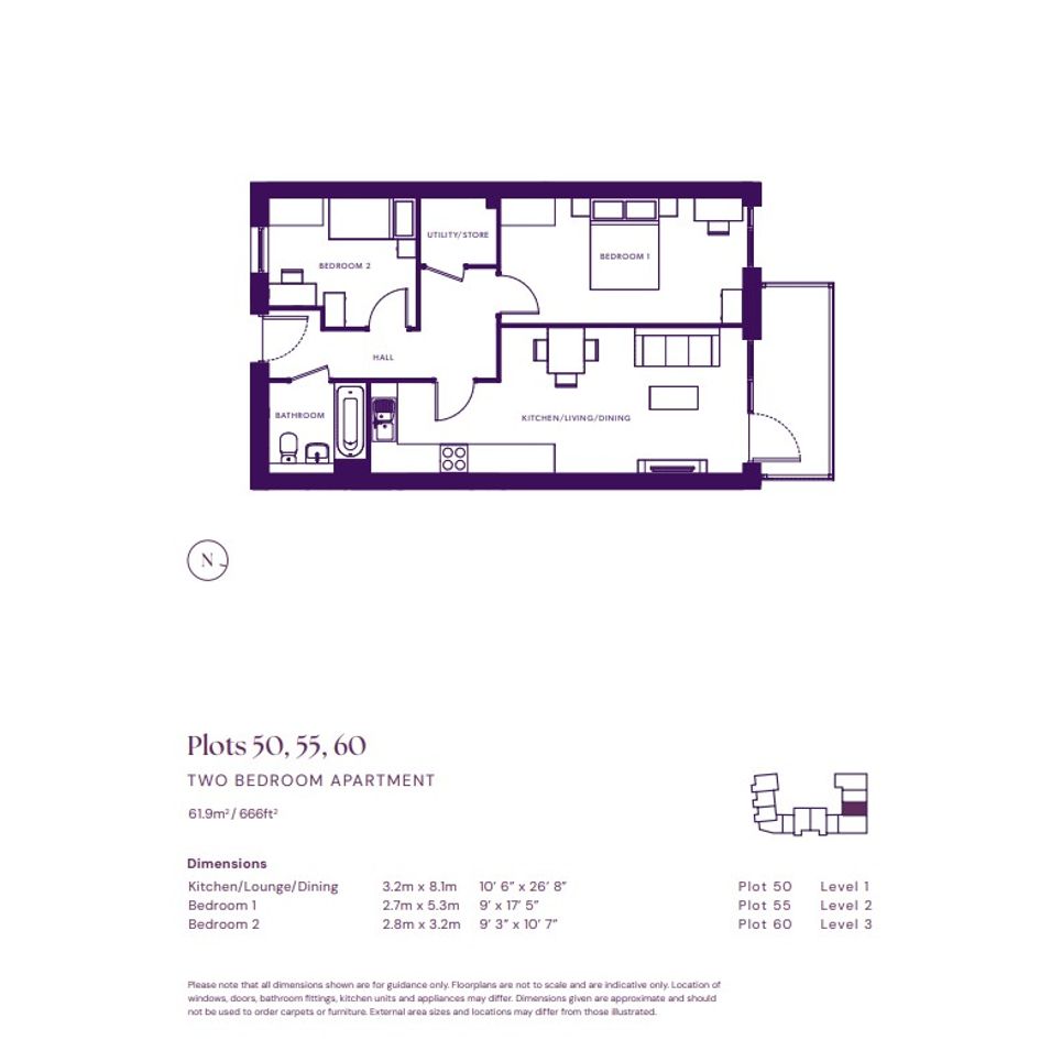 Two bedroom apartment located on the third floor. This apartment offers open plan living/dining/kitchen space with Amtico flooring in the living areas and carpets in the bedrooms. The contemporary kitchen in fitted with appliances. The apartment has two bedrooms, the main bedroom has a wardrobe. Complete with a modern bathroom and a private balcony. Plus car parking for one vehicle at the development.