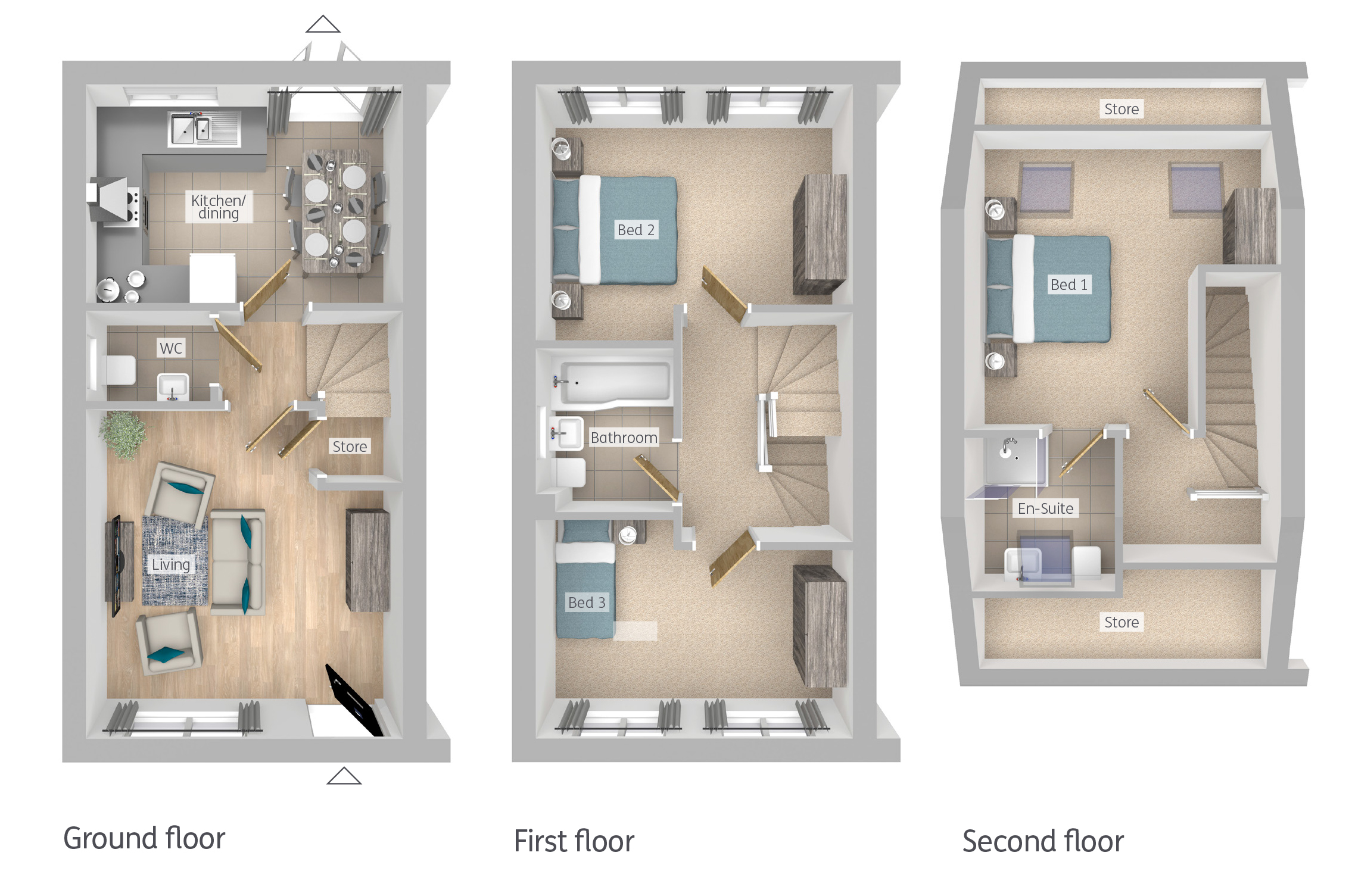We have 2 x 3 bedroom mid-terrace properties available for sale via Shared Ownership.