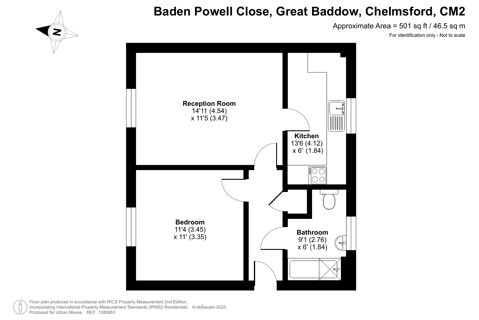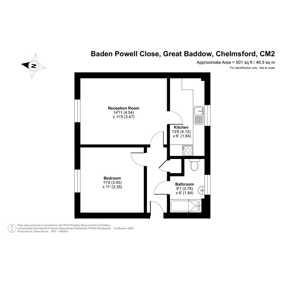 This smartly-presented flat is on the top, (second) floor and has a good-sized reception room with a doorway leading through to the spacious kitchen. There is a generously-sized bedroom and a naturally-lit bathroom with decorative mosaic tiling. Well insulated walls and roof combined with modern double glazing help to keep heating costs down. The block has a communal lawn to the front and a car park to the rear which includes a space allocated to this flat. Manor Farm Shop is just minutes away, for those that like their food as fresh and directly sourced as possible and Great Baddow High Street is within comfortable walking distance. Chelmsford city centre can also be easily reached by bike or via bus from nearby Maldon Road. Areas such as Danbury Country Park and Blakes Wood are only a short drive away and offer beautiful, outside space to explore.