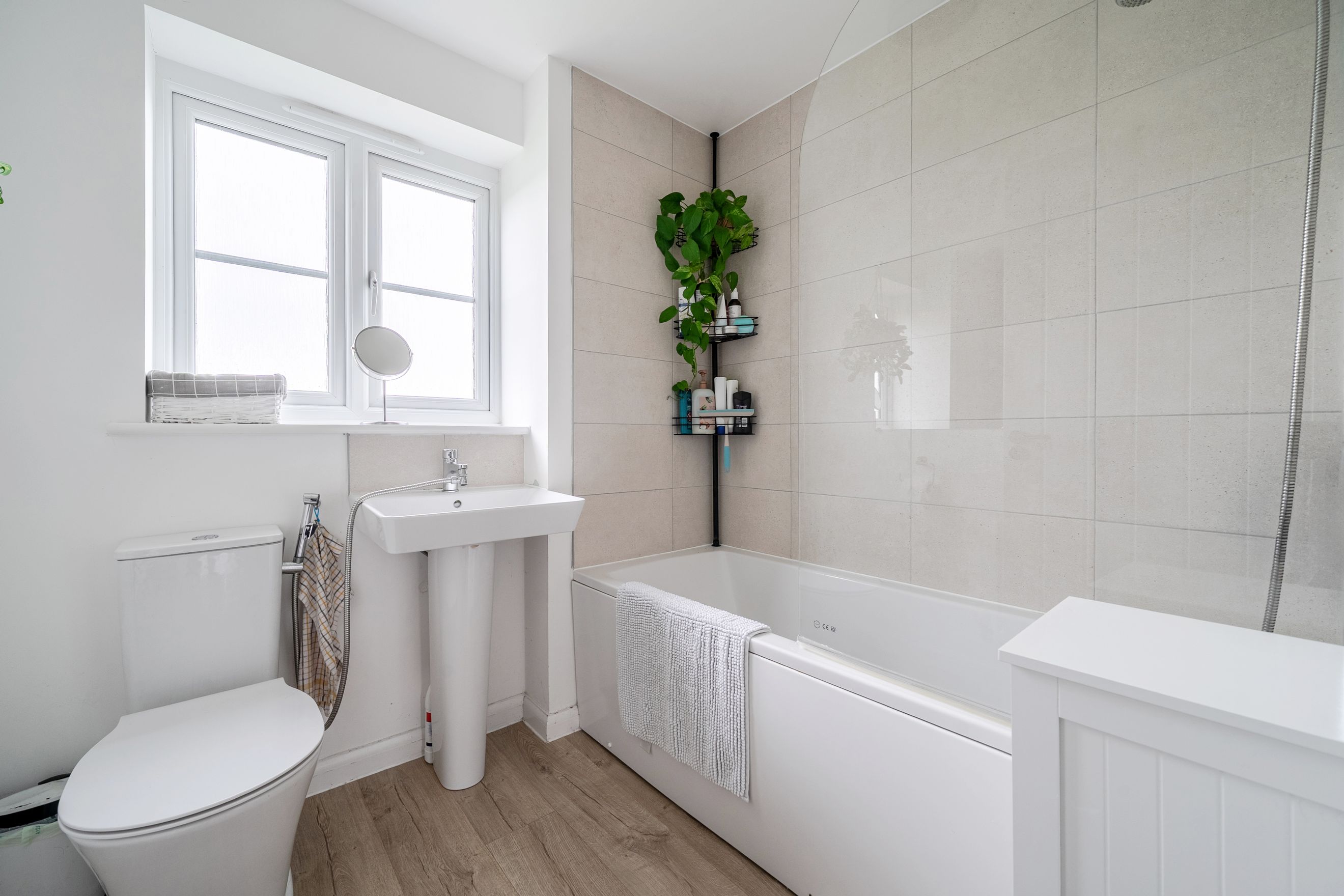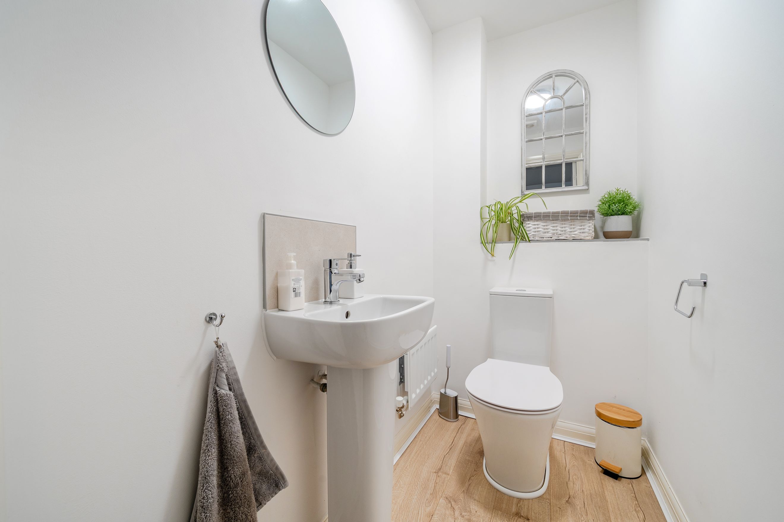 The first floor is thoughtfully arranged to maximise privacy and functionality. There are three well-proportioned bedrooms, offering flexibility for family living, guests, or home working. A contemporary family bathroom serves the bedrooms, with a layout designed for ease of use and comfort.
