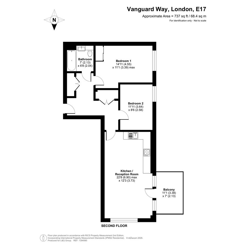 This bright and stylish two bedroom apartment consists of an open-plan kitchen and living area, flooded with natural light from floor-length windows, leading onto a full width private balcony giving you the options to both relax and dine. The kitchen consists of matt grey units and work-tops and has the benefitof intergrated appliances. There is ample room for a dining room table. There are two spacious double bedrooms which are both bright and airy. A contemporary family bathroom which consists of a white three piece suite with shower over bath and modern tiling completes the accommodation.