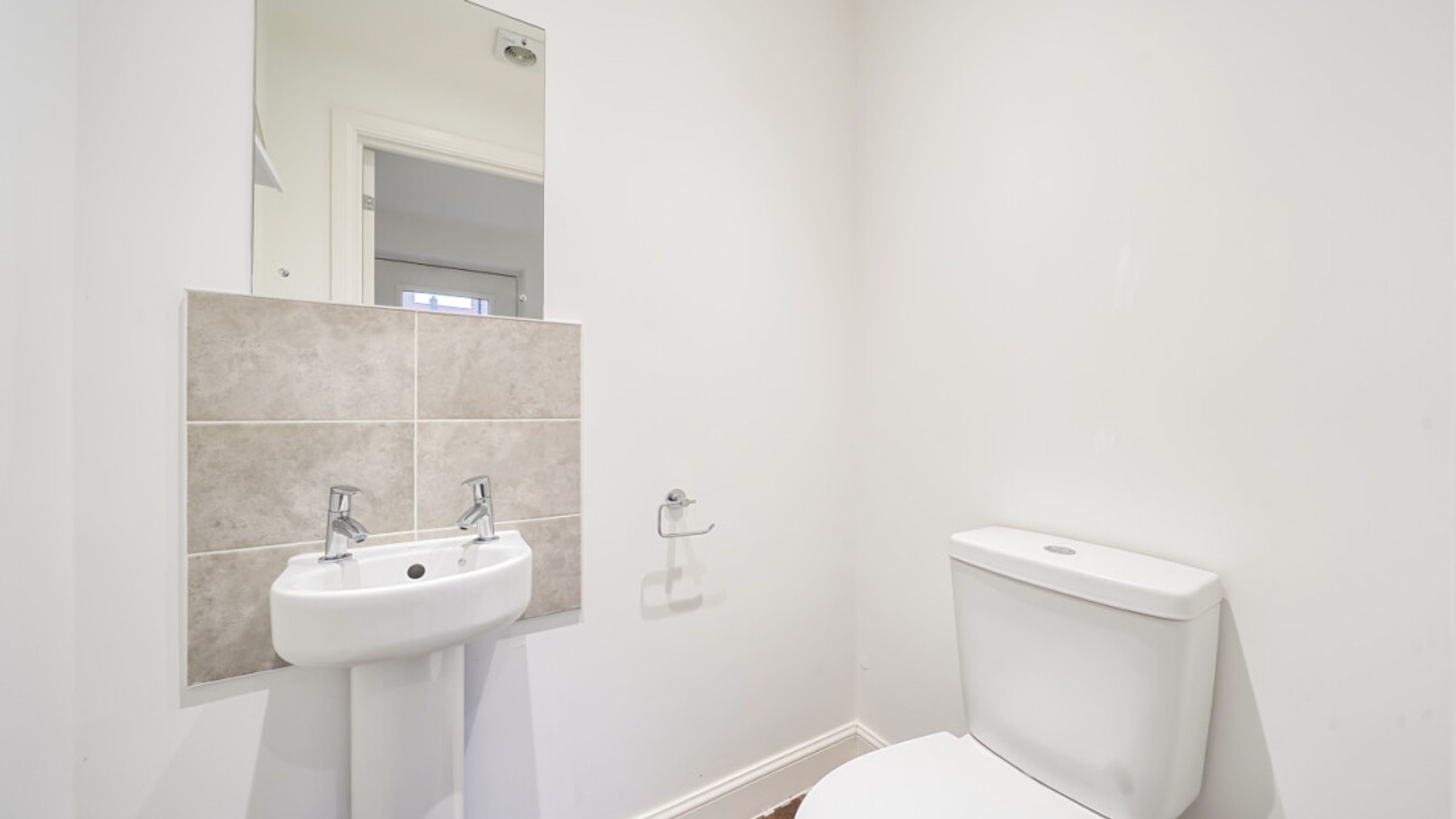 The ground floor of this bright and spacious semi-detached house consists of a stylish open-plan kitchen and living area, flooded with natural light. The kitchen is fitted with white wall and base units and a wood effect worktop. It also benefits from integrated appliances including a fridge freezer, oven, hob and extractor fan. To the rear of the kitchen is a lobby area providing access to the garden and a downstairs cloakroom/WC. The south-east facing garden is laid mainly to lawn with a small patio area and shed. On the first floor find a spacious main double bedroom to the front of the house, benefitting from built-in storage cupboards. The bright and airy second double bedroom also comes with built in storage. The bathroom comes complete with a white three-piece suite with a shower over bath and a stone tile surround.