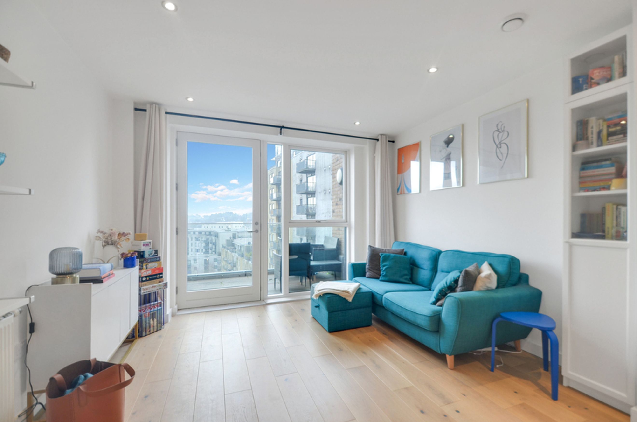 A stylish 1-bedroom apartment with a private balcony at Caledonian Point, Greenwich Creekside, SE10. Available through Shared Ownership from £154,000 for a 40% share of £385,000.
