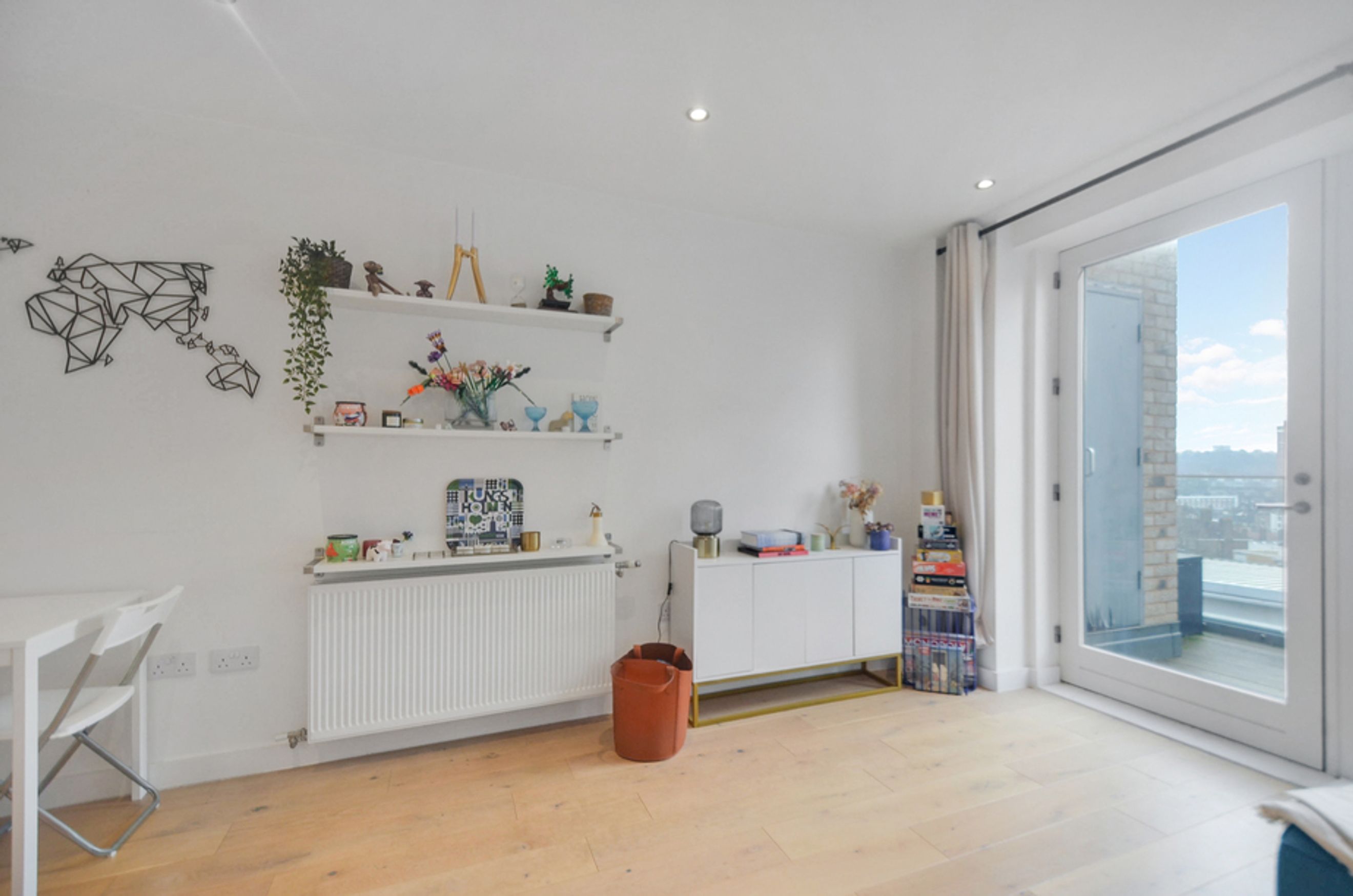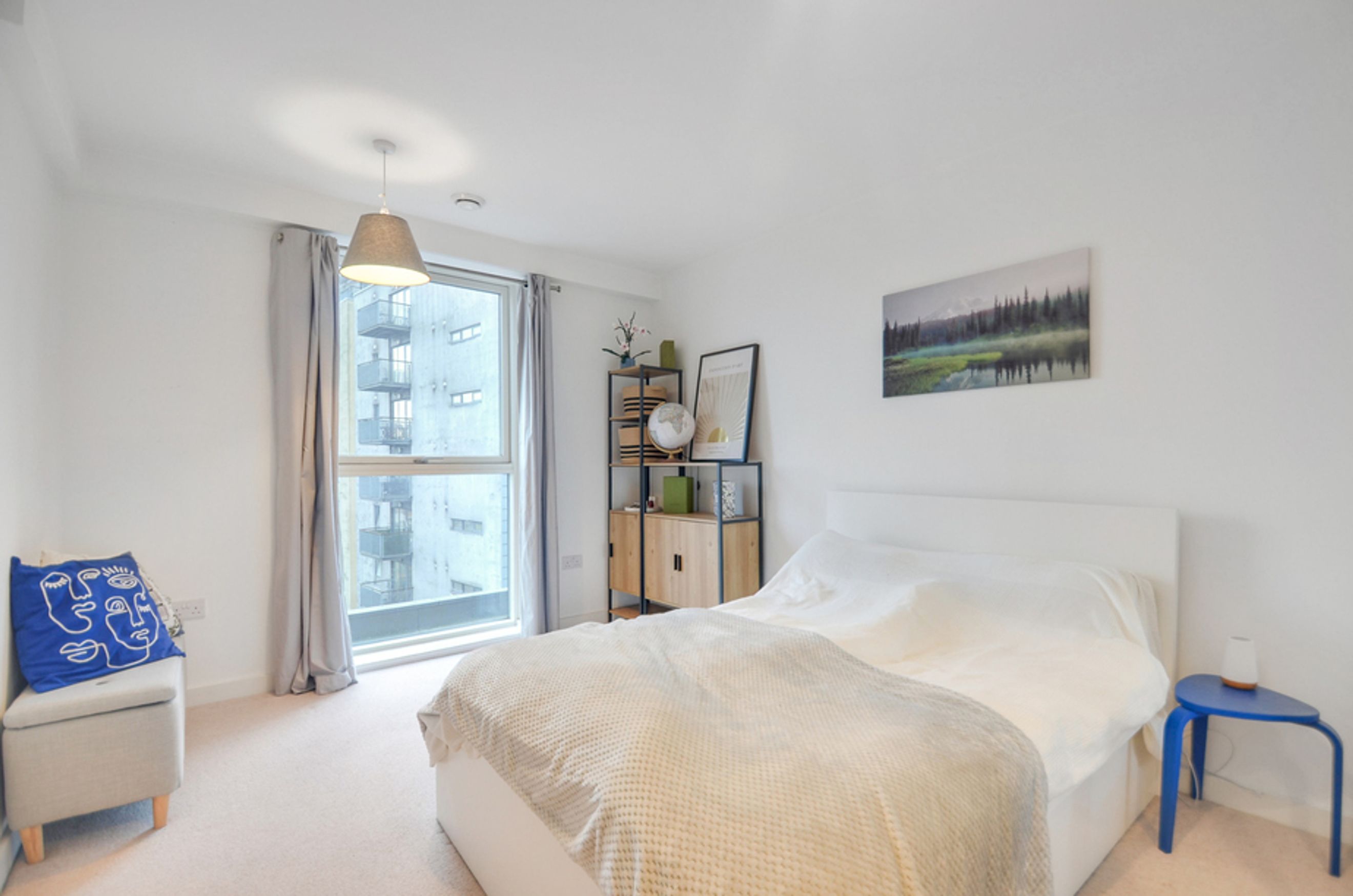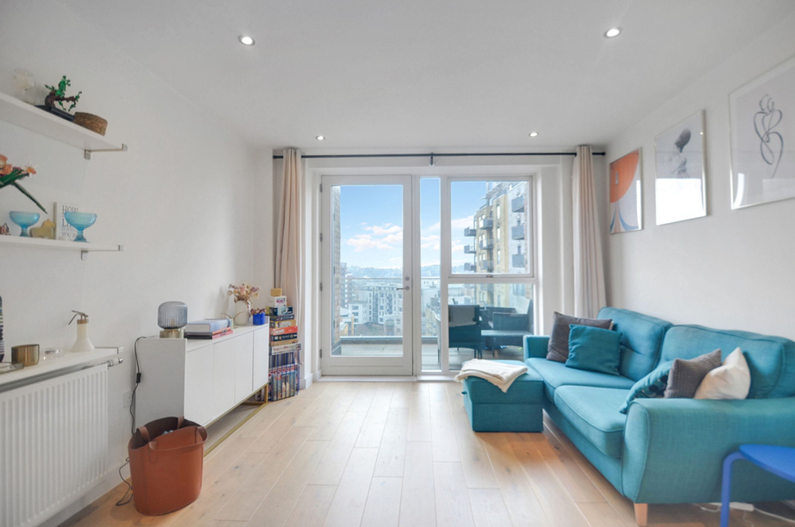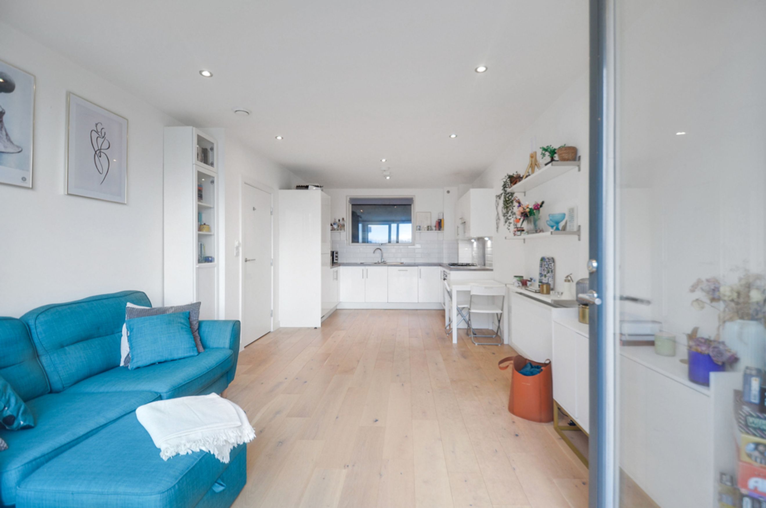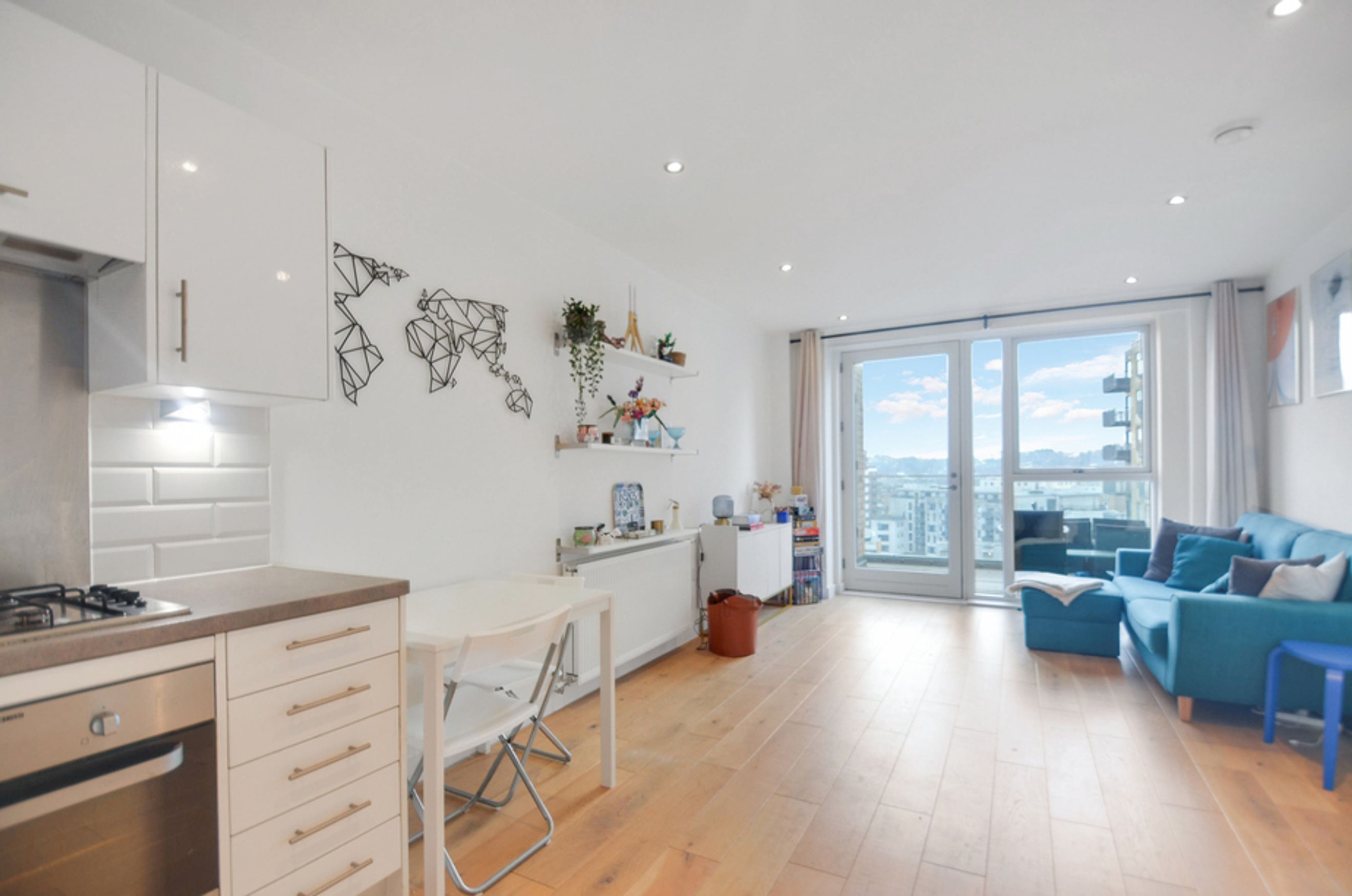 This contemporary home features an open-plan living area with floor-to-ceiling windows, bringing in plenty of natural light and showcasing views over the vibrant Creekside neighbourhood. The modern kitchen comes with integrated appliances, while the bedroom includes a fitted wardrobe for storage. You’ll also benefit from central heating and secure bike storage, making day-to-day living effortless.