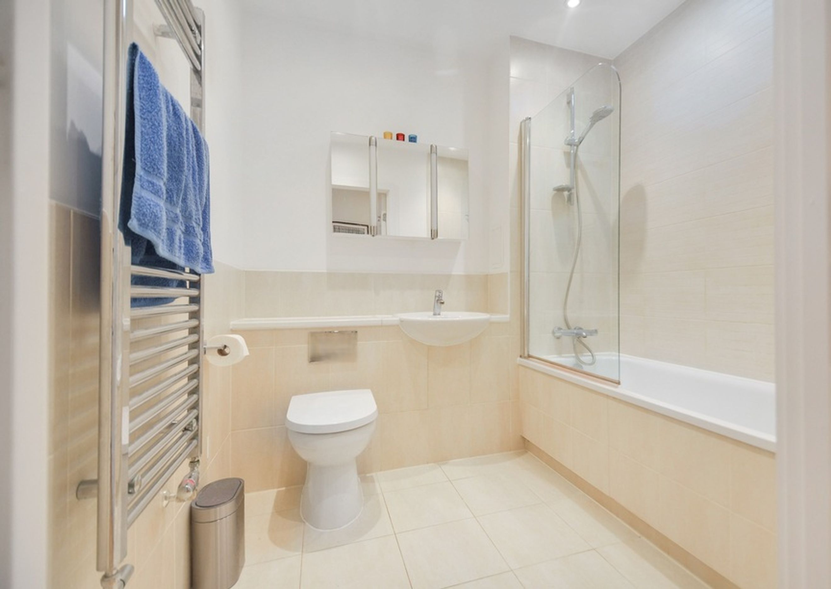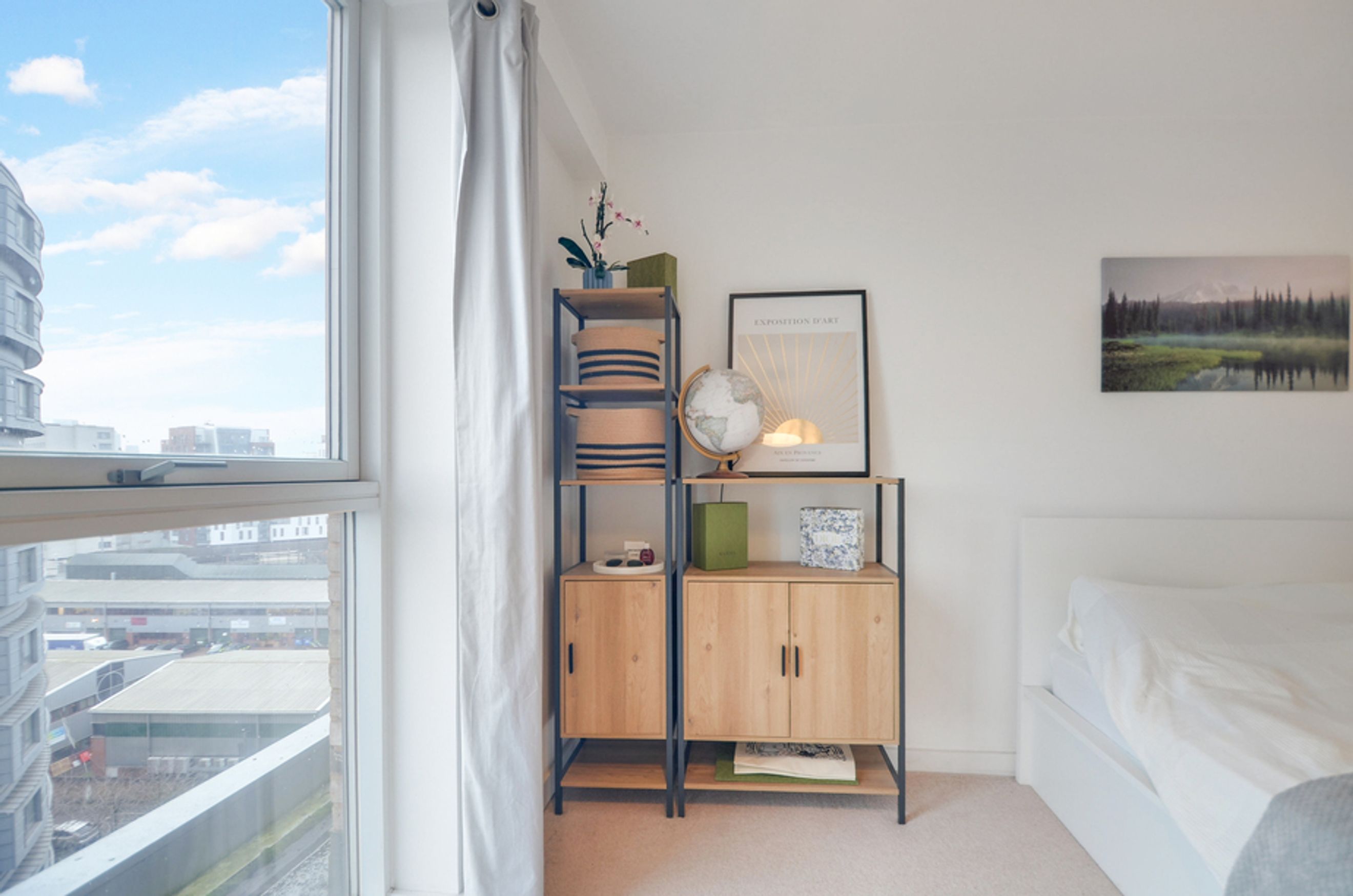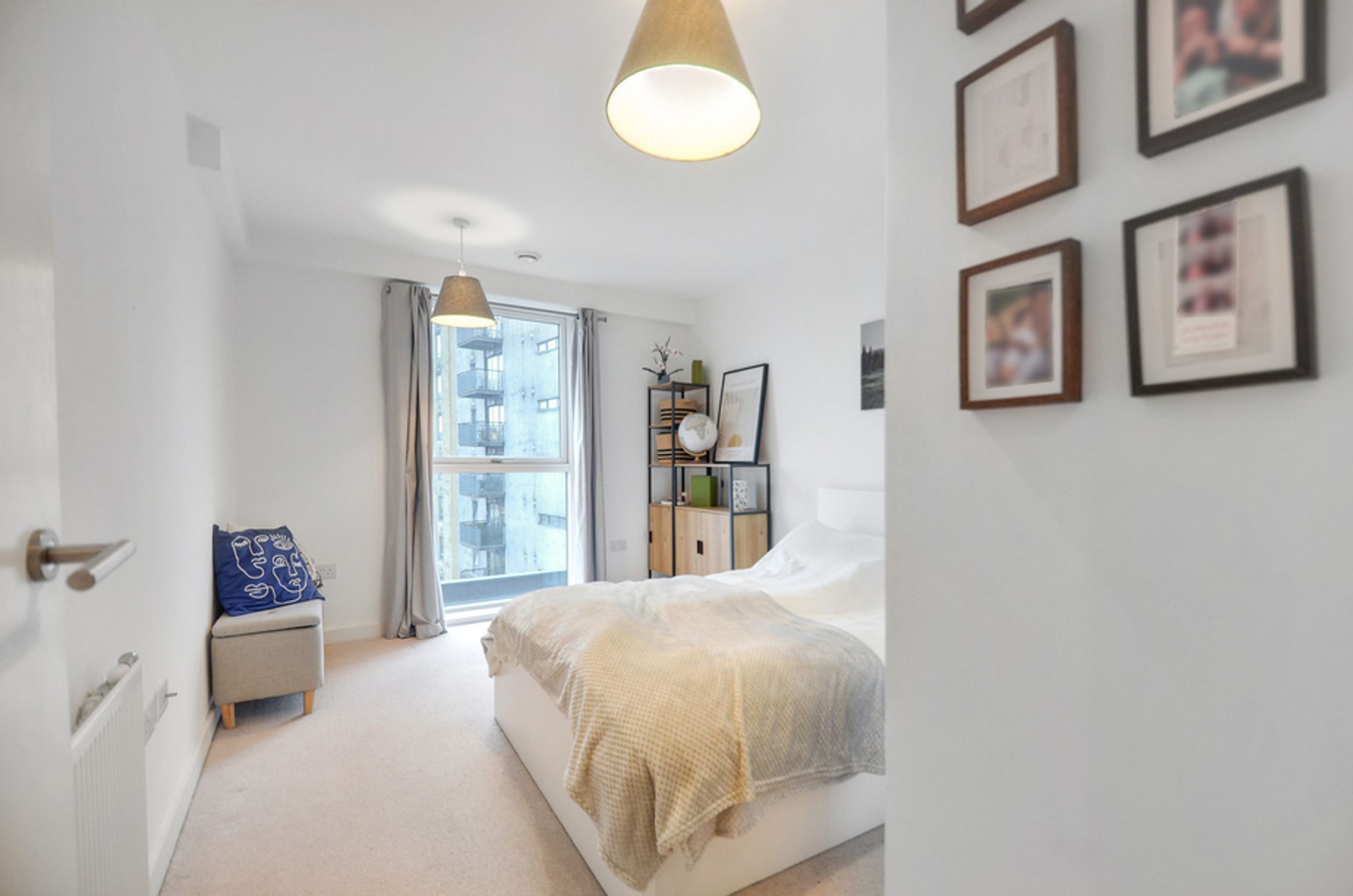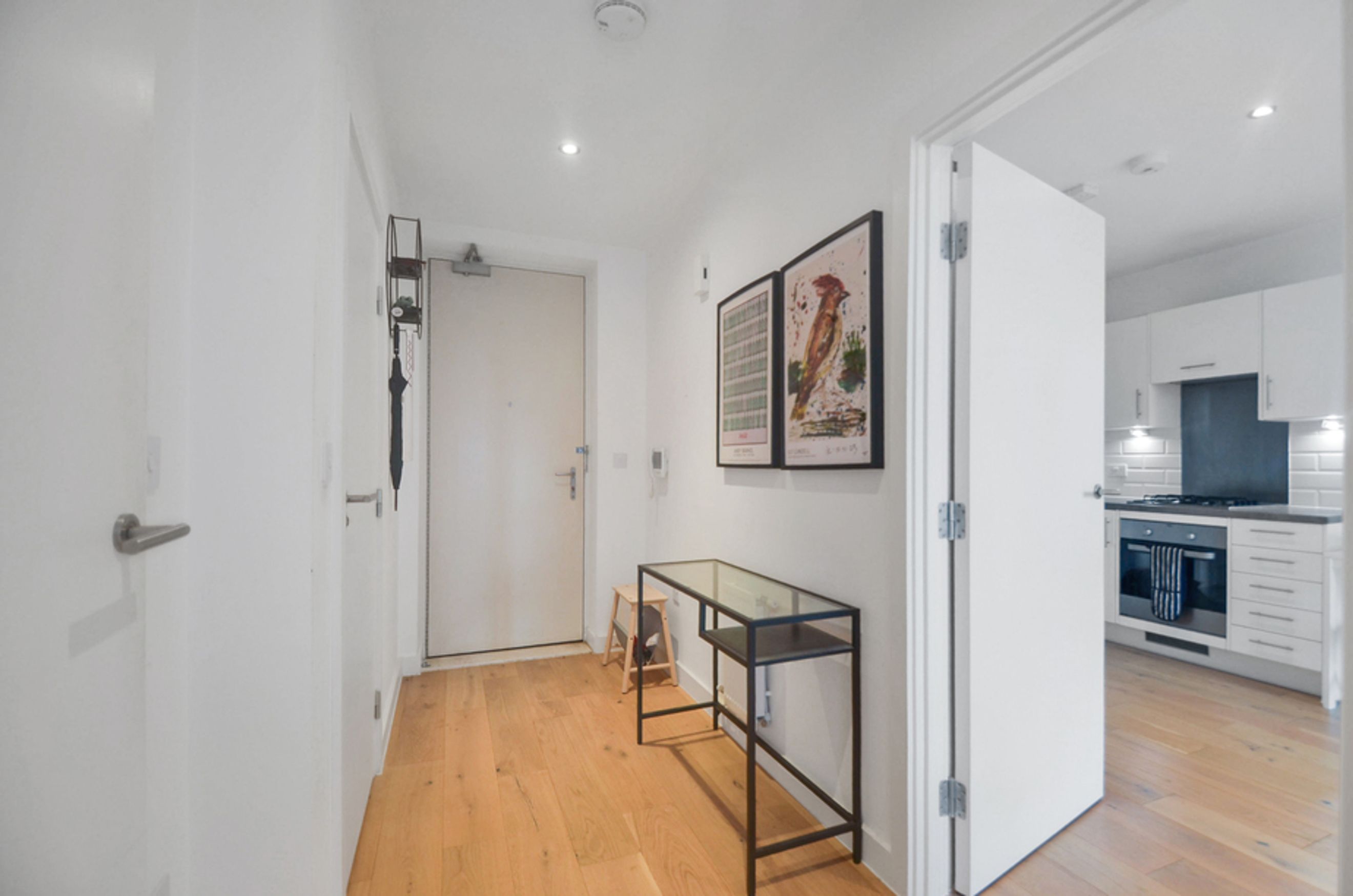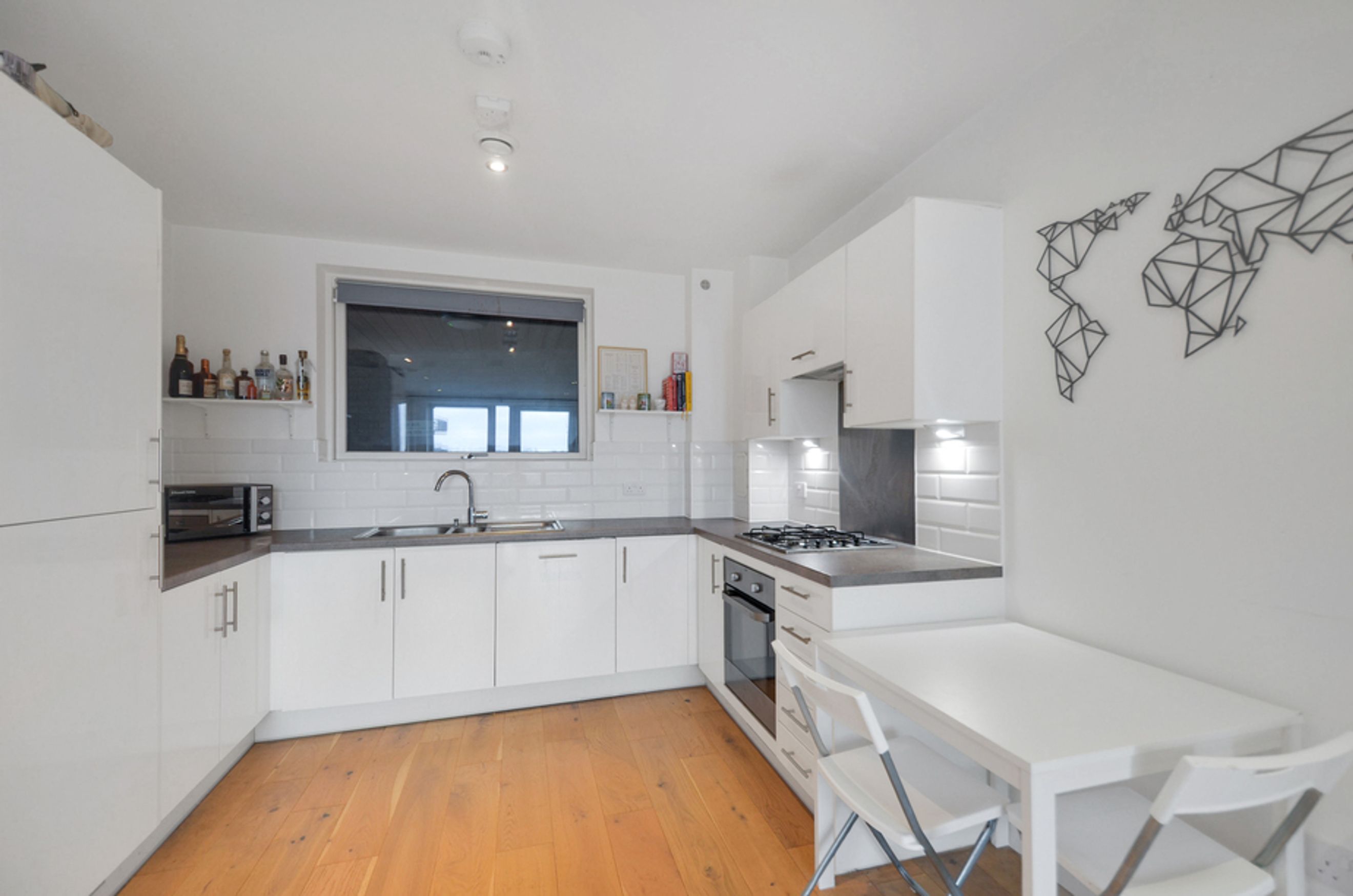 This contemporary home features an open-plan living area with floor-to-ceiling windows, bringing in plenty of natural light and showcasing views over the vibrant Creekside neighbourhood. The modern kitchen comes with integrated appliances, while the bedroom includes a fitted wardrobe for storage. You’ll also benefit from central heating and secure bike storage, making day-to-day living effortless.