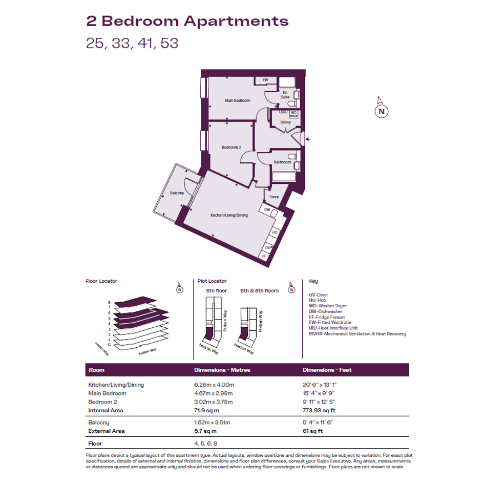 This two-bedroom apartment is available to buy from 10% shares and includes fully fitted kitchen with appliances included, a washer/dryer an separate utility storage, family bathroom and separate en-suite to main bedroom, a private balcony and an allocated parking space.
