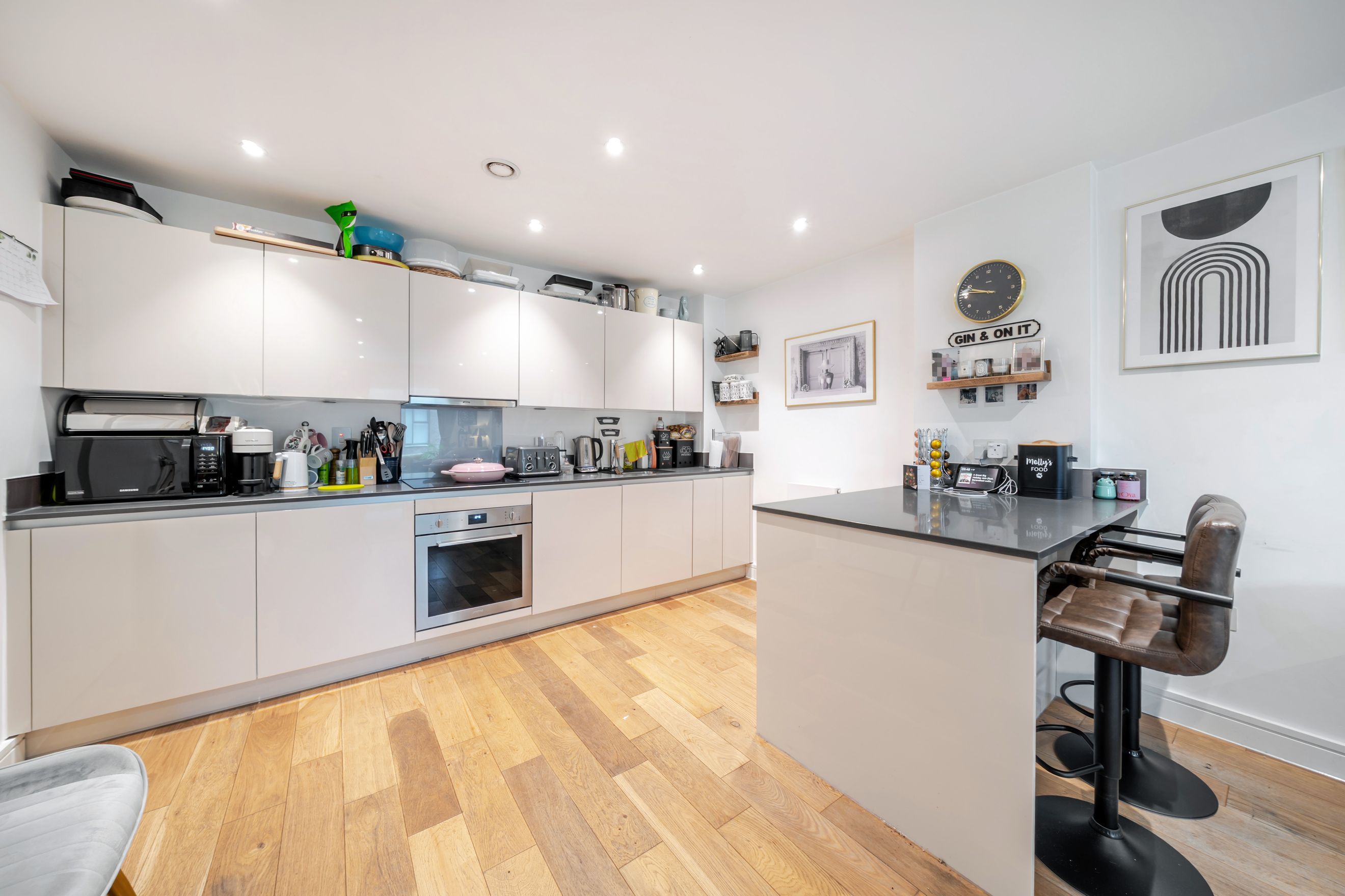 This well presented first floor apartment is located within SW4 and benefits from ALLOCATED UNDERGROUND PARKING. The property offers approximately 790 sq ft of internal space and is arranged around a spacious open plan kitchen and reception room, providing an excellent area for both everyday living and entertaining whilst giving access to a private balcony. The kitchen is neatly fitted with integrated appliances and generous worktop space, while the reception area comfortably accommodates dining and lounge furniture.