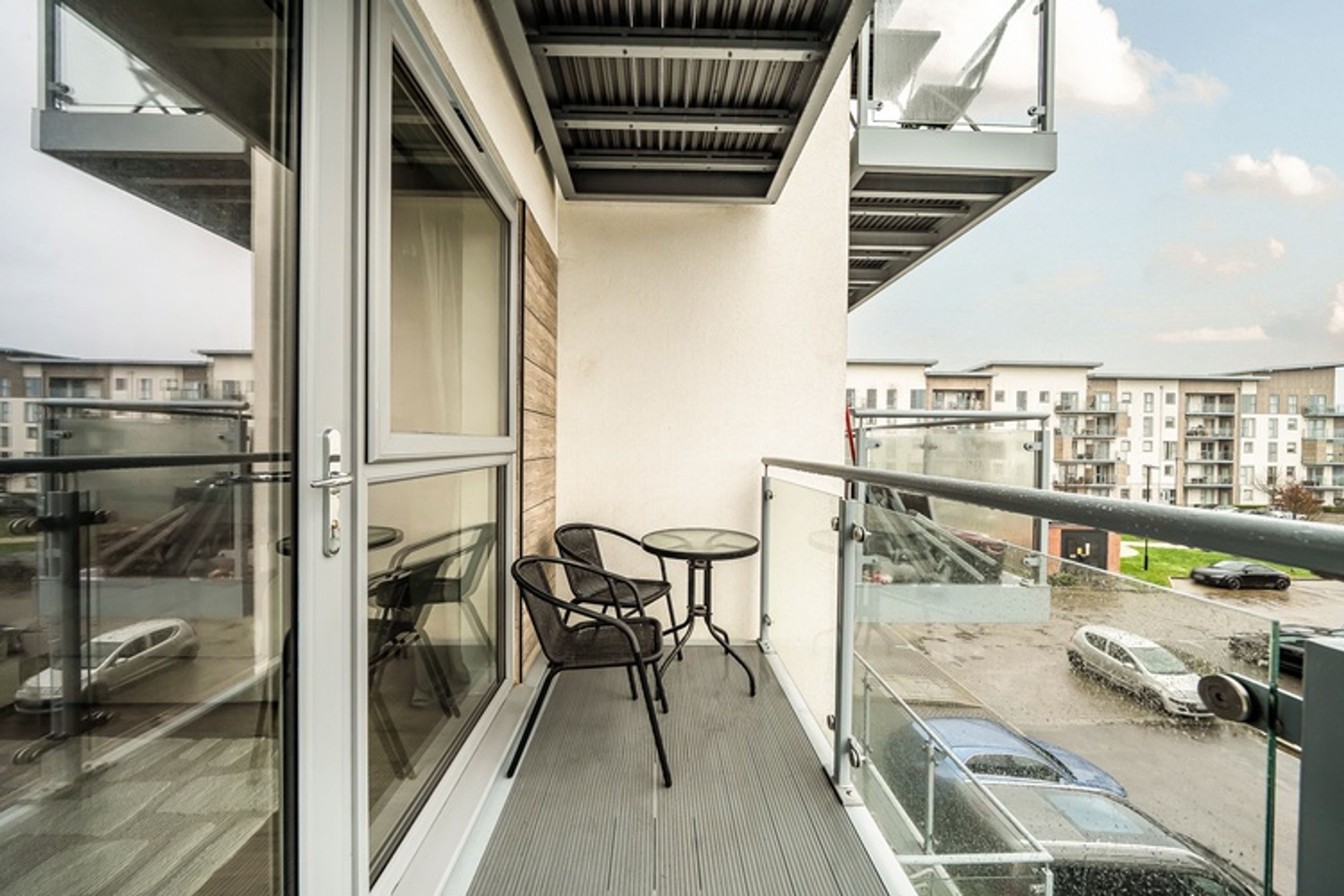 Outside, there is a private balcony and allocated off-street parking. Perfect for couples and small families.