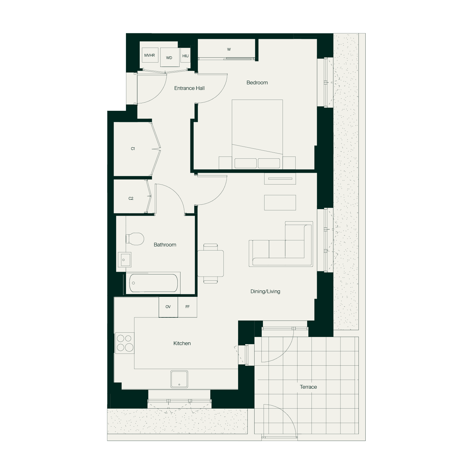 - Private outdoor space to all homes