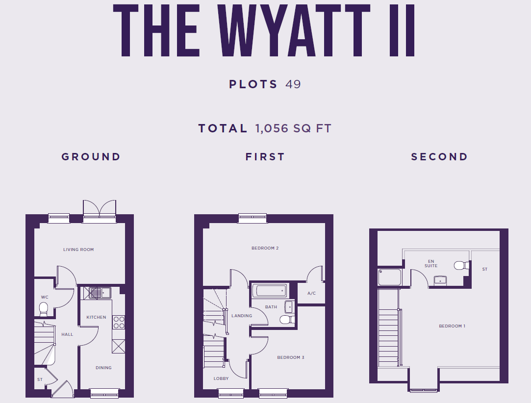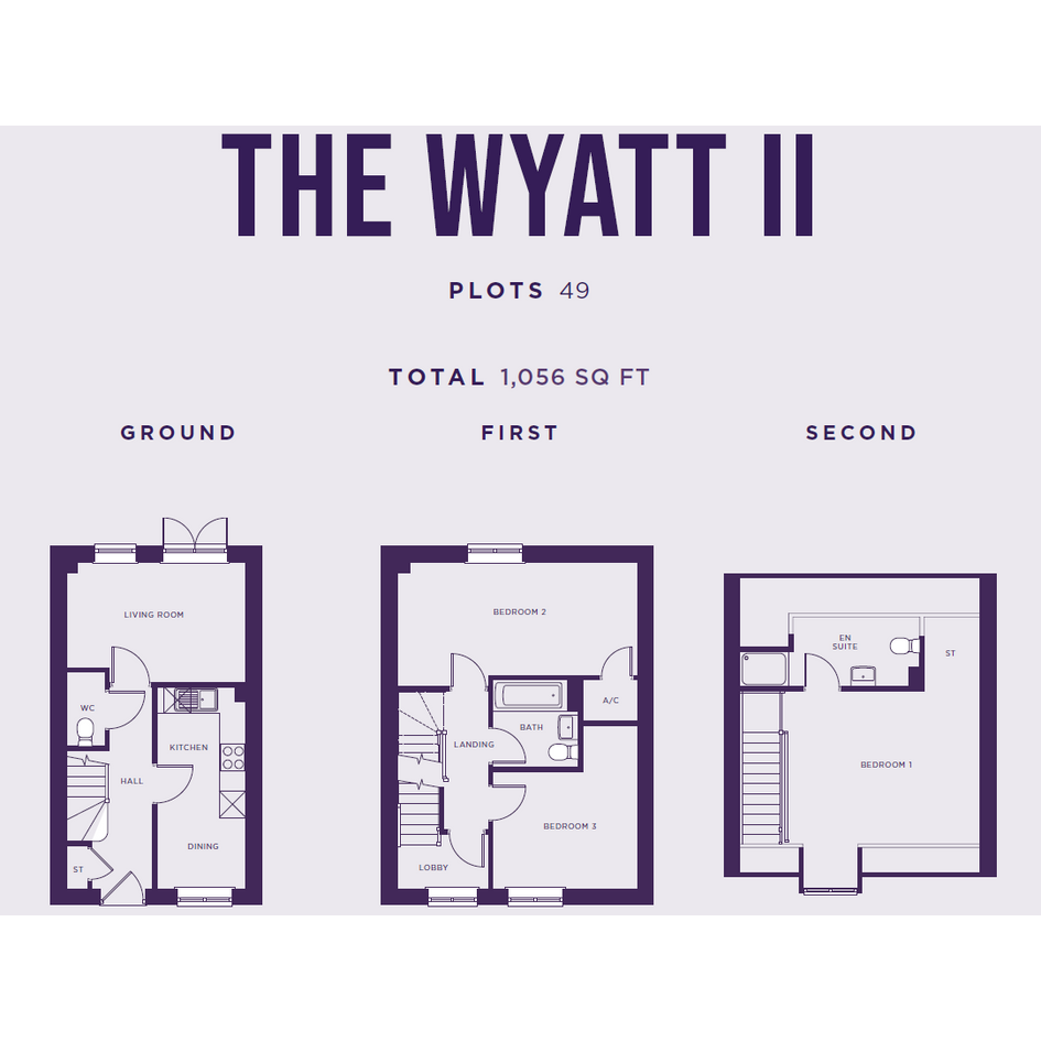Introducing The Wyatt II, a 3 storey, Three bedroom mid terrace home, on entering the property you are greeted by a long entrance hall, stairs and the downstairs W/C. To the left of the property of the property is the kitchen/Diner, to the back of the property is a living area, leading to the back garden.