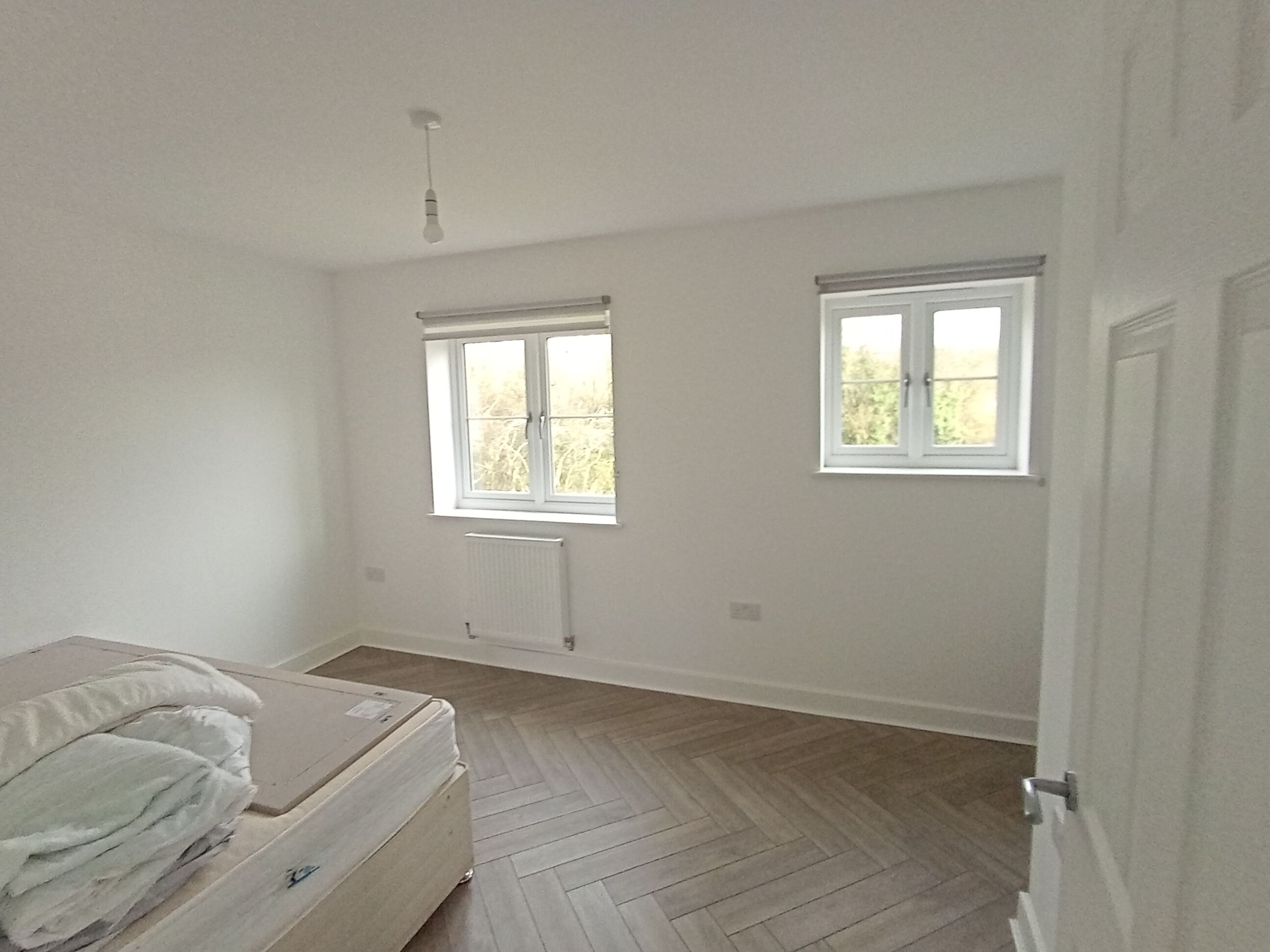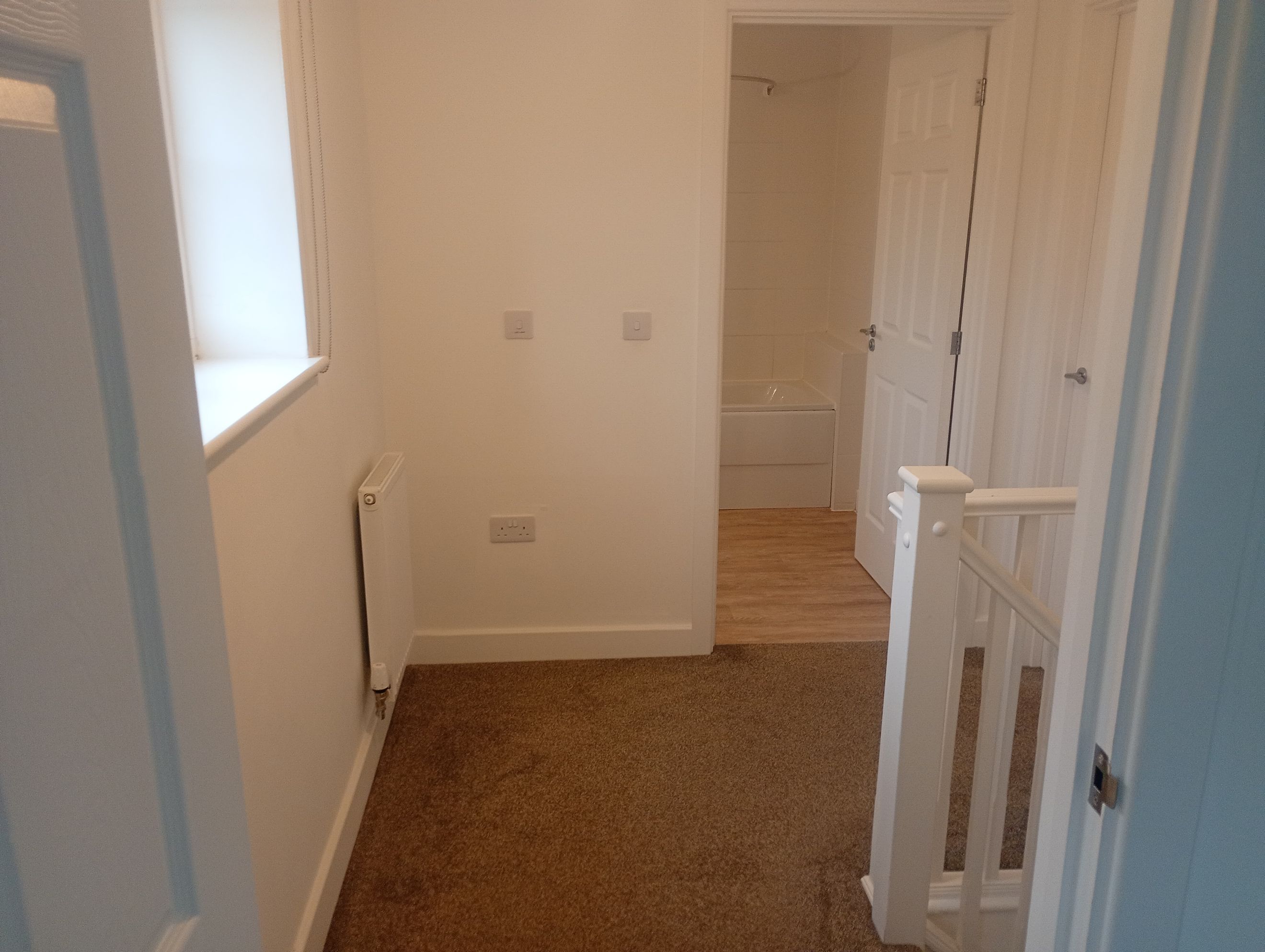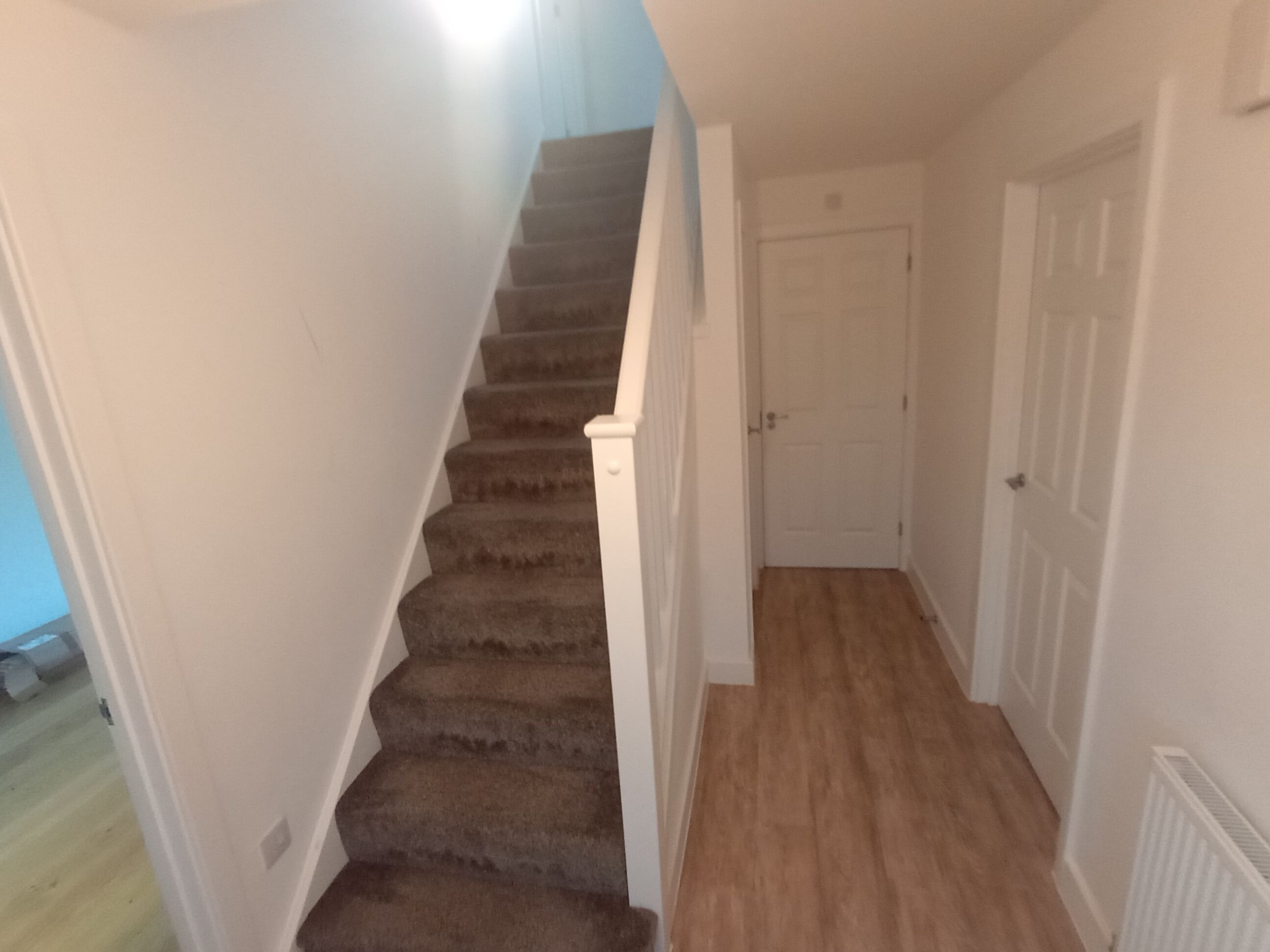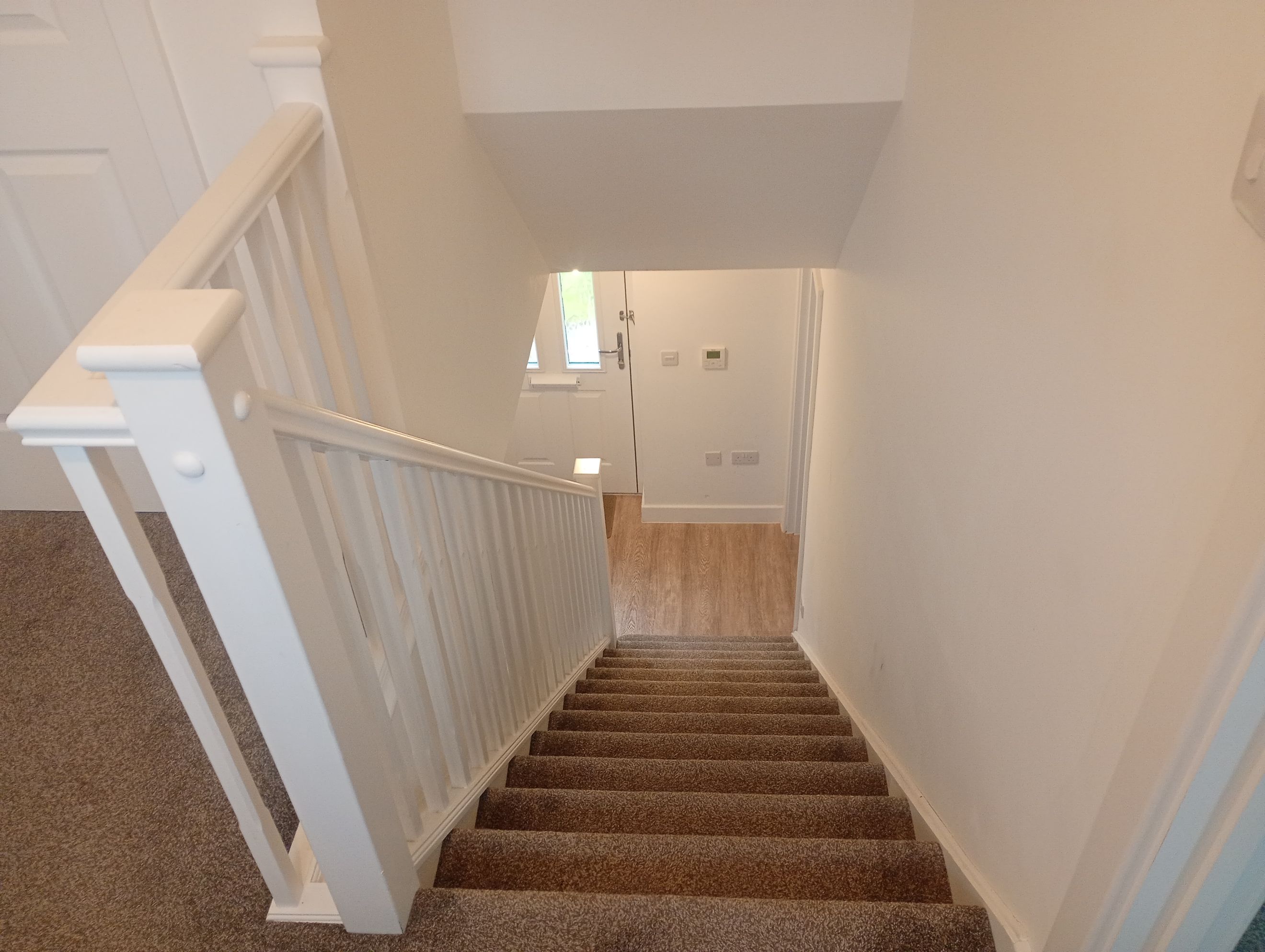Stairs from the hallway lead to two generously sized double bedrooms, both bright and airy.