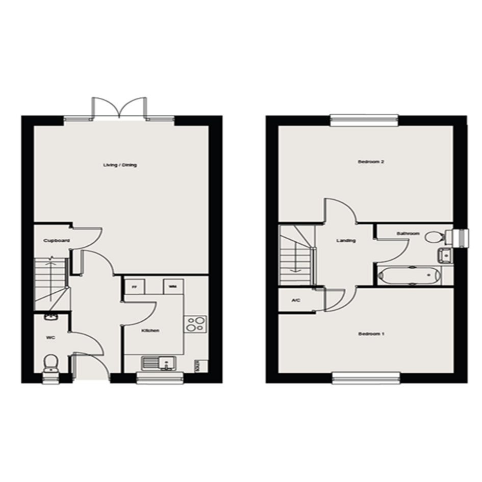 The property itself is approximately 81m2 and comprises of and entrance hallway, downstairs cloakroom, kitchen, living/dining room, two bedrooms, bathroom and private rear garden. The property also benefits from two allocated parking spaces.