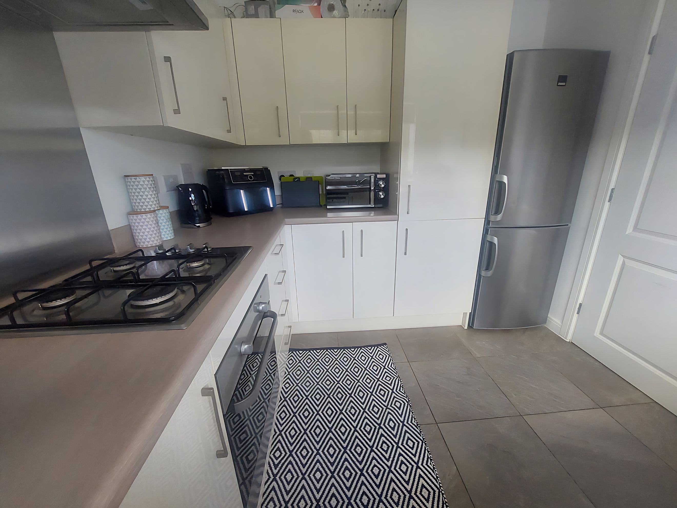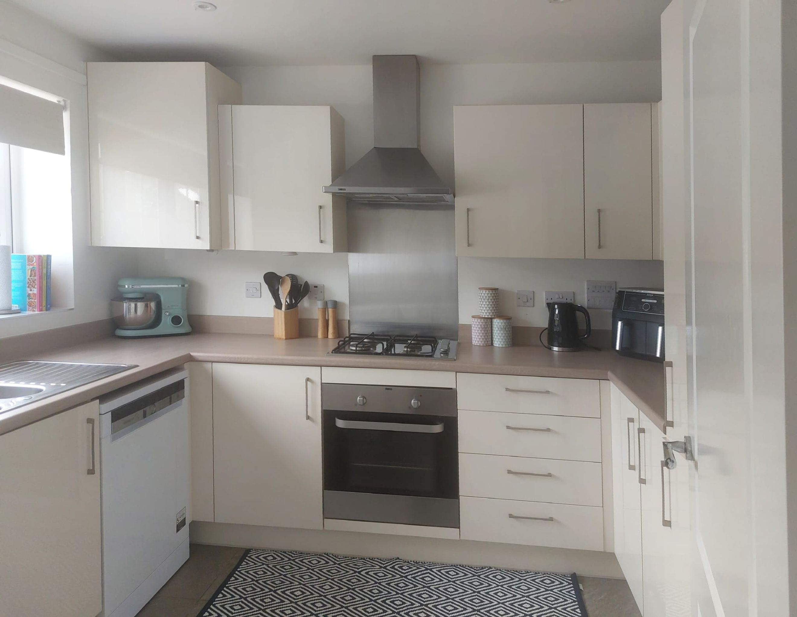 This well presented two bedroom home opens into a good sized hallway with cloakroom, under stairs cupboard and downstairs toilet. A modern fitted kitchen located at the front of the property includes ample storage and space for a washing machine and dishwasher.