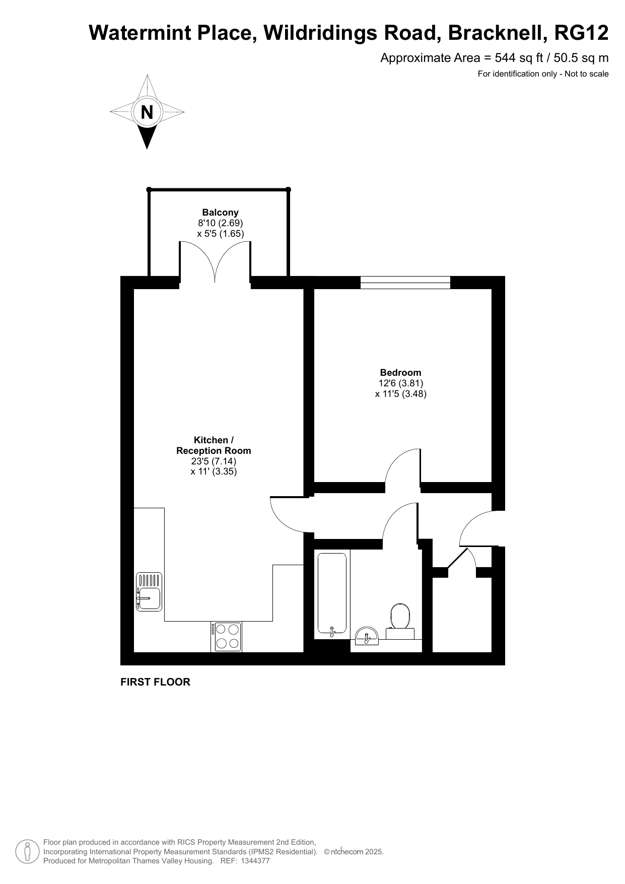 The property is situated on the first floor which comprises one bedroom, a bathroom, and an open reception/ kitchen area leading to a private balcony.