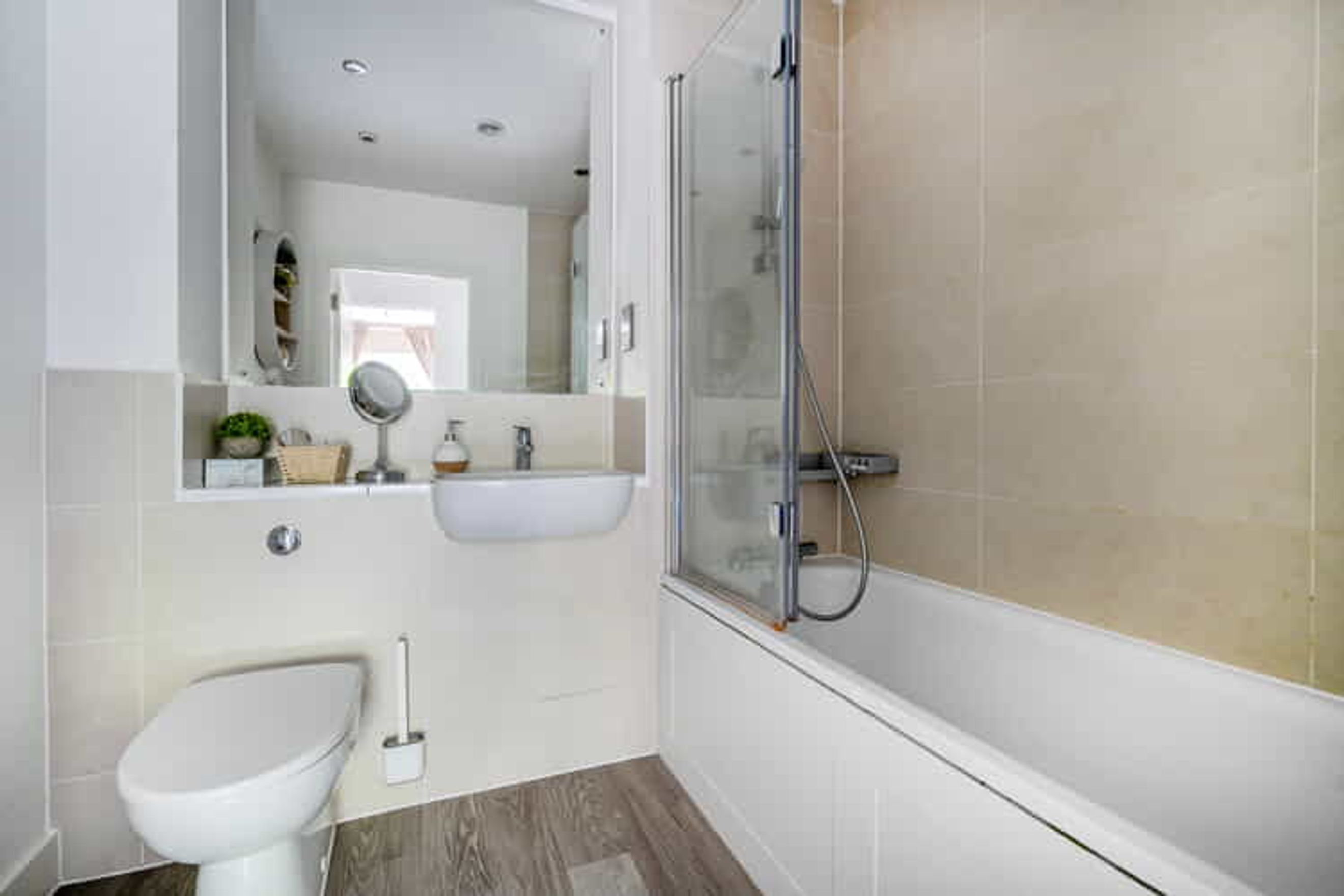 Outside, there is allocated parking and communal gardens.