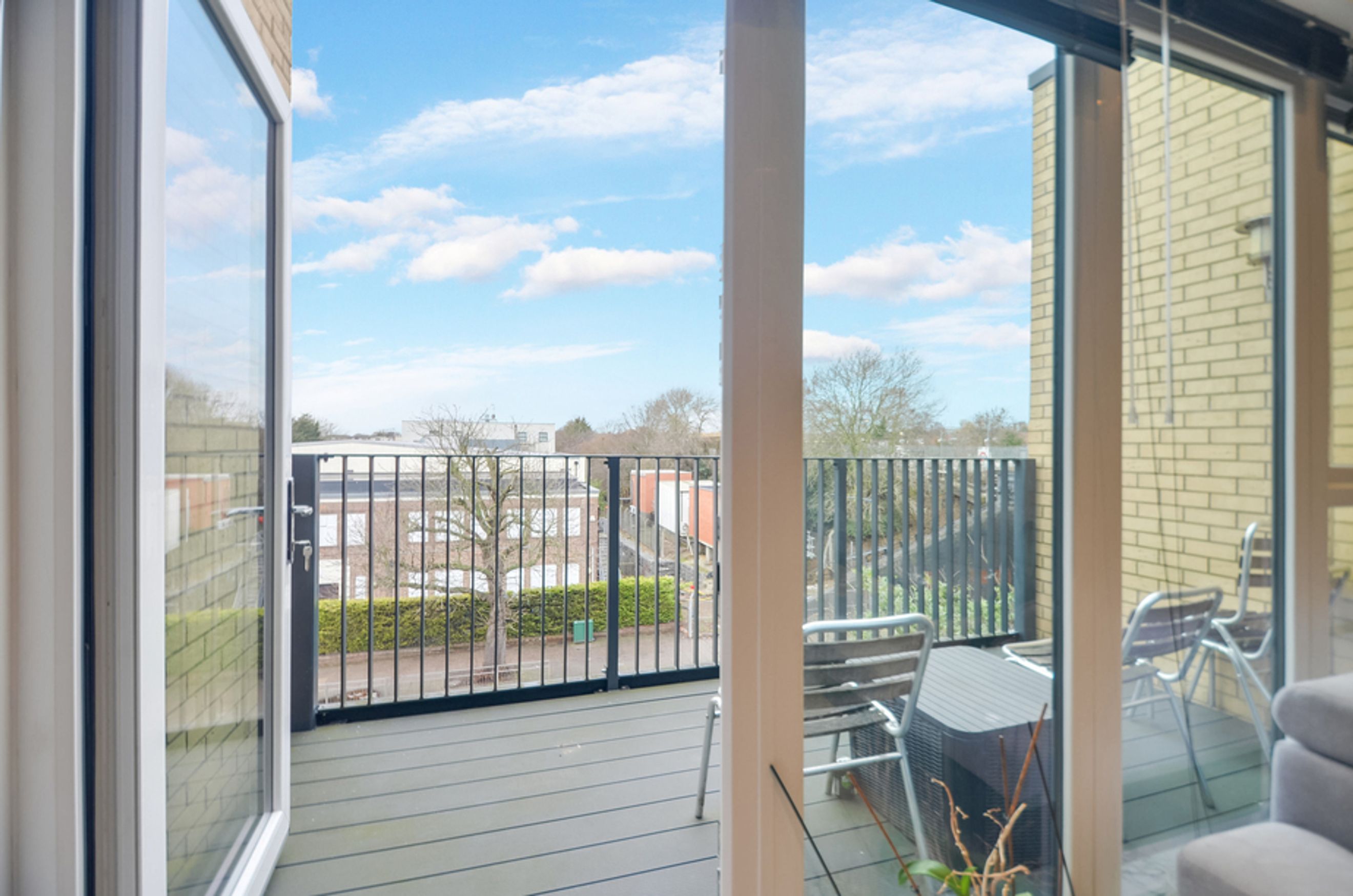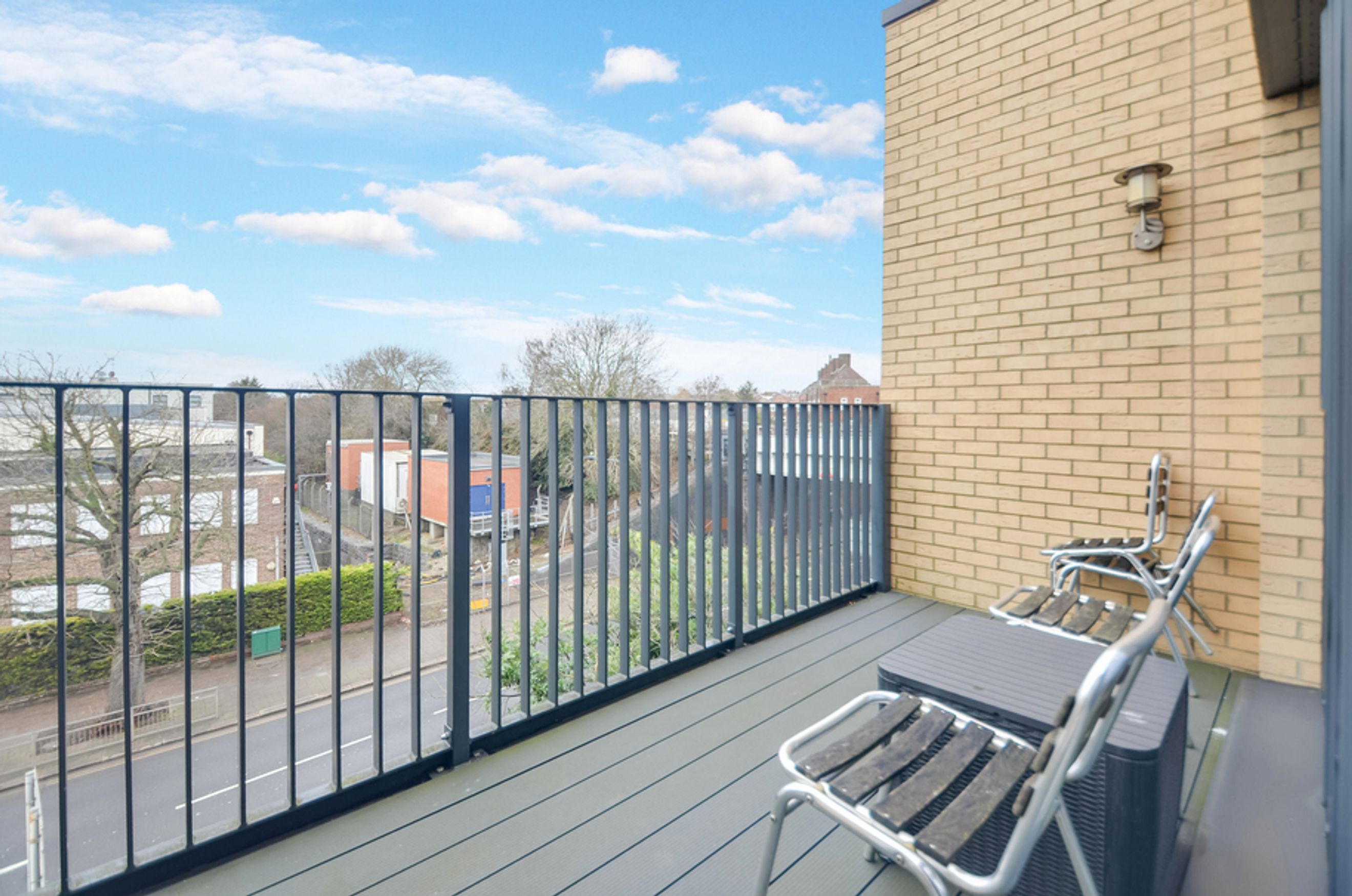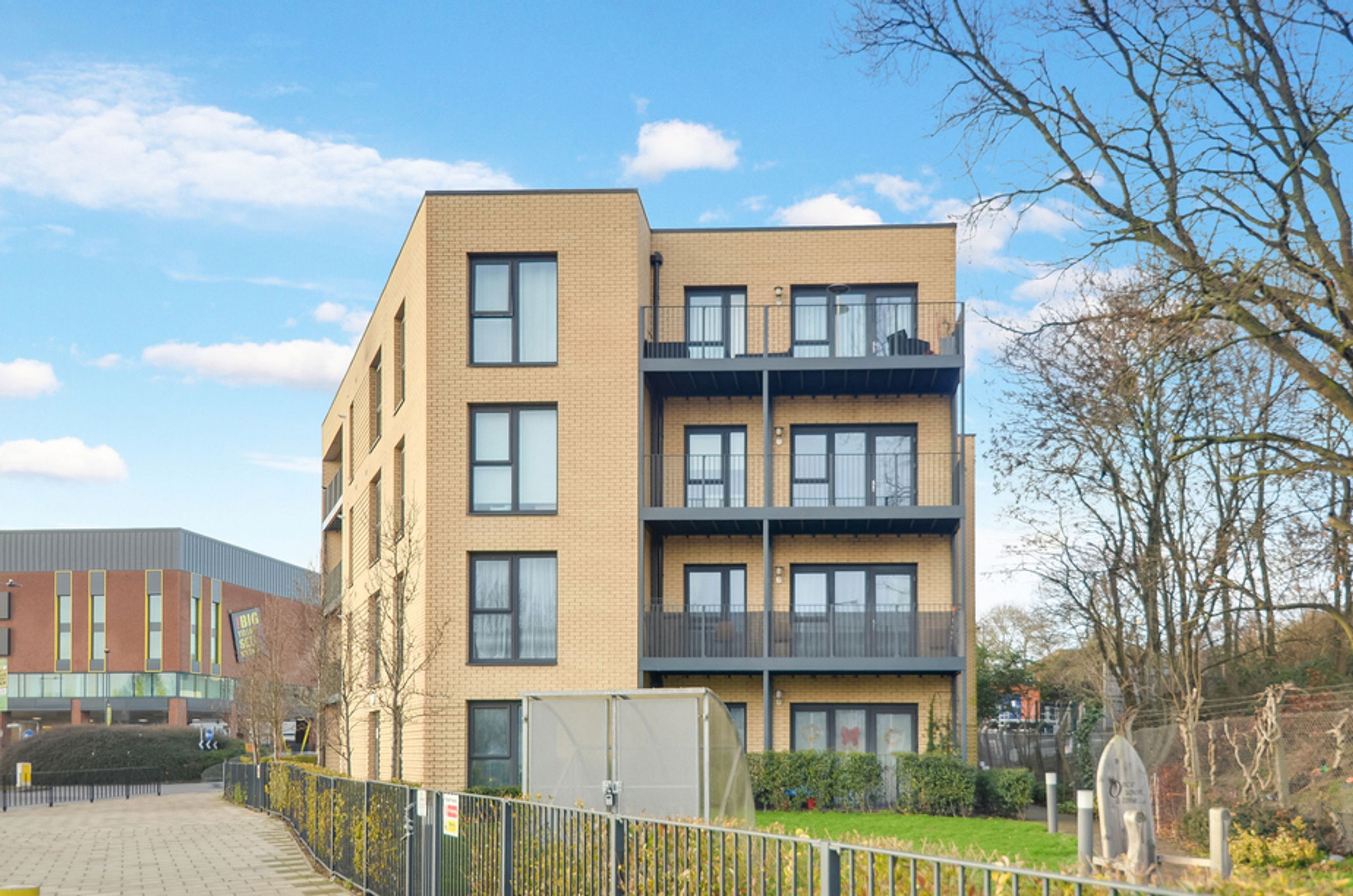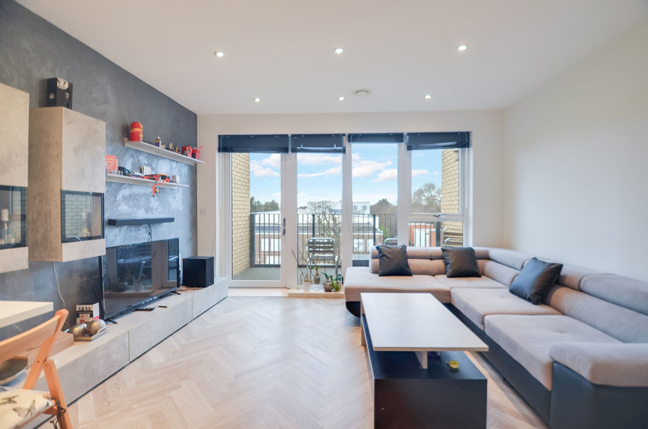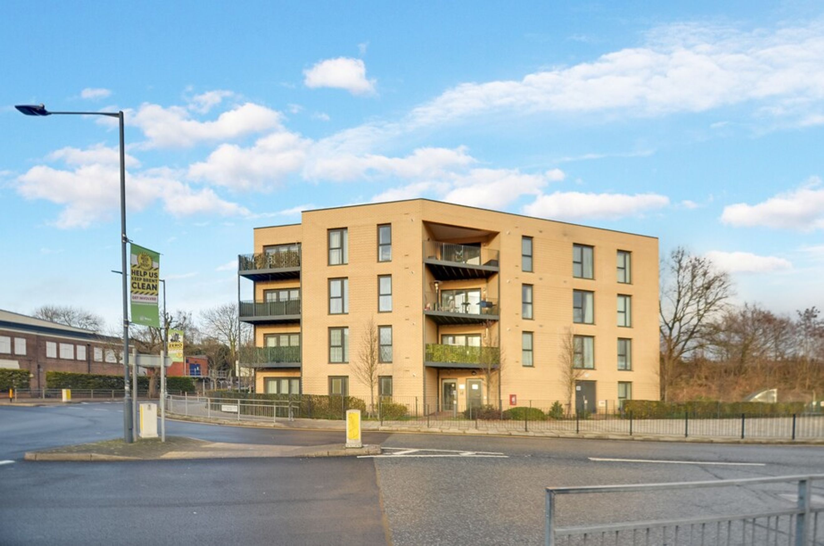 A modern 1-bedroom apartment with a private balcony in Queensbury, London.