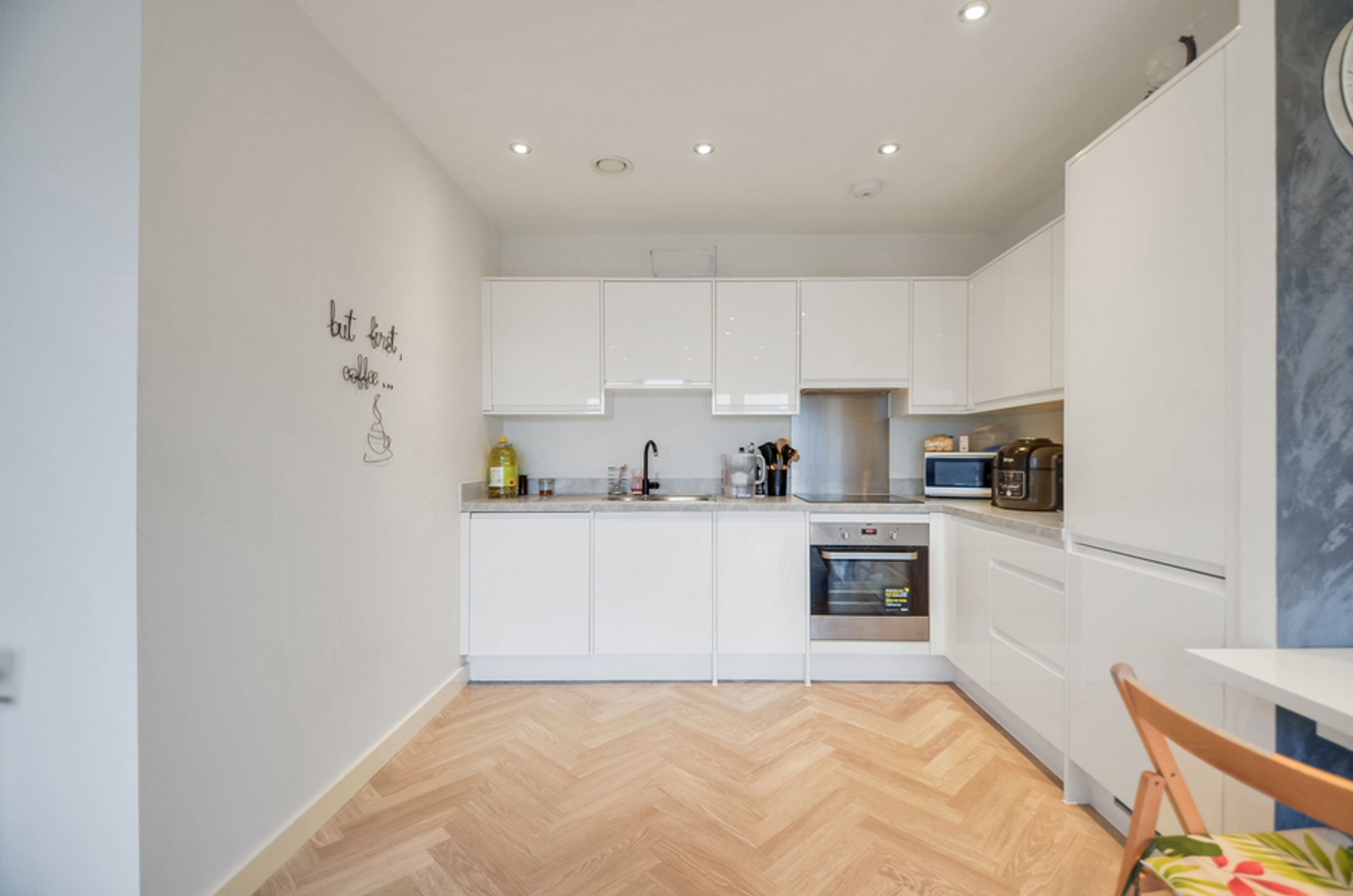 This bright and stylish home offers open-plan living with floor‑to‑ceiling windows that fill the space with natural light. The contemporary kitchen features integrated appliances, while central heating ensures comfort all year round. You’ll also enjoy access to a communal garden and secure bike storage, providing both convenience and peace of mind.