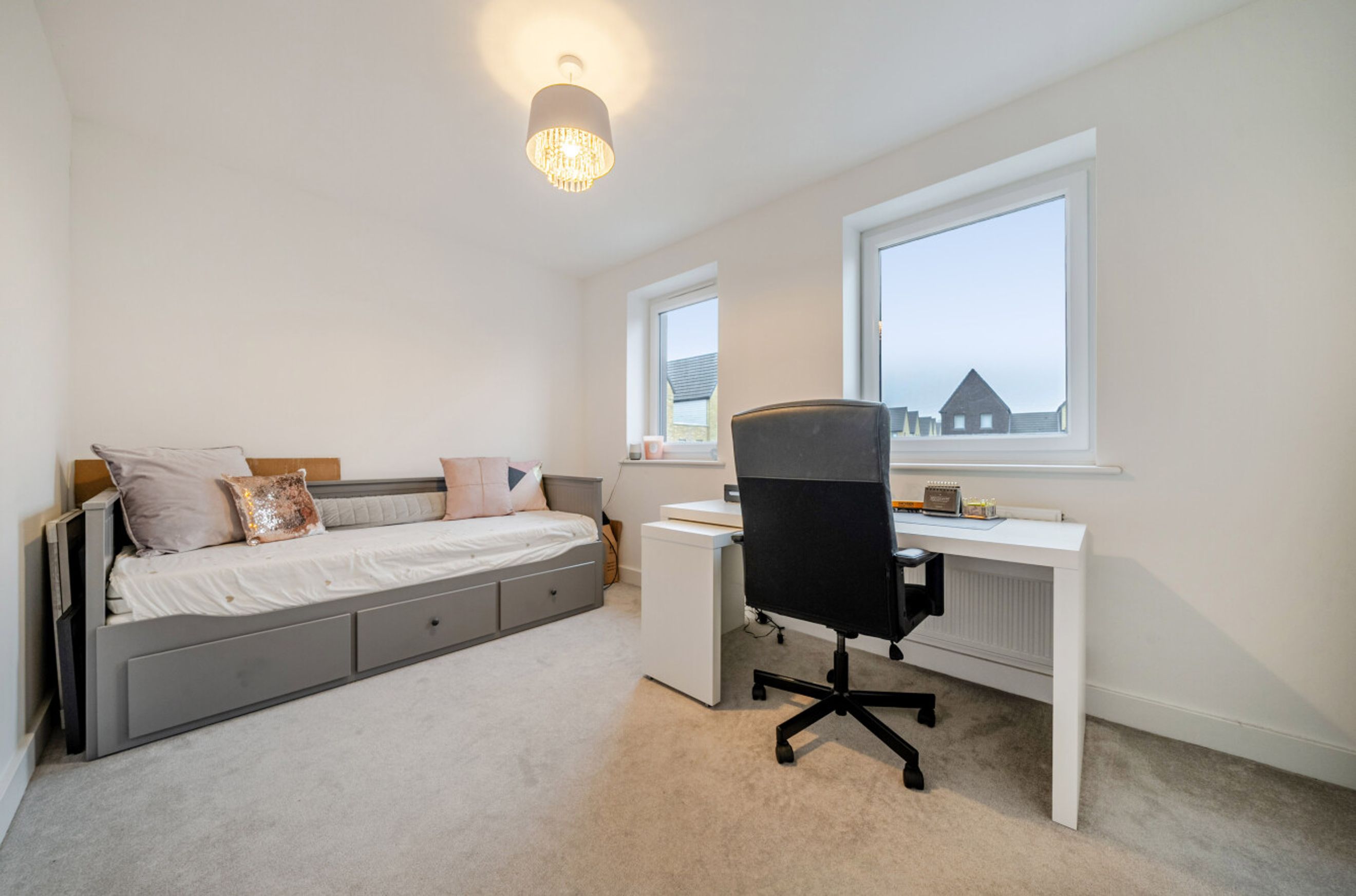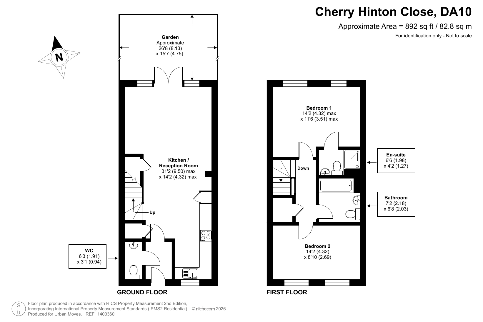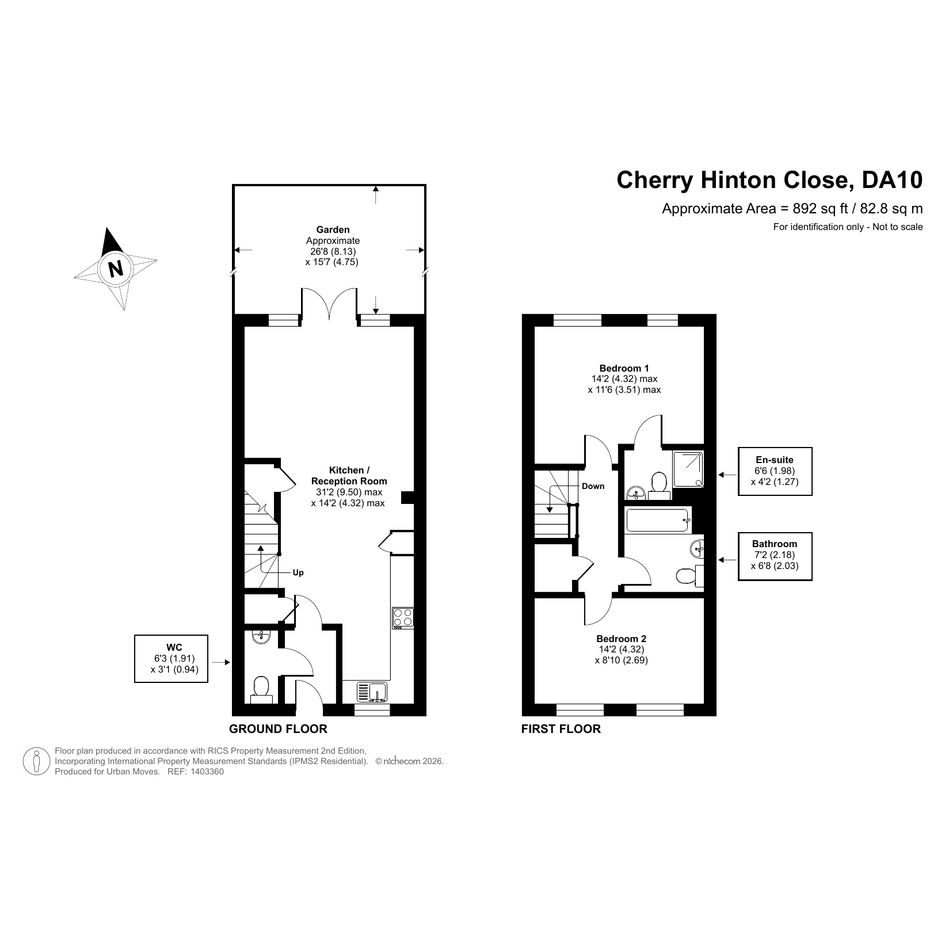This recently-constructed and smartly-presented property forms one end of a short, four-house terrace. There is a cloakroom/WC just off the entrance hall with most of the remainder of the ground floor devoted to a full-length (thirty-one-foot) open-plan kitchen/reception room. Features include attractive flooring, sleek units, integrated appliances and patio doors that lead out to the rear garden. Upstairs, on the first floor, is a spacious main bedroom with en-suite shower room plus a second, good-sized, double bedroom and a simple yet stylish bathroom. Well insulated walls, roof and floor, high performance glazing and a modern gas central heating system all contribute towards a very good energy-efficiency rating. The house comes with a forecourt parking space plus shared use of the visitor spaces. Bluewater Shopping Centre is only a short walk away and Greenhithe Railway Station can also be reached on foot, via bus or by brief bike ride.