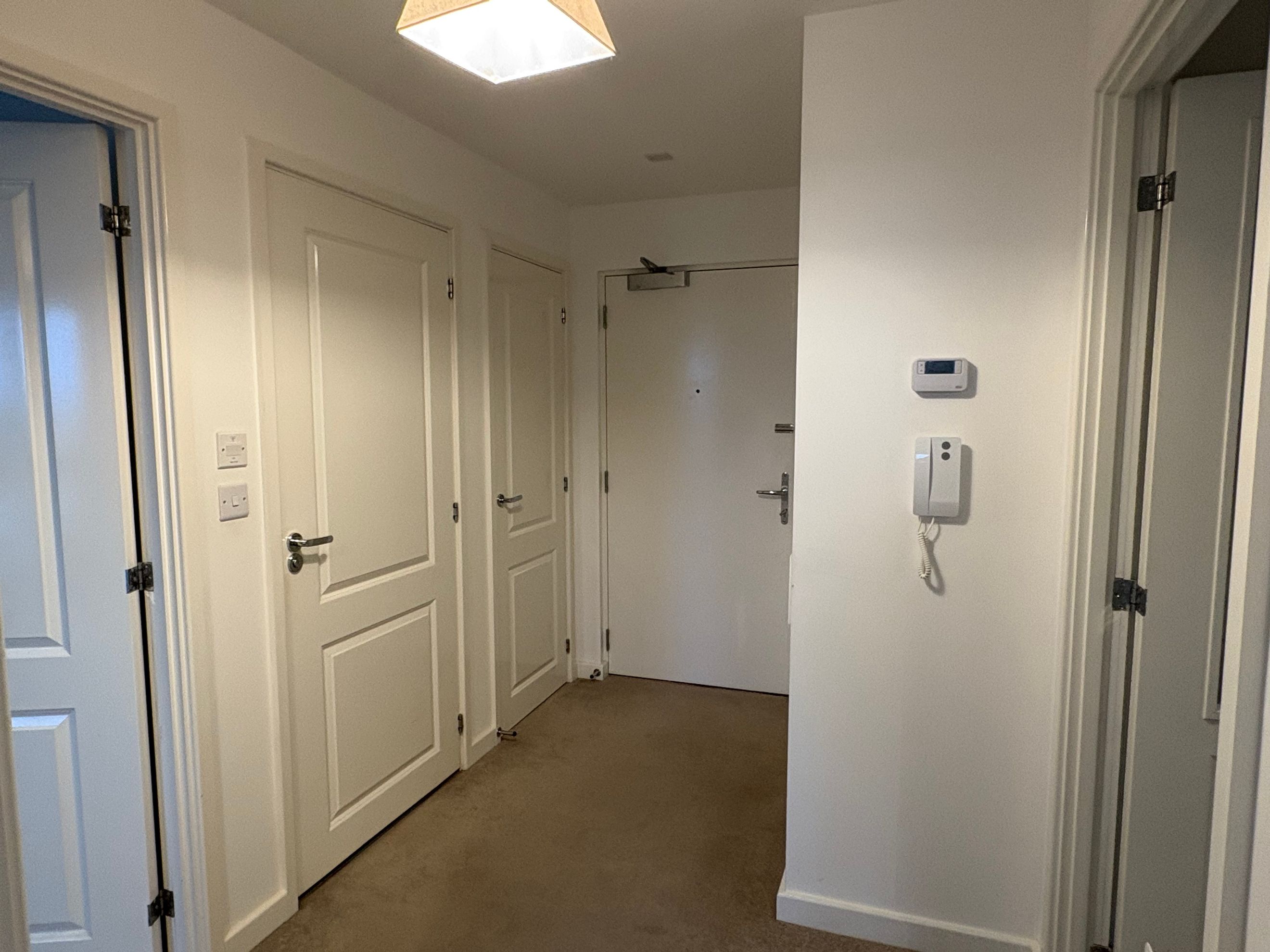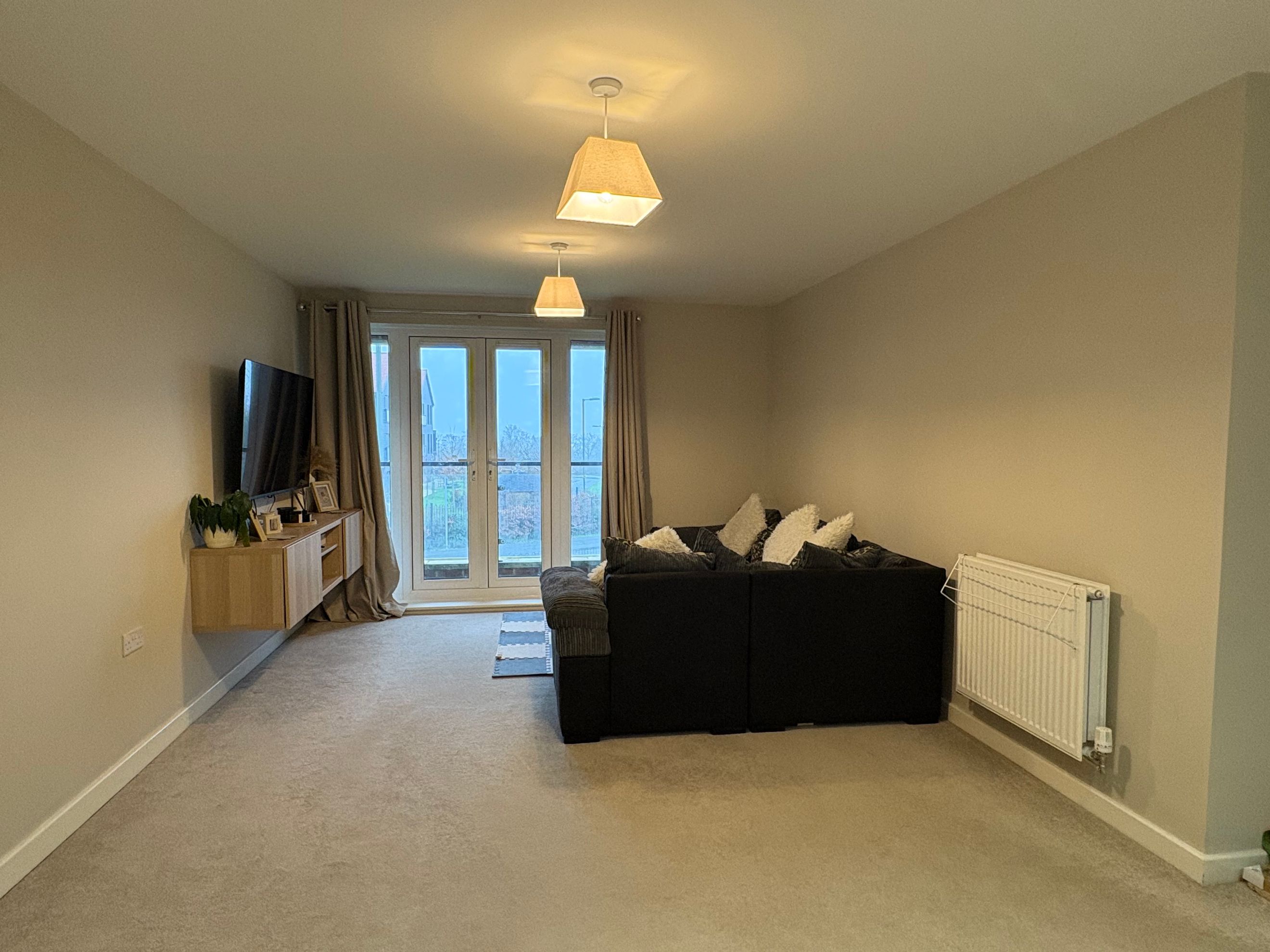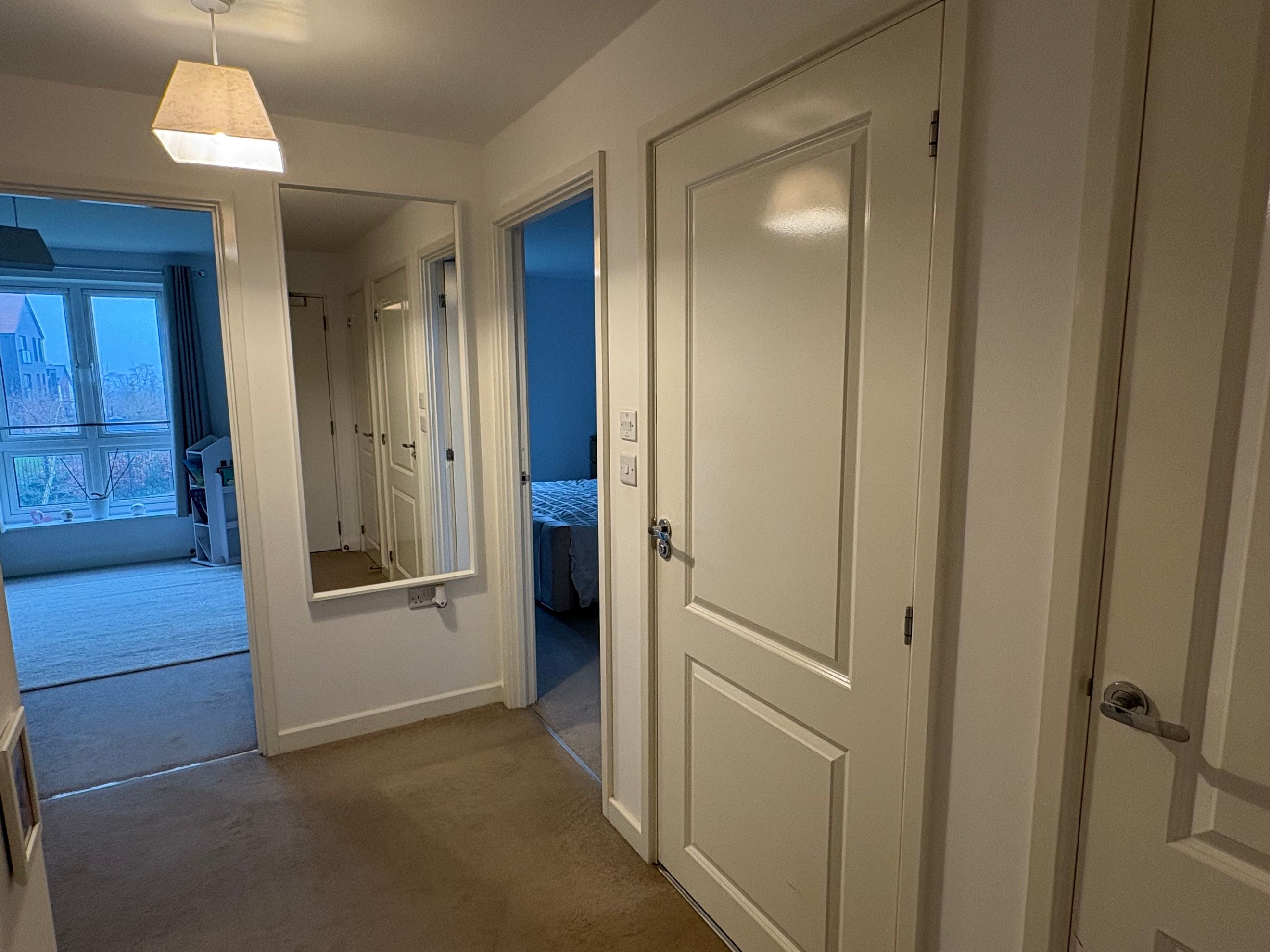 A modern and well‑presented first‑floor flat in Basingstoke, this spacious 2 bedroom home features an inviting entrance hall with both a large storage cupboard and a smaller additional cupboard, leading into a bright open‑plan kitchen and living area. The kitchen offers ample storage and comes equipped with a washing machine, fridge freezer, oven, hob and extractor fan, while the living space opens onto a private balcony ideal for relaxing outdoors.