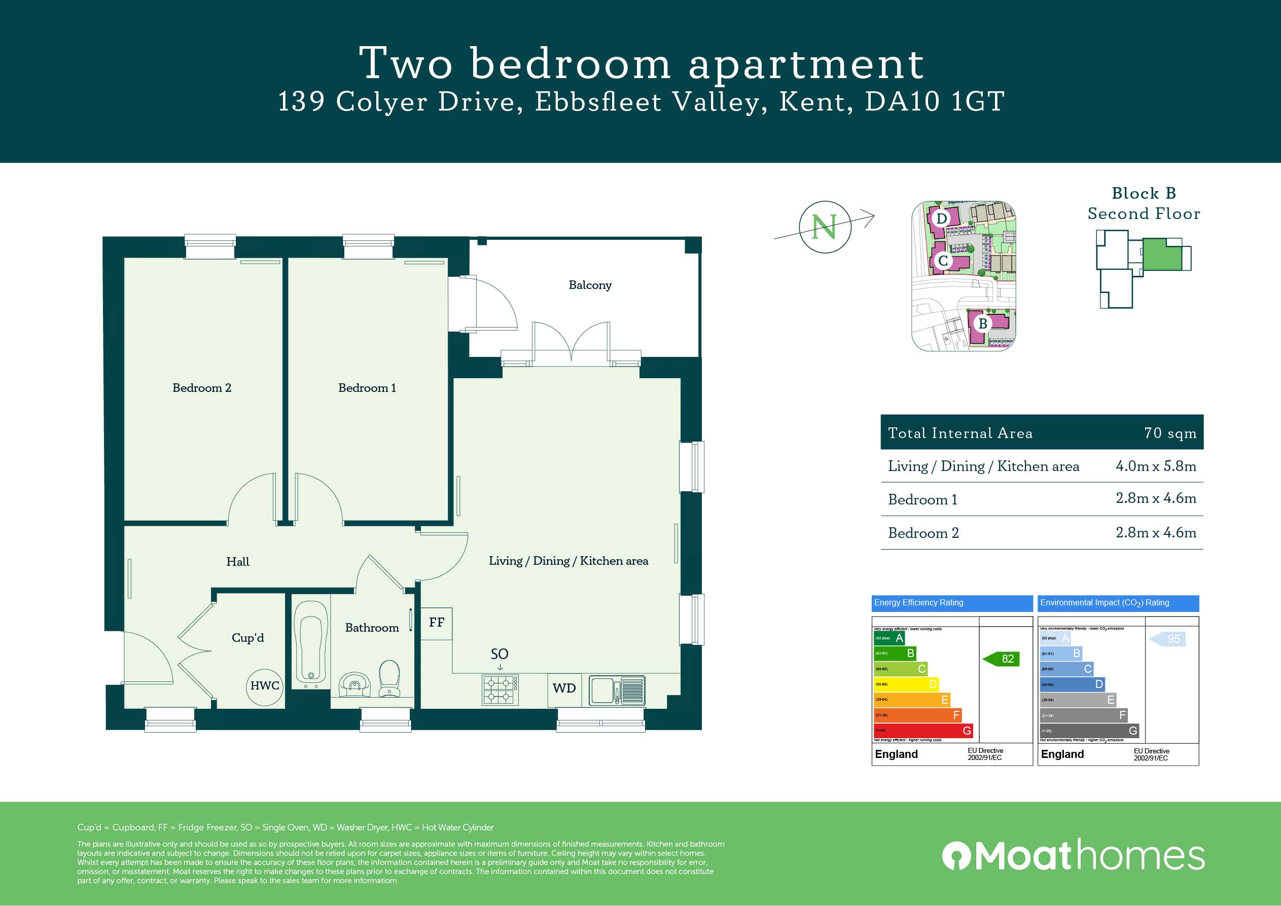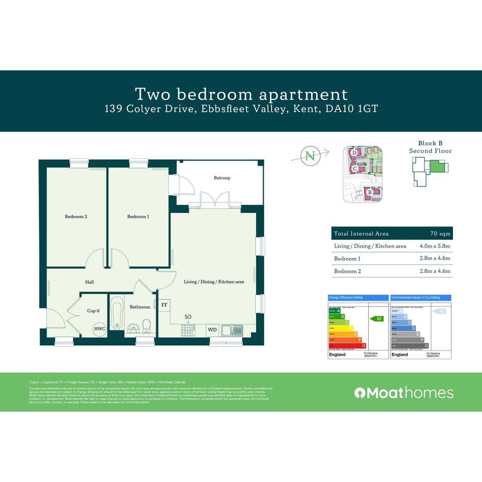 Both bedrooms are generously sized, offering flexibility for guests, home working or additional storage. The modern bathroom is finished with high-quality fixtures and fittings, while energy-efficient design throughout helps keep running costs low. The home also benefits from allocated parking conveniently located nearby.