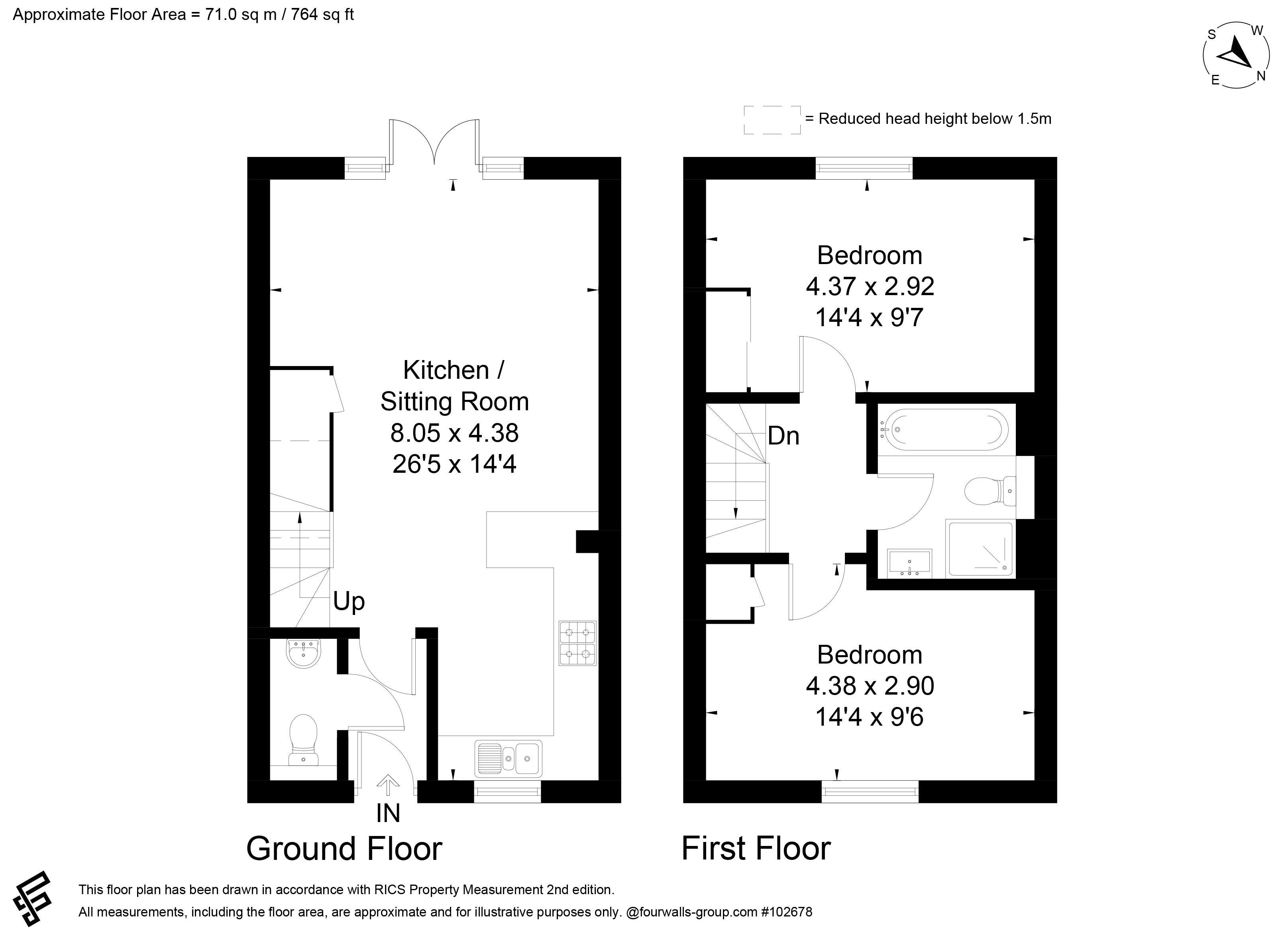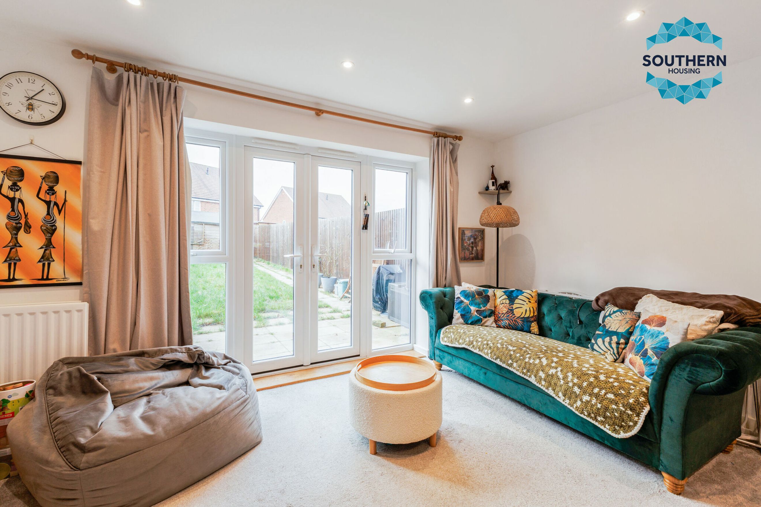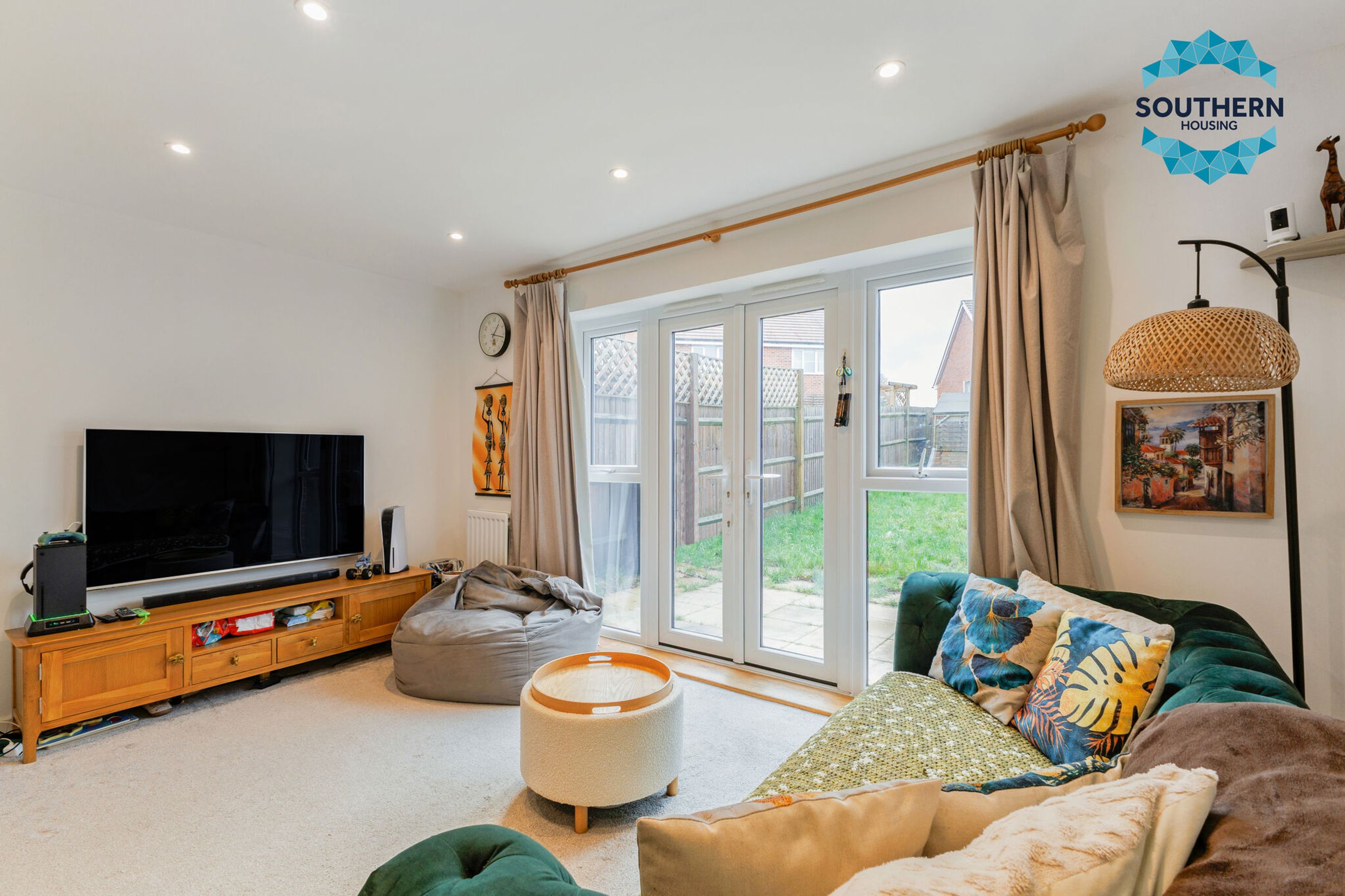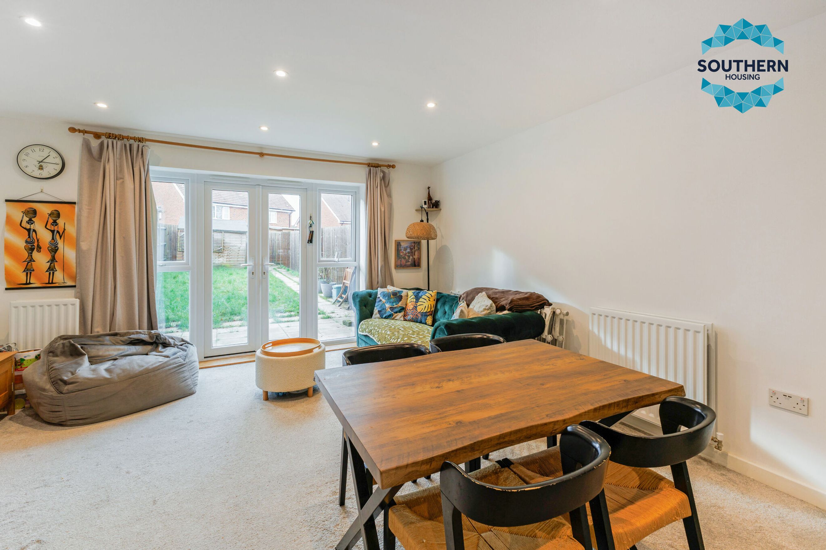 his beautifully presented two-bedroom terraced home offers contemporary, spacious living in a highly desirable part of Cranleigh. The ground floor welcomes you with a bright entrance hallway, a convenient downstairs bathroom, and a modern open-plan kitchen, dining, and living space. Double French doors open directly onto a generous rear garden, perfect for relaxing or entertaining.