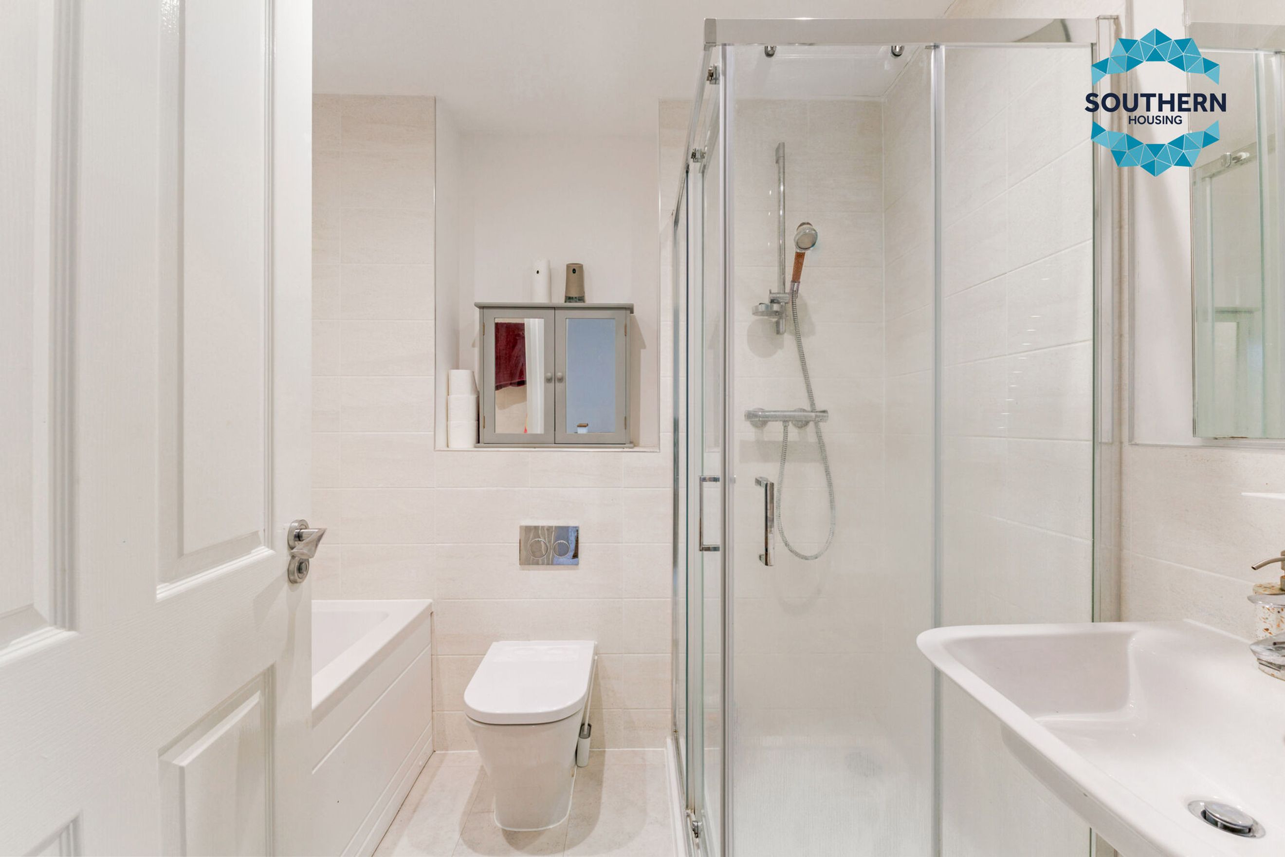 Upstairs, you'll find two well‑proportioned double bedrooms - including a principal bedroom with built‑in wardrobe - along with a sleek family bathroom featuring both a bathtub and a separate shower.