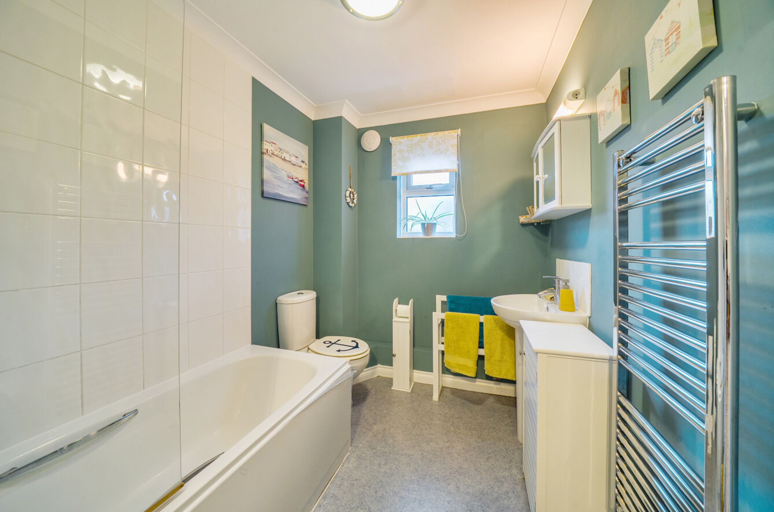 The bedroom is positioned to offer privacy and a calm retreat, comfortably accommodating bedroom furniture without compromise. The bathroom is centrally located and fitted with modern sanitary ware, serving the property efficiently.