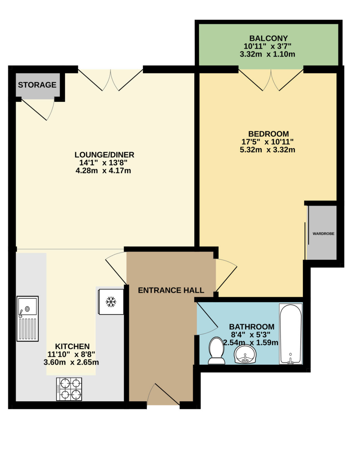 This modern home offers bright, open-plan living with floor‑to‑ceiling windows that bring in plenty of natural light. The living area features a Juliette balcony, while the bedroom enjoys its own private balcony via full-height glazed doors. Additional benefits include a fitted wardrobe in the bedroom, central heating throughout, and laminate water‑resistant flooring in the kitchen and bathroom. Residents also enjoy access to a communal garden and secure bike storage, ideal for both convenience and lifestyle.