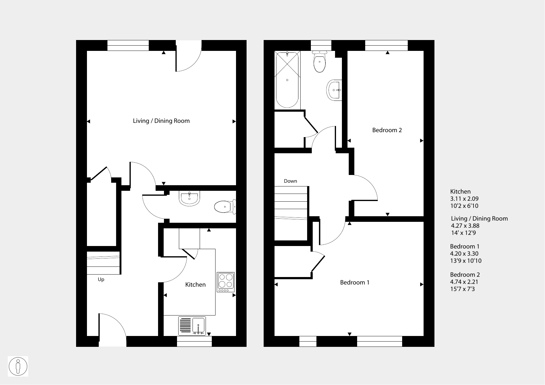Upstairs, there are two comfortable double bedrooms. The bathroom has a modern, white suite. You'll also have a back garden and driveway parking for two cars.