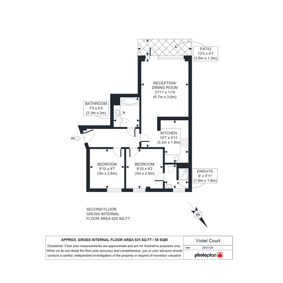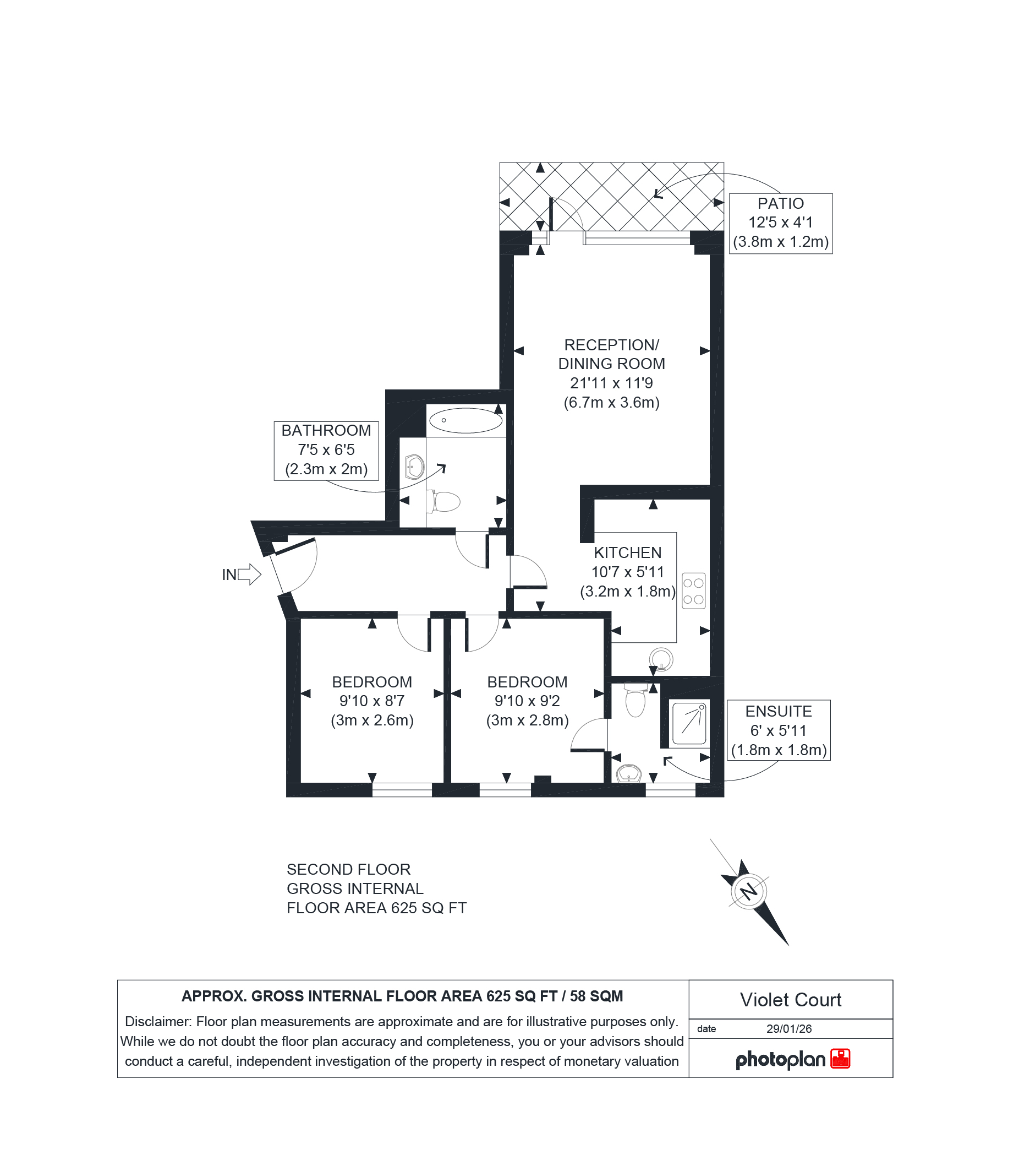 Second Floor: Reception/ Kitchen, Two Bedrooms, (one ensuite),