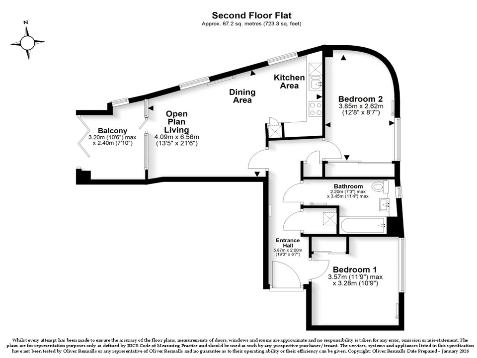 This beautifully presented home offers 2 well-proportioned bedrooms, each complete with fitted wardrobes. The property also offers a contemporary bathroom and an open‑plan living area ideal for relaxing or entertaining. The sleek kitchen includes integrated appliances, and the property further benefits from a private balcony, offering versatile indoor‑outdoor space all year round. Residents also enjoy access to a peaceful communal garden.
