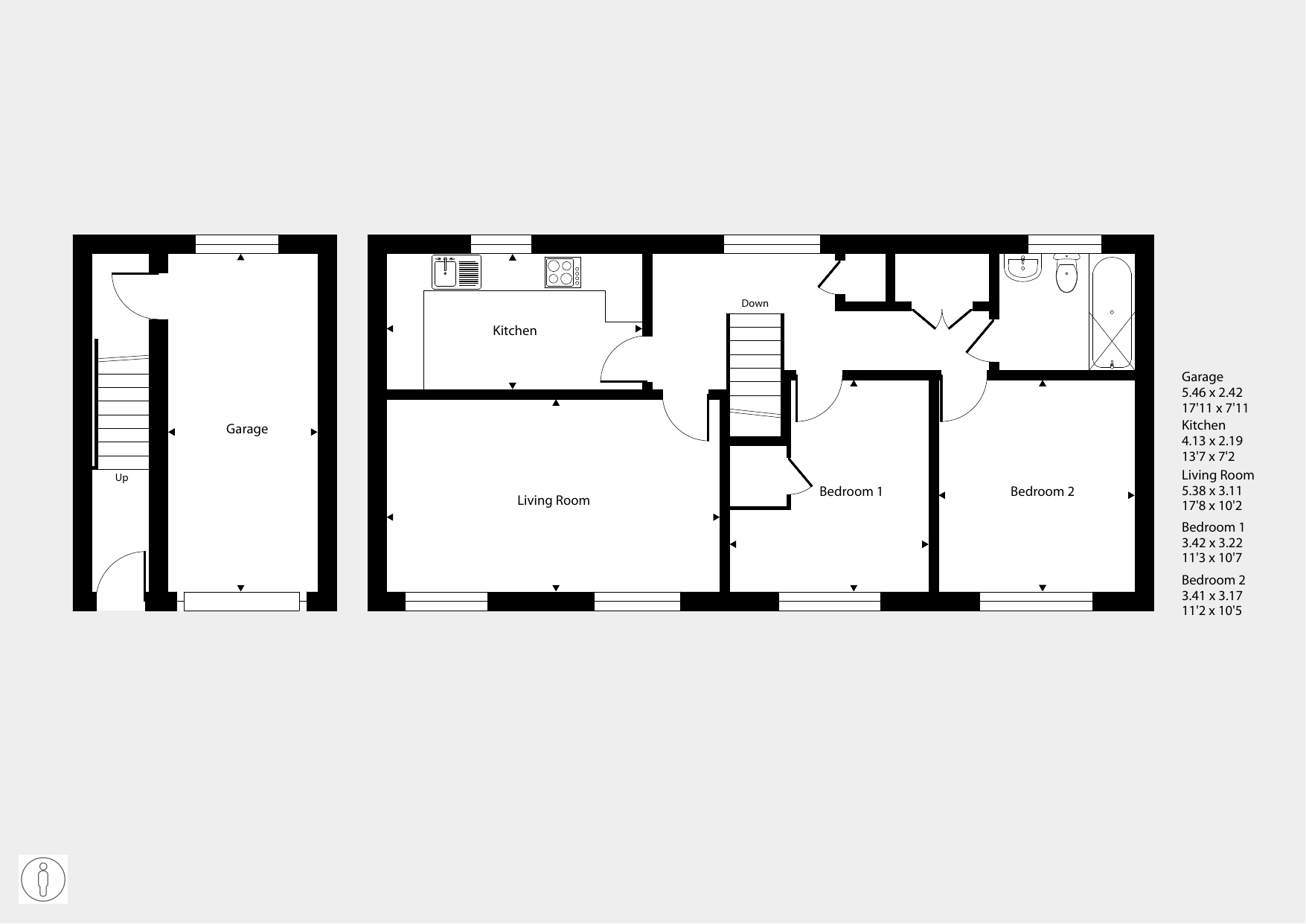 With a private ground floor entrance, there is a spacious living room. The kitchen is fitted with an oven, hob and hood. There are two comfortable bedrooms. The bathroom has a white suite.
