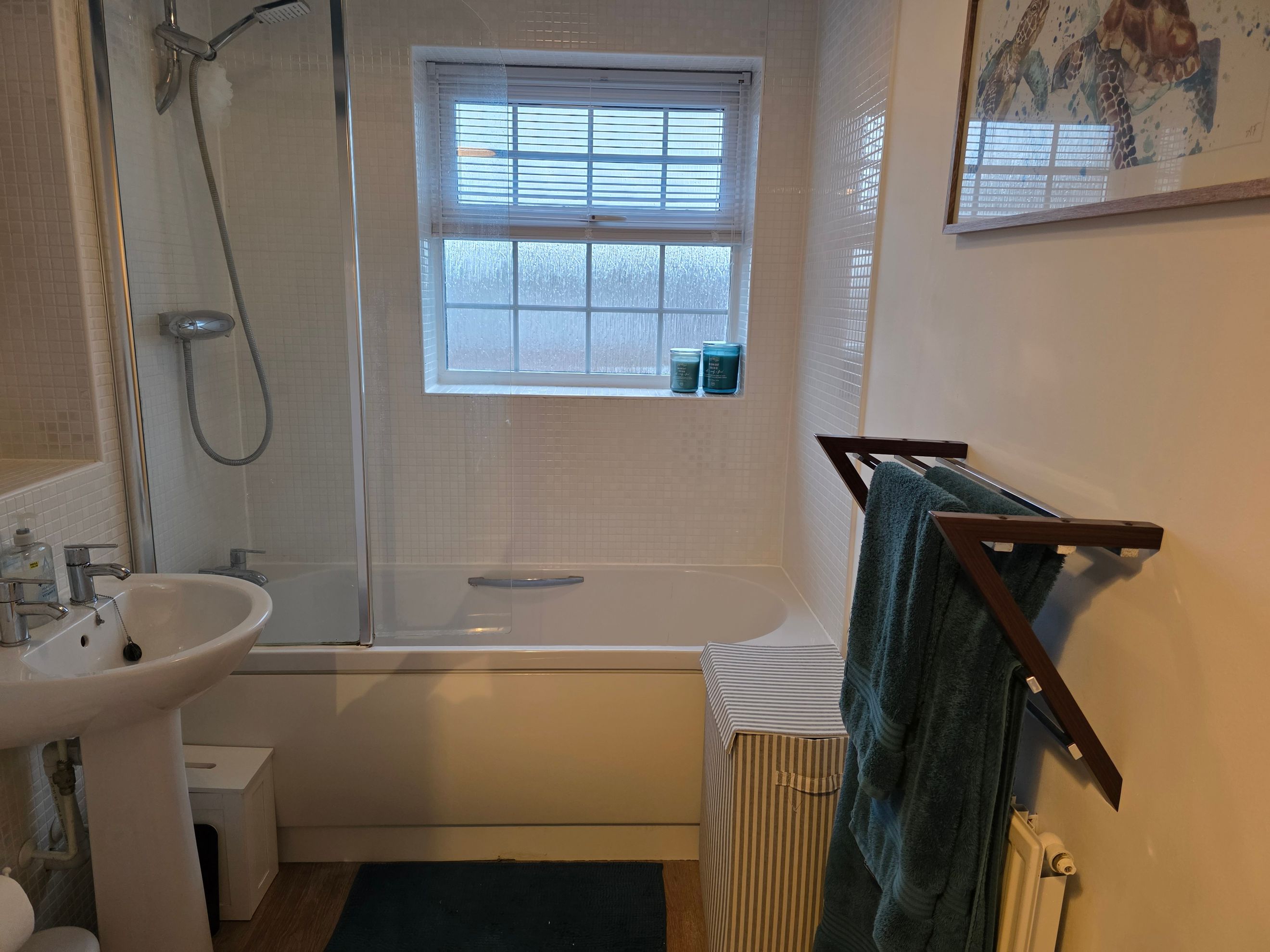 There are two well-proportioned bedrooms, both offering flexibility for a variety of needs, whether as sleeping accommodation, a home office, or guest space. The bathroom is fitted with a modern suite and finished in a neutral style, providing a clean and functional space. Outside, there is an allocated parking space.