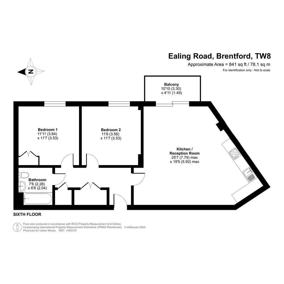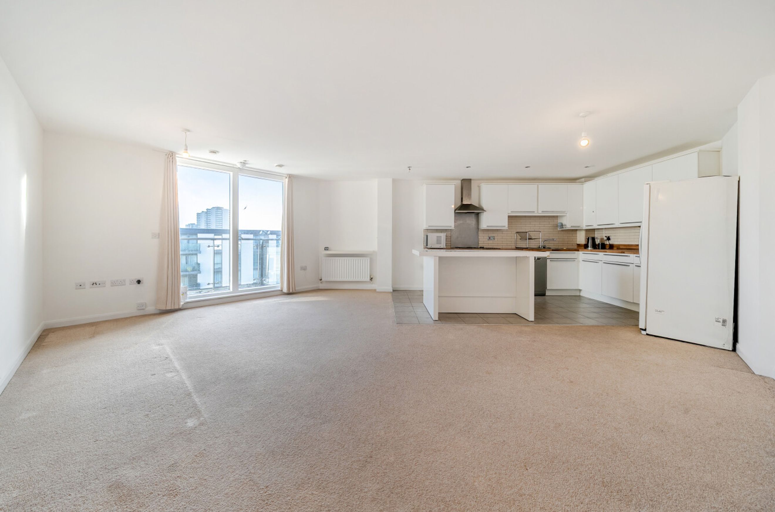 A spacious, two-bedroom apartment on the sixth floor of this modern development. The property features a twenty five foot by nineteen foot reception room with an open-plan kitchen area. A glazed door leads out onto an east-facing balcony that overlooks the communal garden. Both bedrooms are generously-sized doubles, there is a sleek bathroom and a pair of fitted storage/utility cupboards have been provided in the entrance hallway. Well insulated walls, modern double glazing and a communal heating/hot water system make for a very good energy-efficiency rating. The apartment comes with use of an allocated space in the gated, underground car park plus Brentford Station, for rail services between Weybridge and London Waterloo, is only a short walk away. The Development (Great West Quarter) has a Sainsbury's Local and a popular coffee shop. There is also a nursery on site and the local schools are all Ofsted-rated either 'Good' or 'Outstanding'. Syon Park, Gunnersbury Park, the River Thames and Kew Gardens are within easy reach.