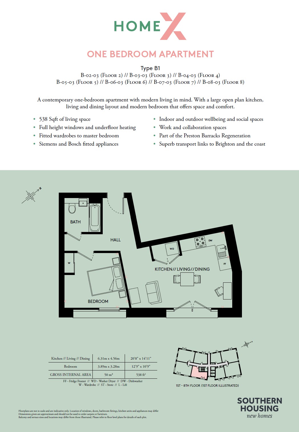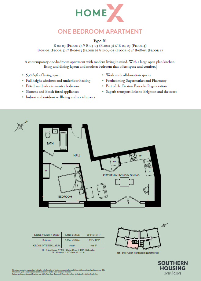 Home X is crafted with your everyday living and wellbeing in mind. Step into an apartment bathed in natural light where the open-plan living room offers the flexibility to design your perfect living area, while the stylish kitchens boast contemporary worktops and sleek, handleless, soft-close units in a sophisticated indigo hue. Each apartment is thoughtfully equipped with integrated appliances, underfloor heating, and a state-of-the-art video/ phone entry system, ensuring your comfort and peace of mind.