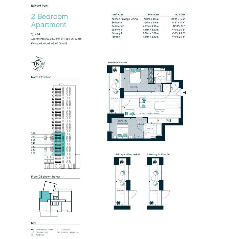 With a central living/dining/kitchen room leading to the large balcony, this 2 double bedroom apartment also has two bathrooms and makes the perfect sharing apartment. Visiting family and friends can make use of their own area in the apartment and gather with you in the lounge or out on the balcony for some alfresco dining