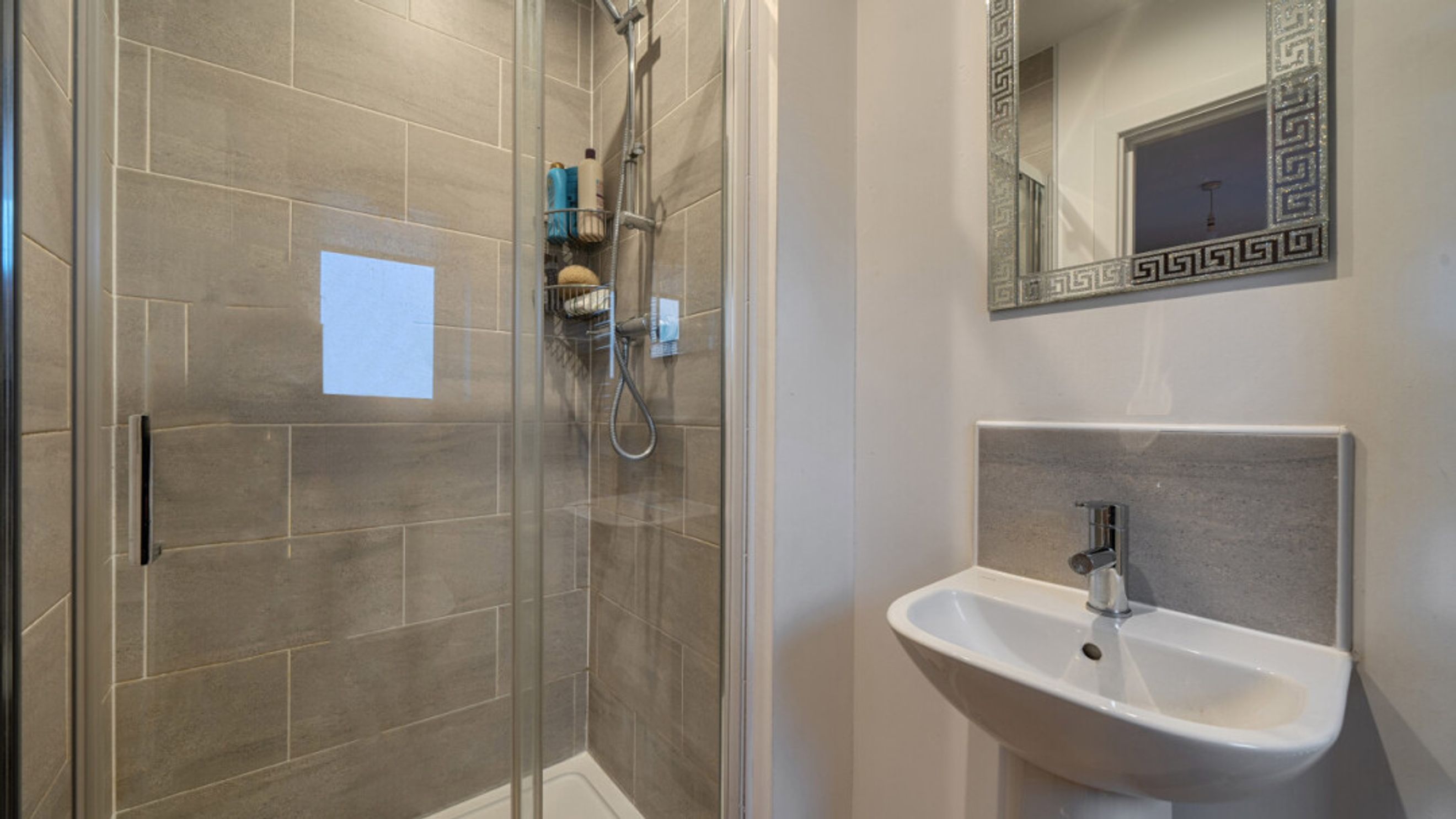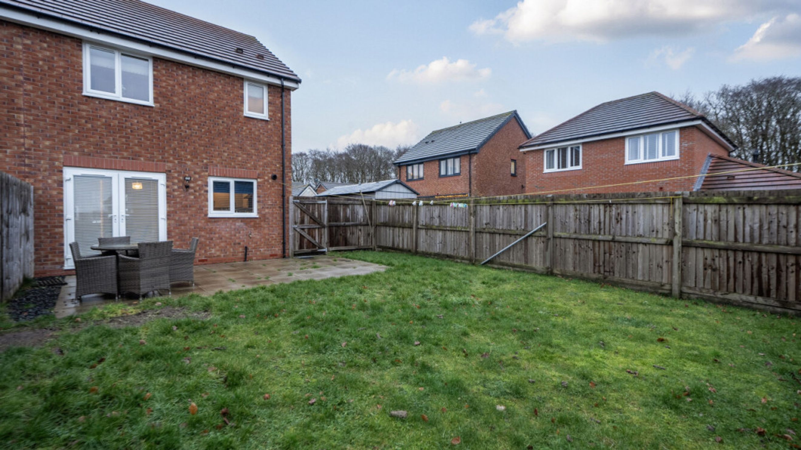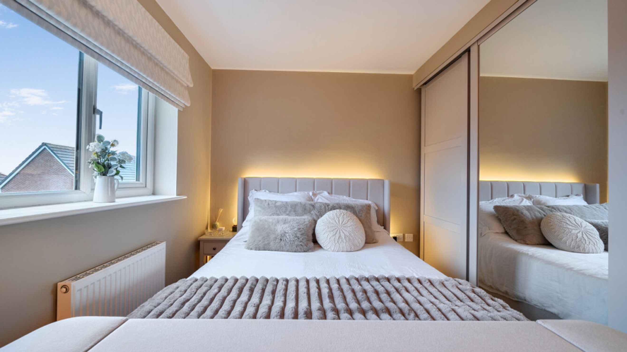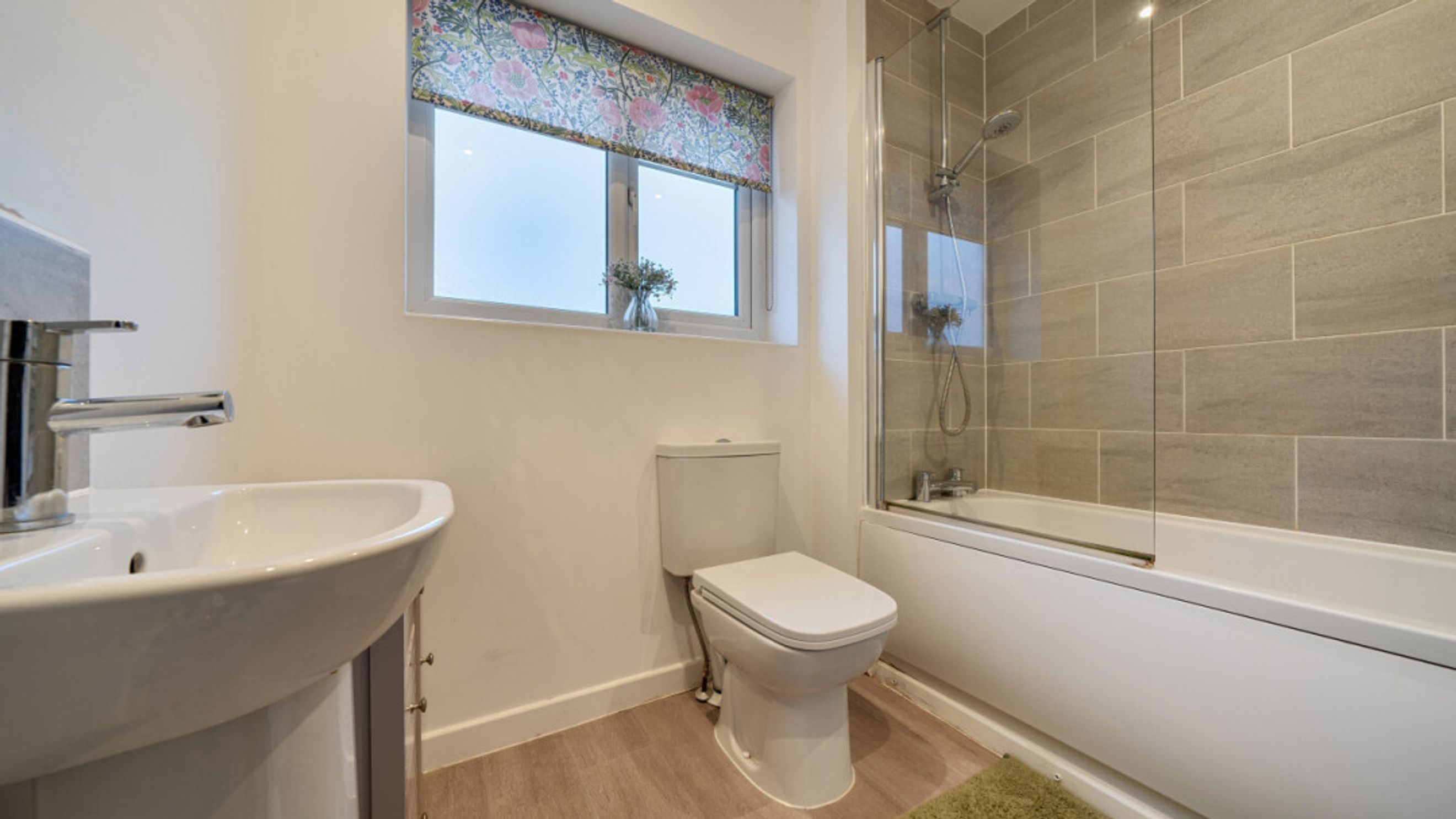 This bright and spacious semi-detached modern house, flooded with natural light, The kitchen is fitted with integrated appliances including a fridge freezer, oven, hob and extractor. Spacious main double bedroom benefitting from en-suite with shower and fitted wardrobes, as well as a bright and airy second double bedroom. The bathroom comes complete with a white three-piece suite with a shower over bath and a stone tile surround. Additional storage cupboards, large rear garden and private driveway