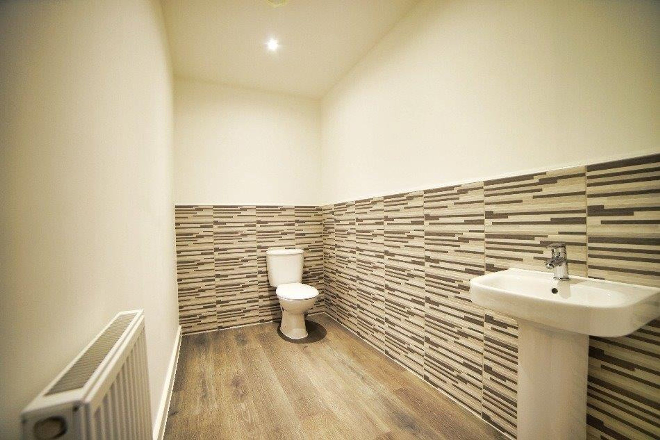 - Full height wall tiles around bath & half height to other walls with sanitary ware