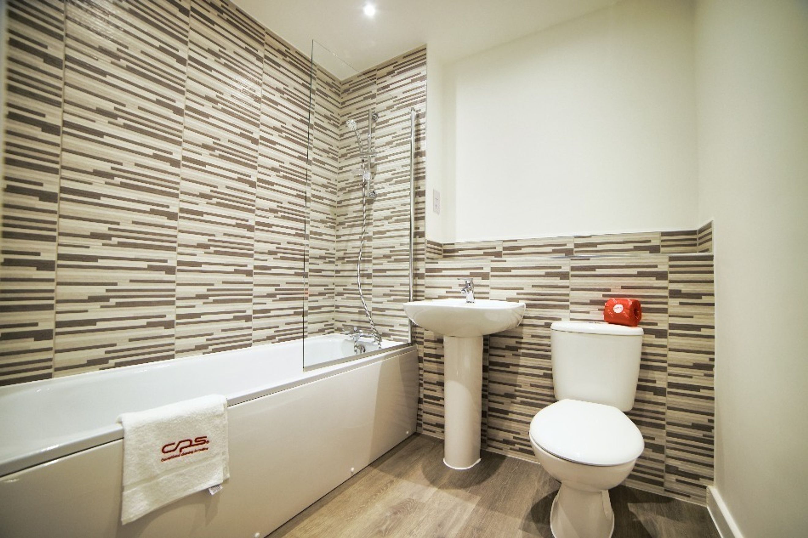 - Full height wall tiles around bath & half height to other walls with sanitary ware