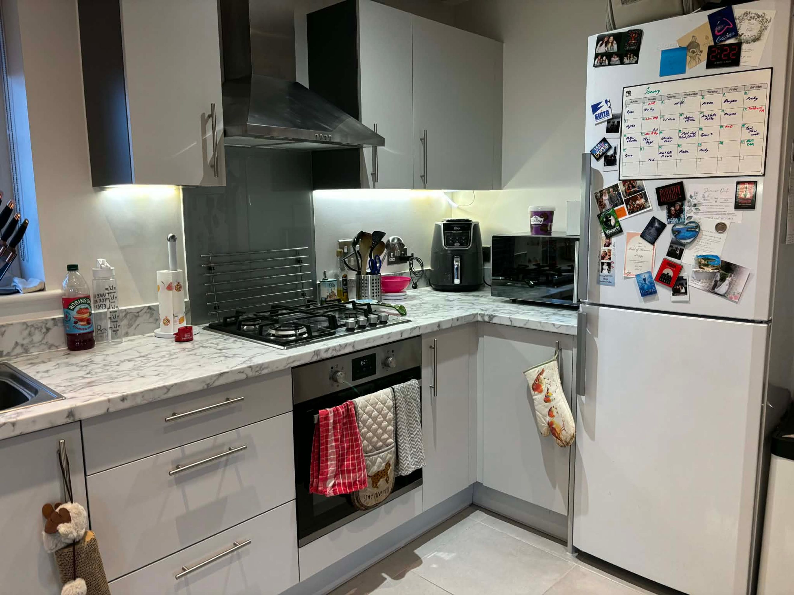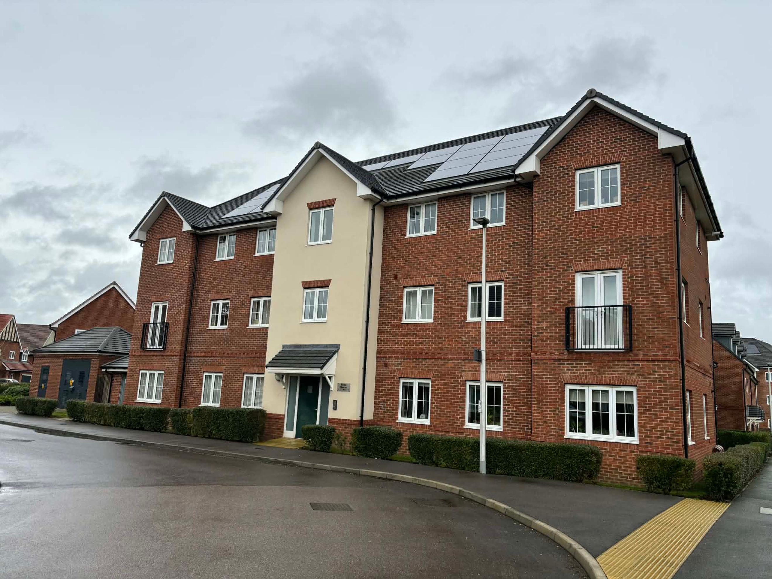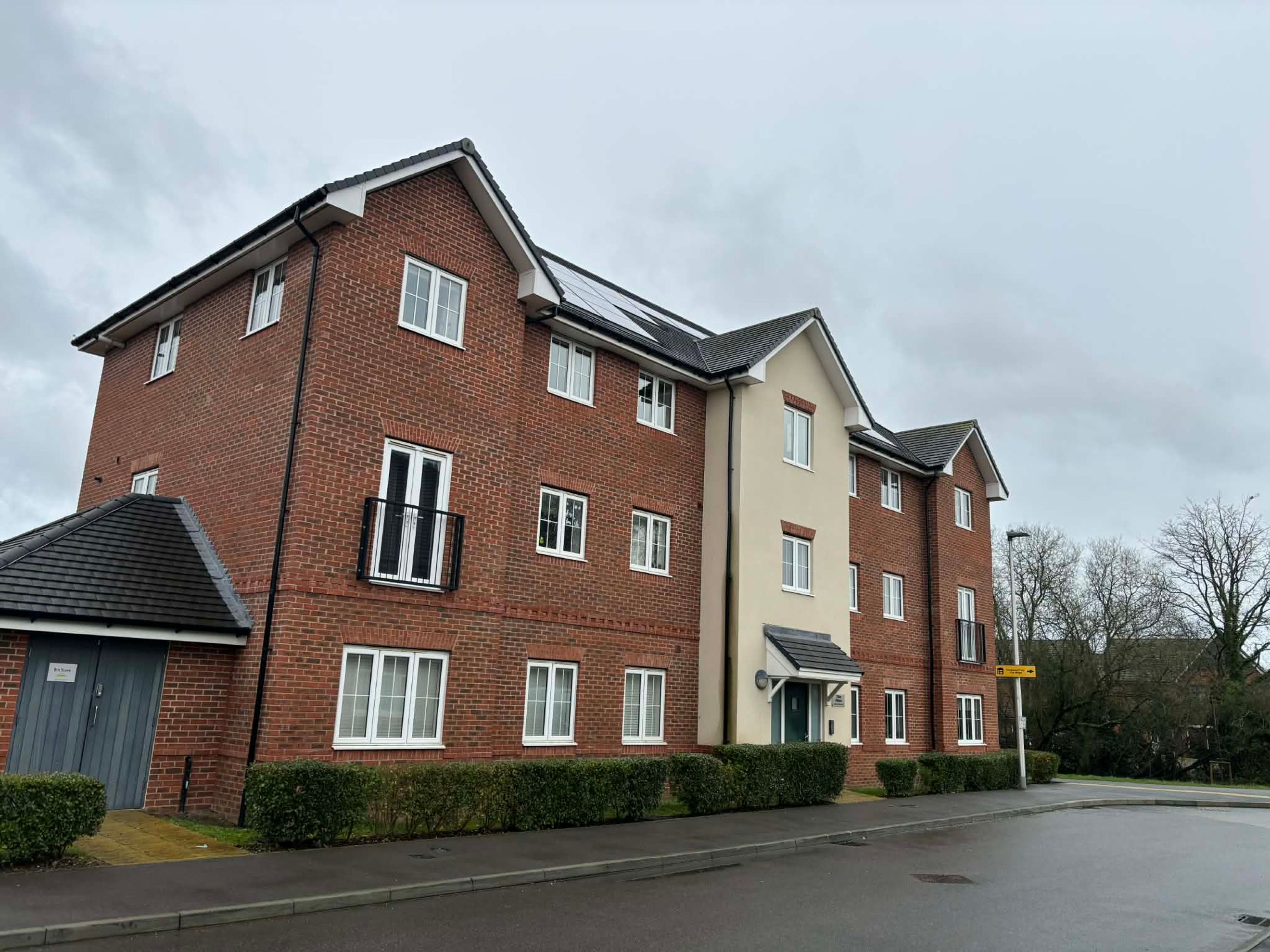 This well‑maintained two‑bedroom, second‑floor apartment is located in a modern development in Wokingham, Berkshire. The property offers an open‑plan living room and kitchen, fitted with an integrated oven, hob and extractor fan. The master bedroom includes an ensuite and a built‑in wardrobe, while the second bedroom provides flexible additional space. A storage cupboard is positioned in the hallway by the entrance, and the apartment comes with two allocated parking spaces, as well as access to communal bin and bike stores.
